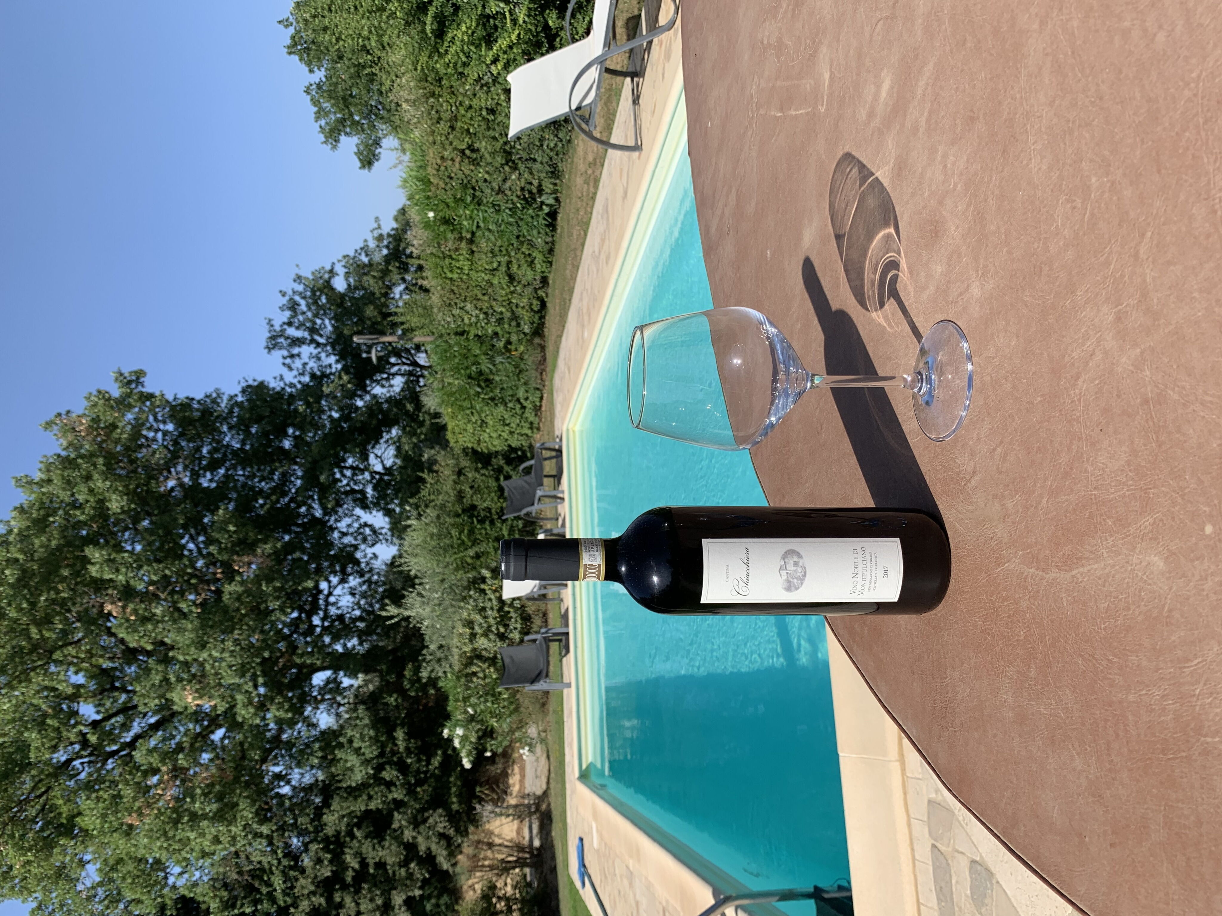 This villa/bungalow is set in 750 hectares of vines producing Montepulcino vin noble. The swimming pool and hot tub are great and it is weel equiped apart from of you want comfy sitting in the villa as there is only two beds and a sining table with hard chairs. It has air conditioning in each room which is a very expensive extra when it is bery hot which is most of the time. The villa is reached by a farm track so good tyres on your car are a must.