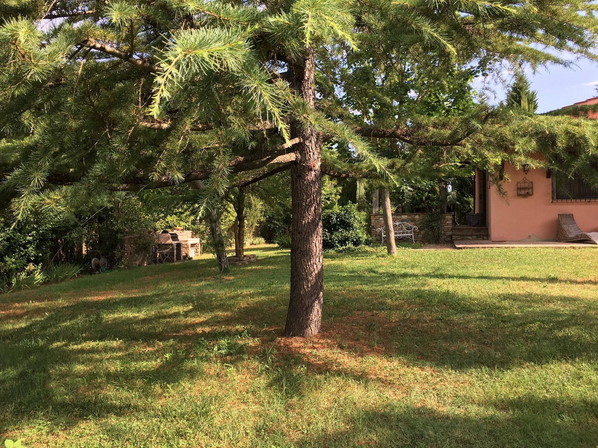 The large garden is a delight, and lovely to explore, it has a little pond with very noisy frogs which leap into the water when they spot you coming! The pool is well maintained with sun loungers available. There is a nice shady dining area outside the villa where we ate all our meals.