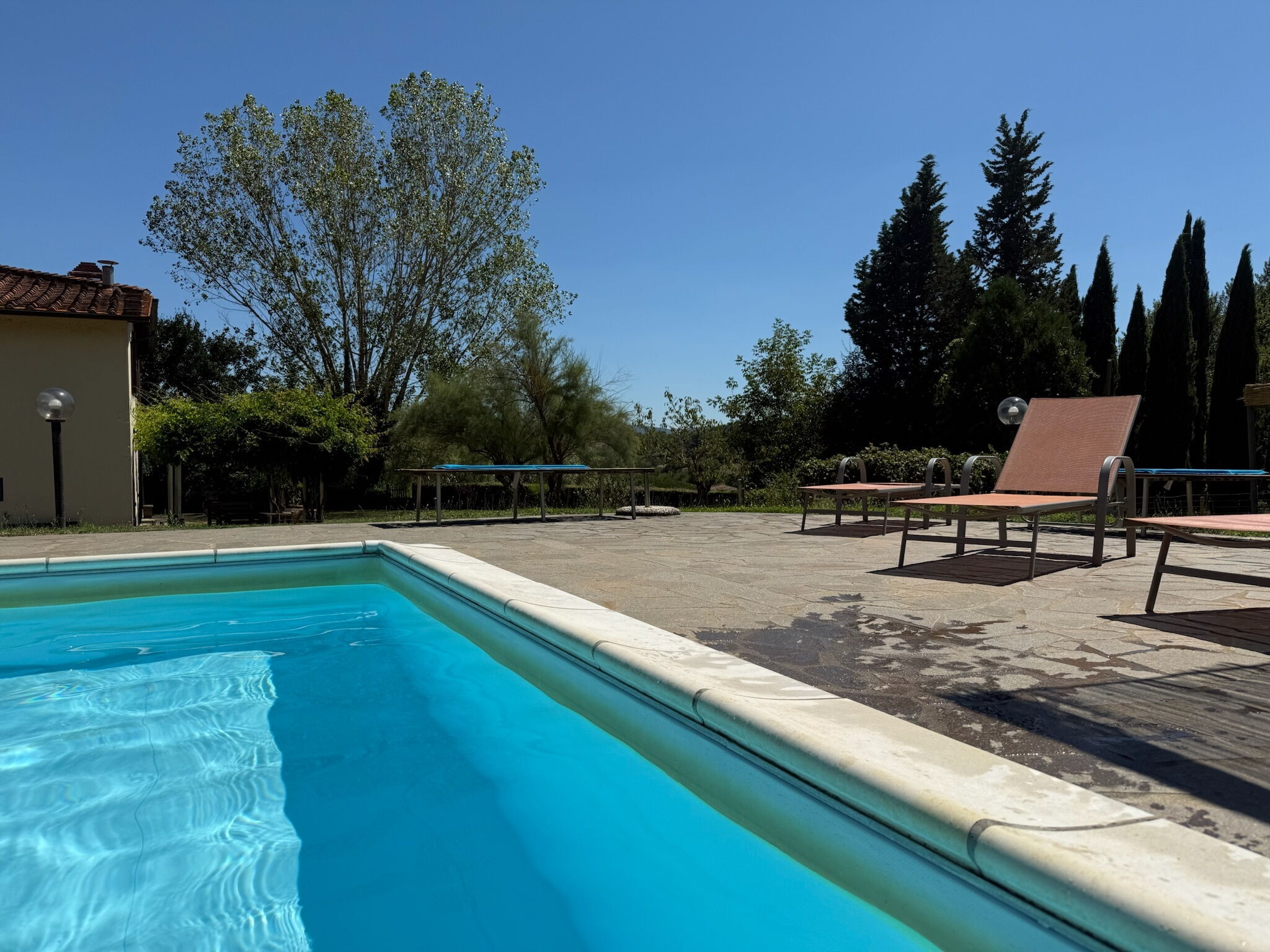 The villa was a perfect getaway and Marika was responsive and accommodating. We visited the region as part of the second half of our summer vacation. The location offered quick access to highways and amenities while still being away from it all. As we had several places we wanted to visit, we didn’t get to enjoy the pool as much as we would have wanted but it offered a place to cool down and relax. Do note that mosquitos are bad during the summer months, but Coop offers some items to ward them off for relief. We utilized the grill for a nice “at home” dinner and the property gave our 2 young adult daughters plenty of Instagram worthy photo opportunities :-). Some things to note: the refrigerator is small (for westerners, we would call it dorm size). There is no central air or split units (knob & tube still run the electricity) but we were supplied with fans for the rooms. WiFi is really spotty so be sure someone in the party has a good cell plan. Positives: wonderful location; comfortable beds; gas stove; some cooking essentials provided; washing machine; hair dryer & iron; very responsive; private outdoor dining area under wisteria pergola; wildlife (we saw plenty of deer); quiet even with other guests in separate units