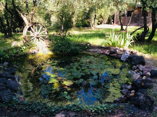 The large garden is a delight, and lovely to explore, it has a little pond with very noisy frogs which leap into the water when they spot you coming! The pool is well maintained with sun loungers available. There is a nice shady dining area outside the villa where we ate all our meals.
