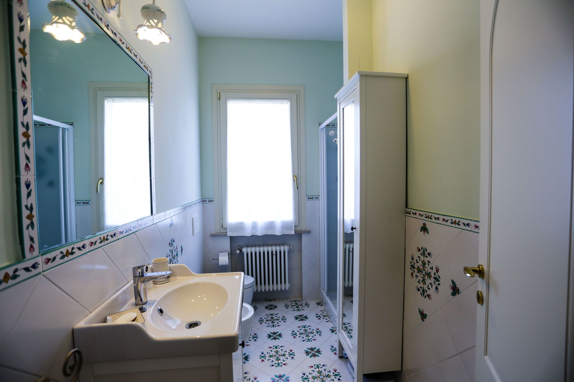 Bagno: lavandino, wc, bidet, doccia, asciugacapelli.