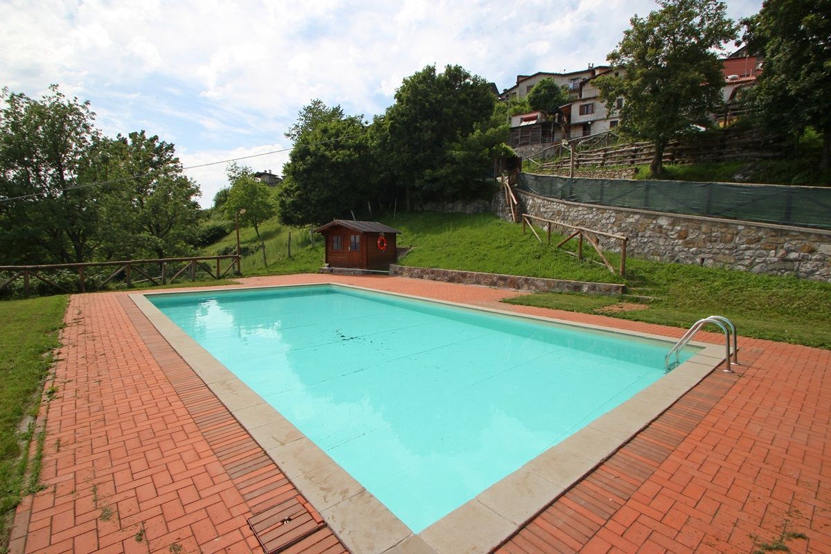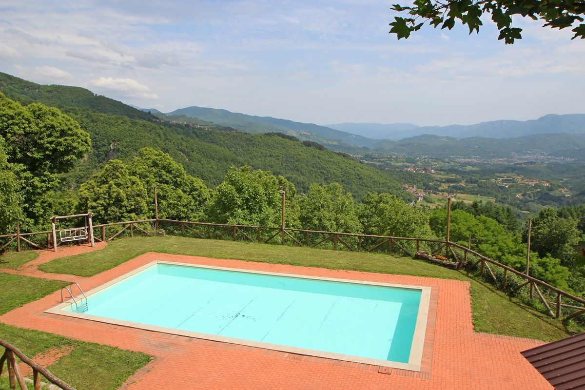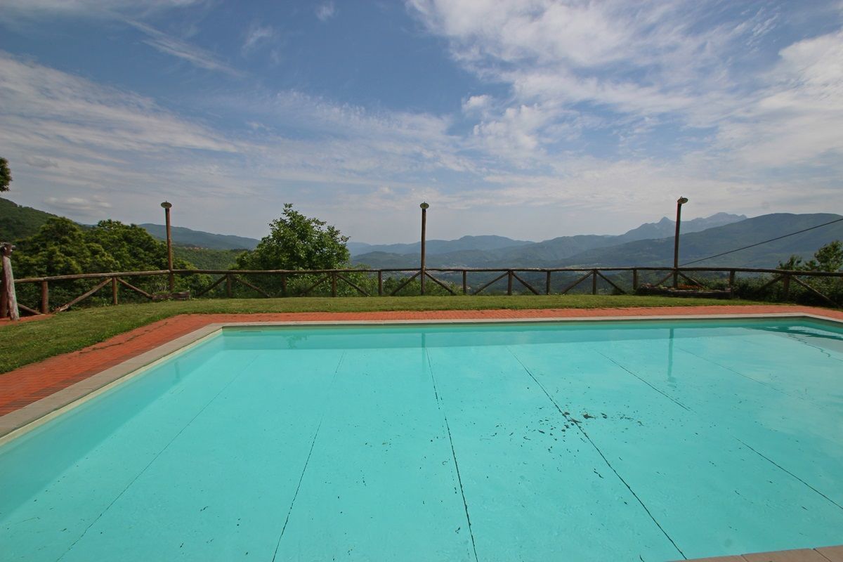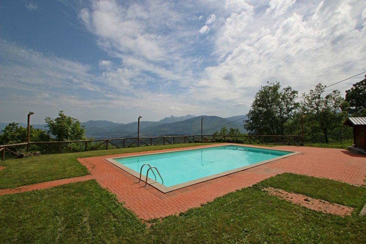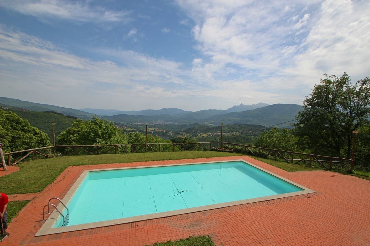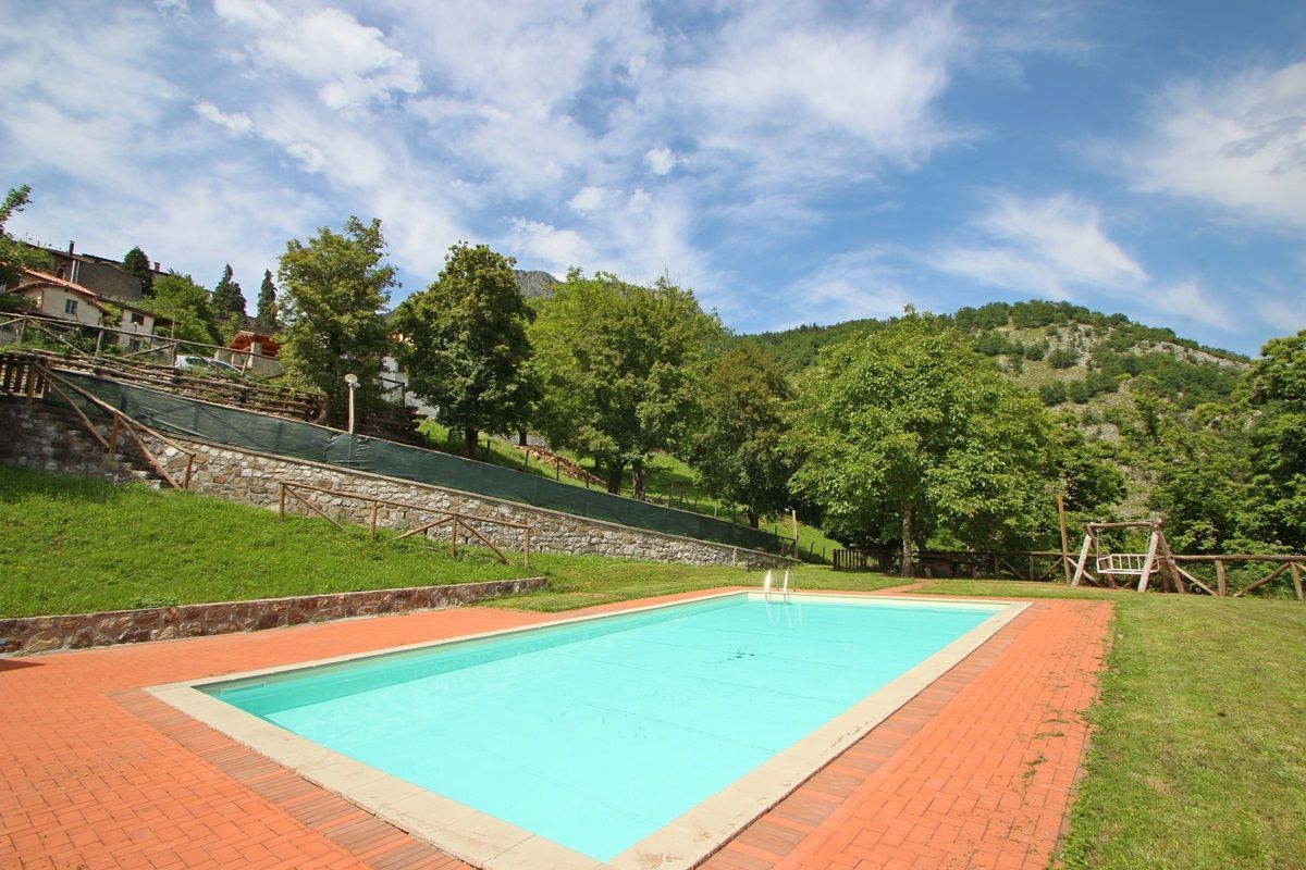 La piscina è circondata da un prato verde con lettini da sole ed una zona con tavolo e panchine all'ombra. Dalla piscina si gode una vista panoramica su tutta la valle fino a Castelnuovo Garfagnana.