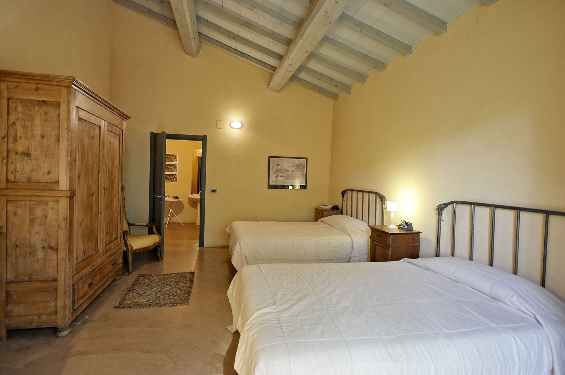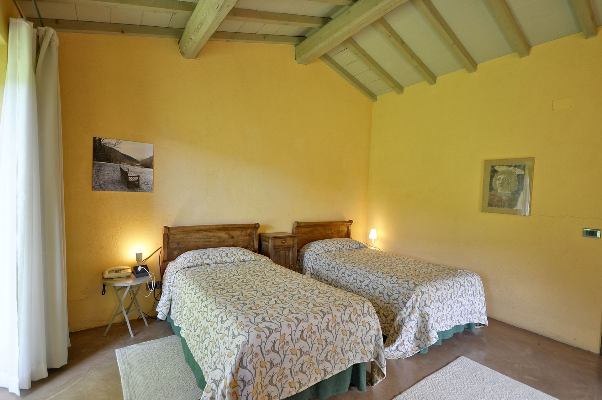 Primo Piano: il primo piano è accessibile da una scala a chiocciola che si trova nella cucina, si accede su un piccolo salotto con divani, dal quale in corridoio porta a due camere da letto entrambe con letti singoli (unibili su richiesta), dalla parte opposta al salottino si trovano le ultime due camere da letto delle quali una con due letti singoli (unibili su richiesta) e l’altra con due letti alla francese, ognuna di queste quattro camere da letto ha il proprio bagno privato con box doccia.