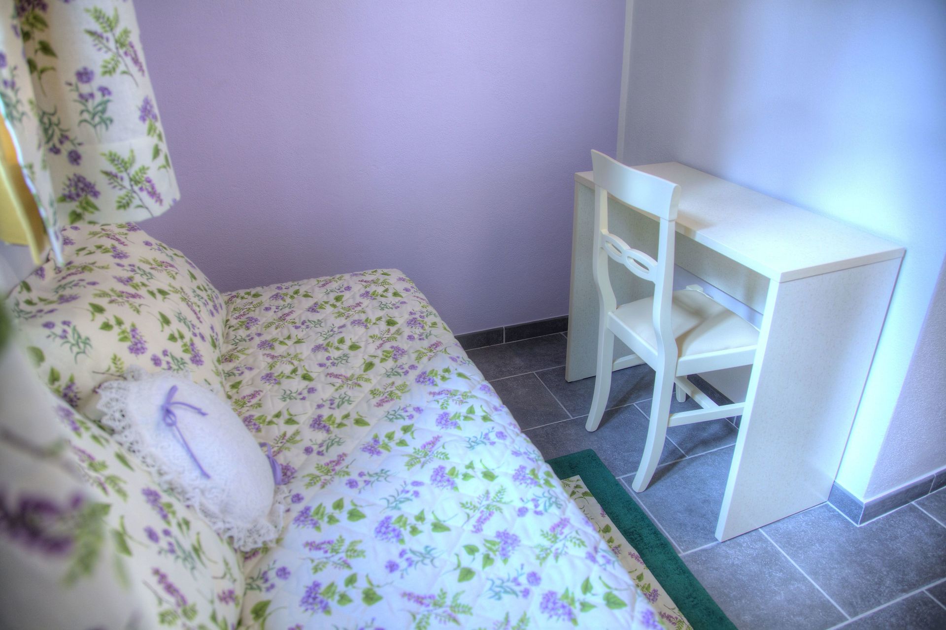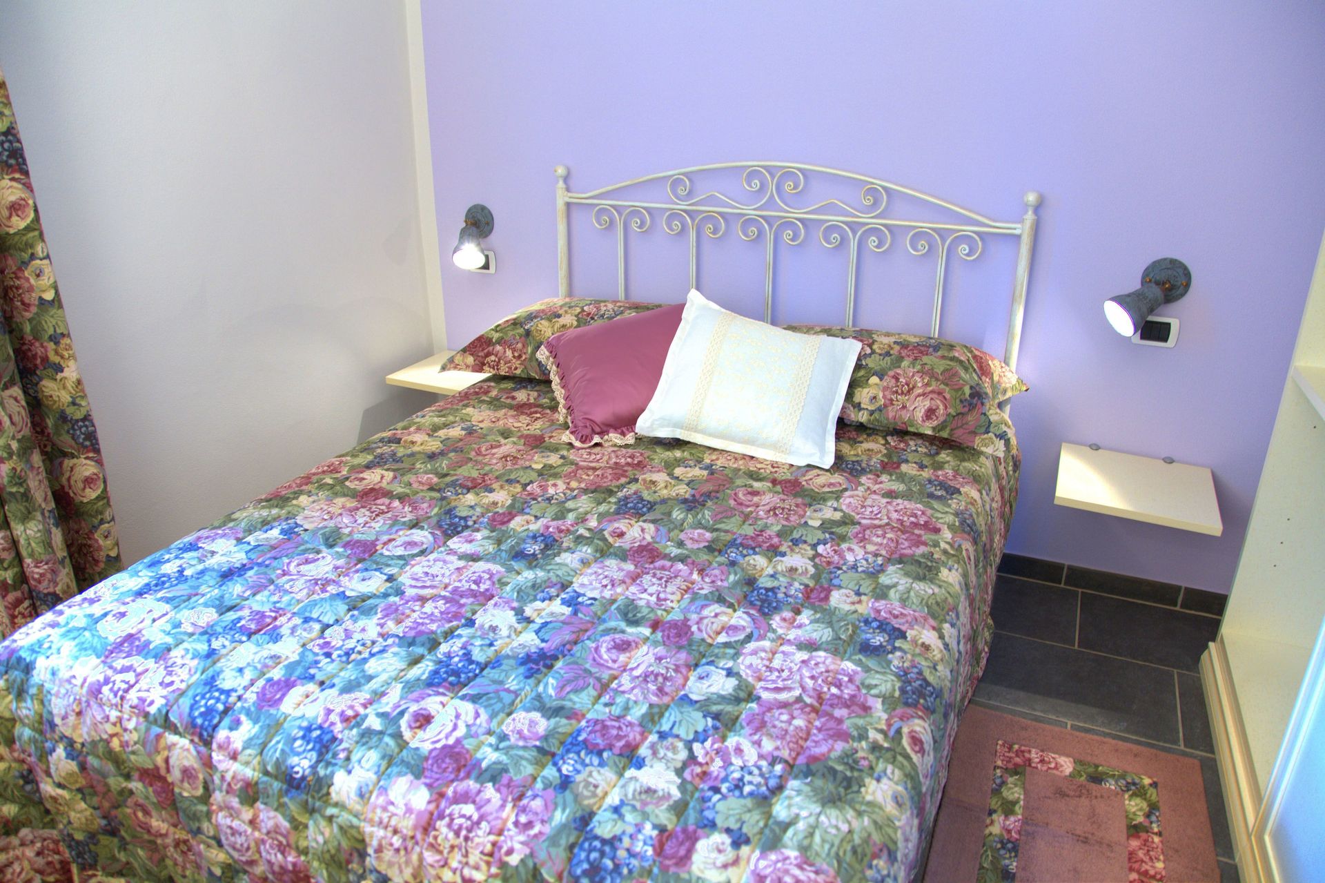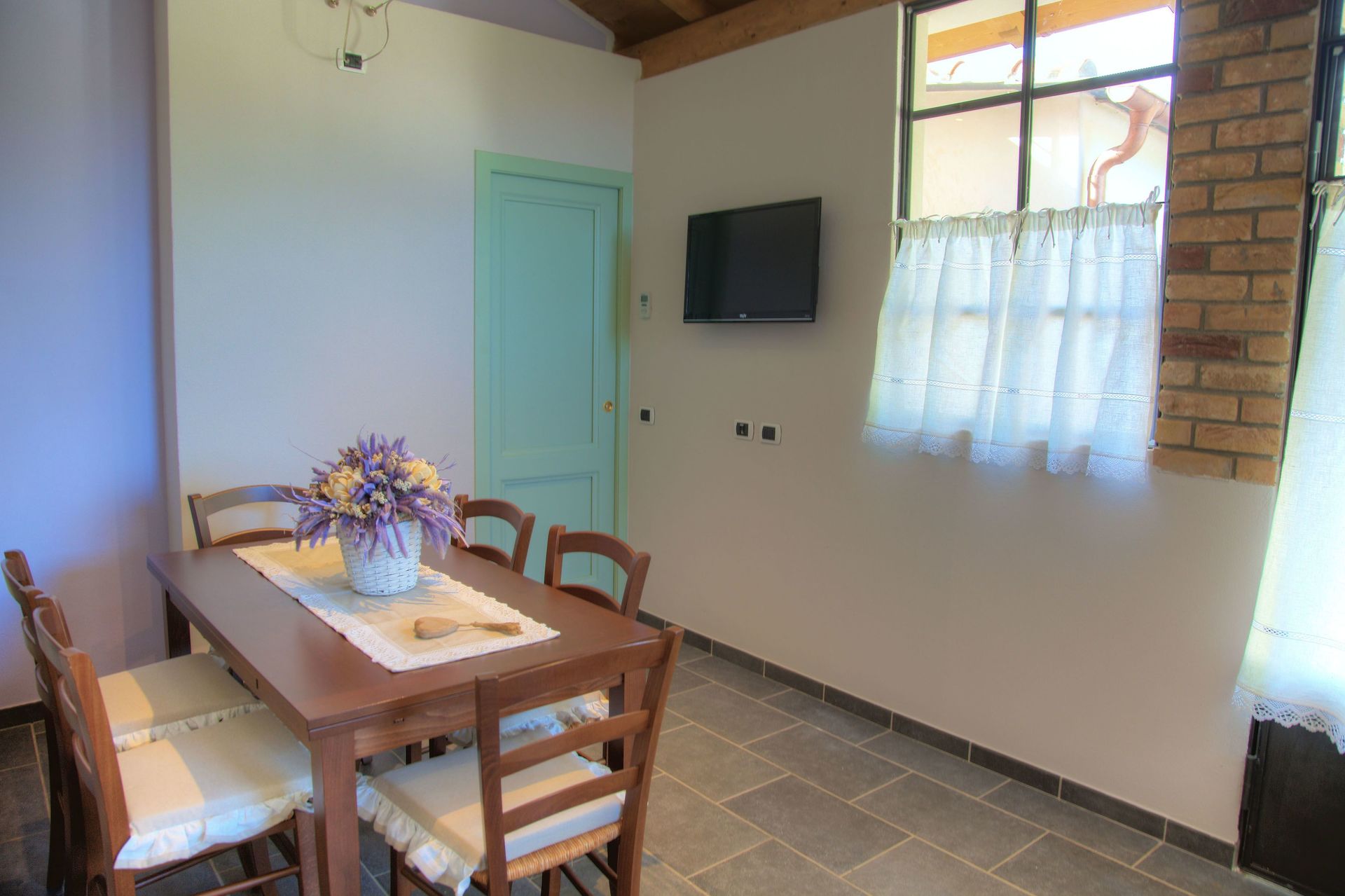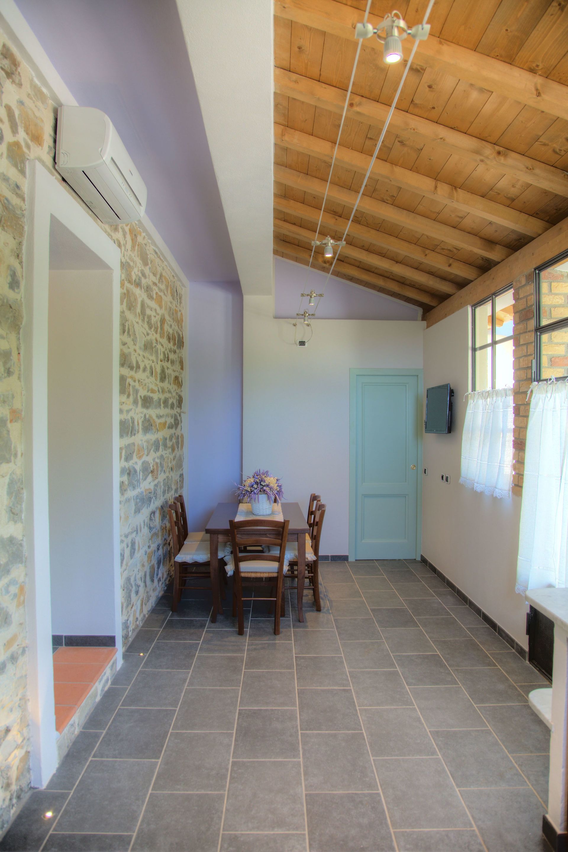 Si affaccia su una piccola corte che delimita un tappeto erboso. Deriva dal restauro di un deposito in pietra per le olive e di una legnaia.