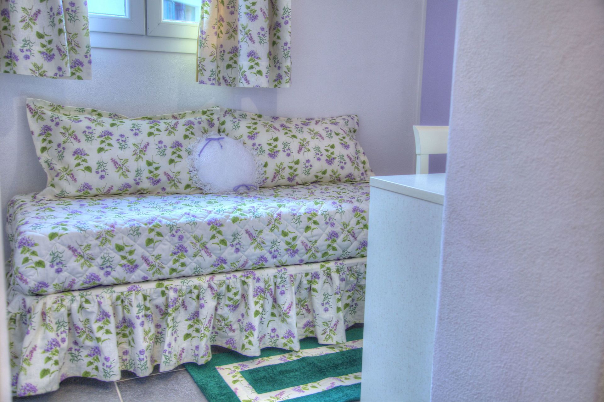 circa 50 m2, soggiorno con cucina, due camere da letto, più un’altra piccola camera con un letto aggiuntivo, bagno, area esterna con piccolo prato.