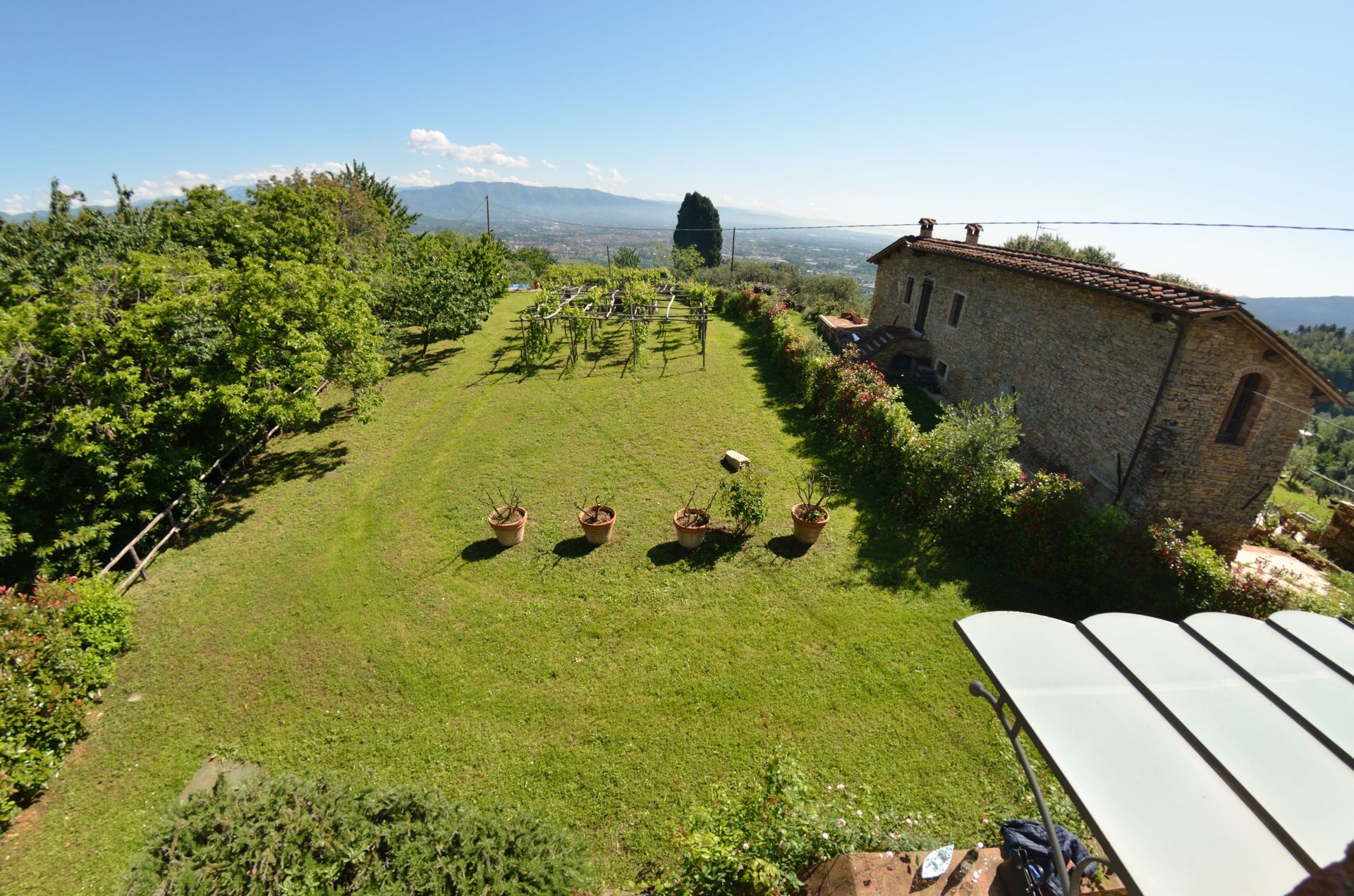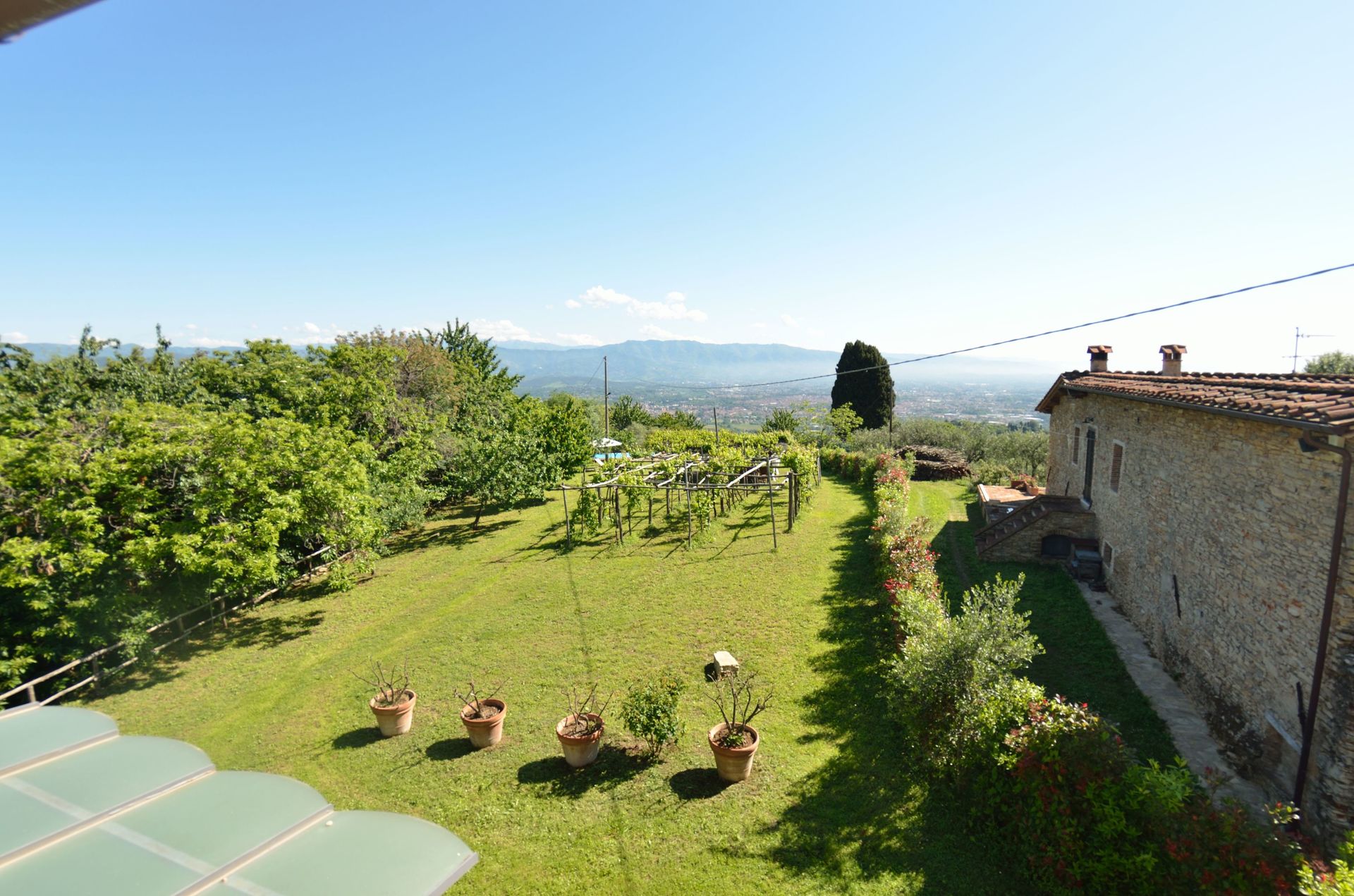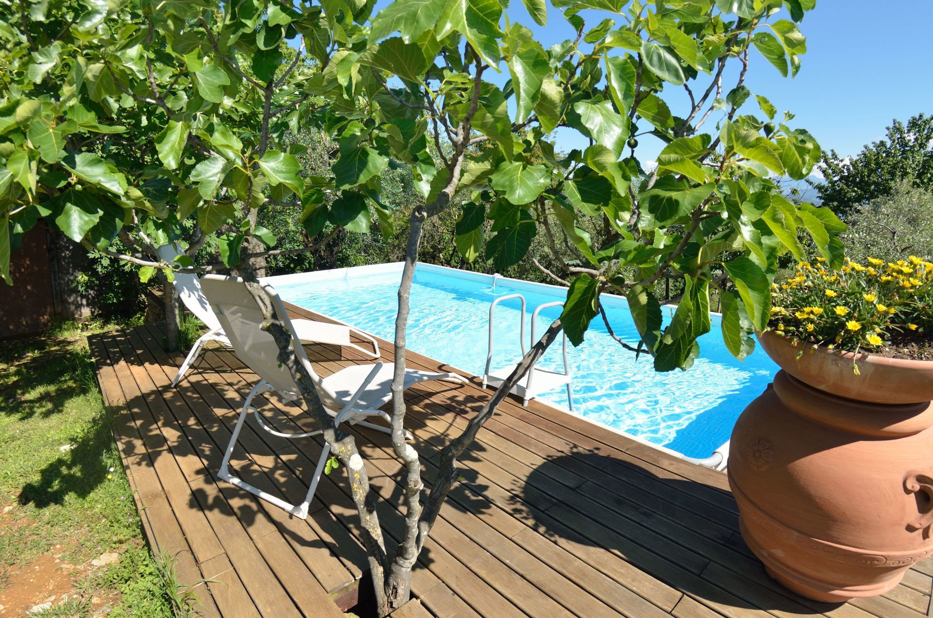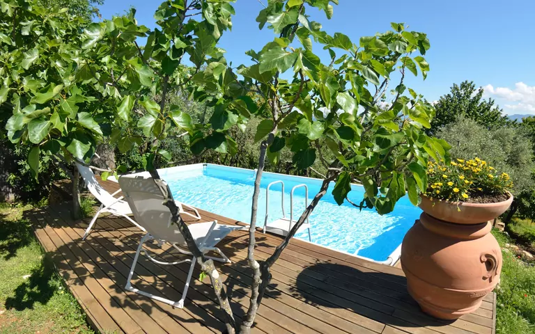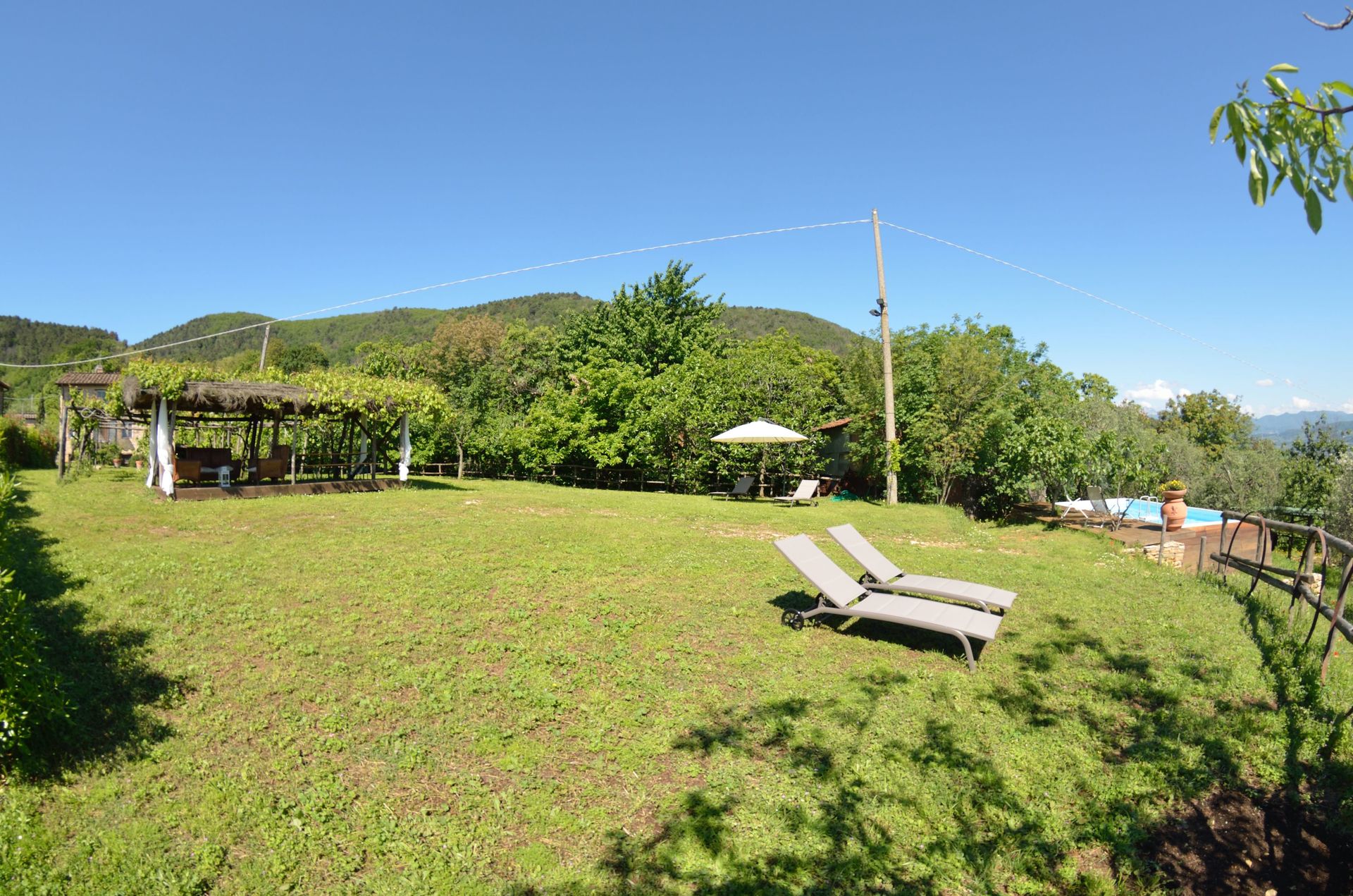 Die Lage ist sehr schön, auf einer Anhöhe gelegen, mit tollem Blick auf Lucca; das Gelände großzügig und gepflegt, mit Weinreben und Obstbäumen; der Pool, ist einfach, aber war zumindest für uns, vollkommen ausreichend zur Abkühlung; schöner, schattiger Lounge-Bereich mit Grillplatz und Strohüberdachung.