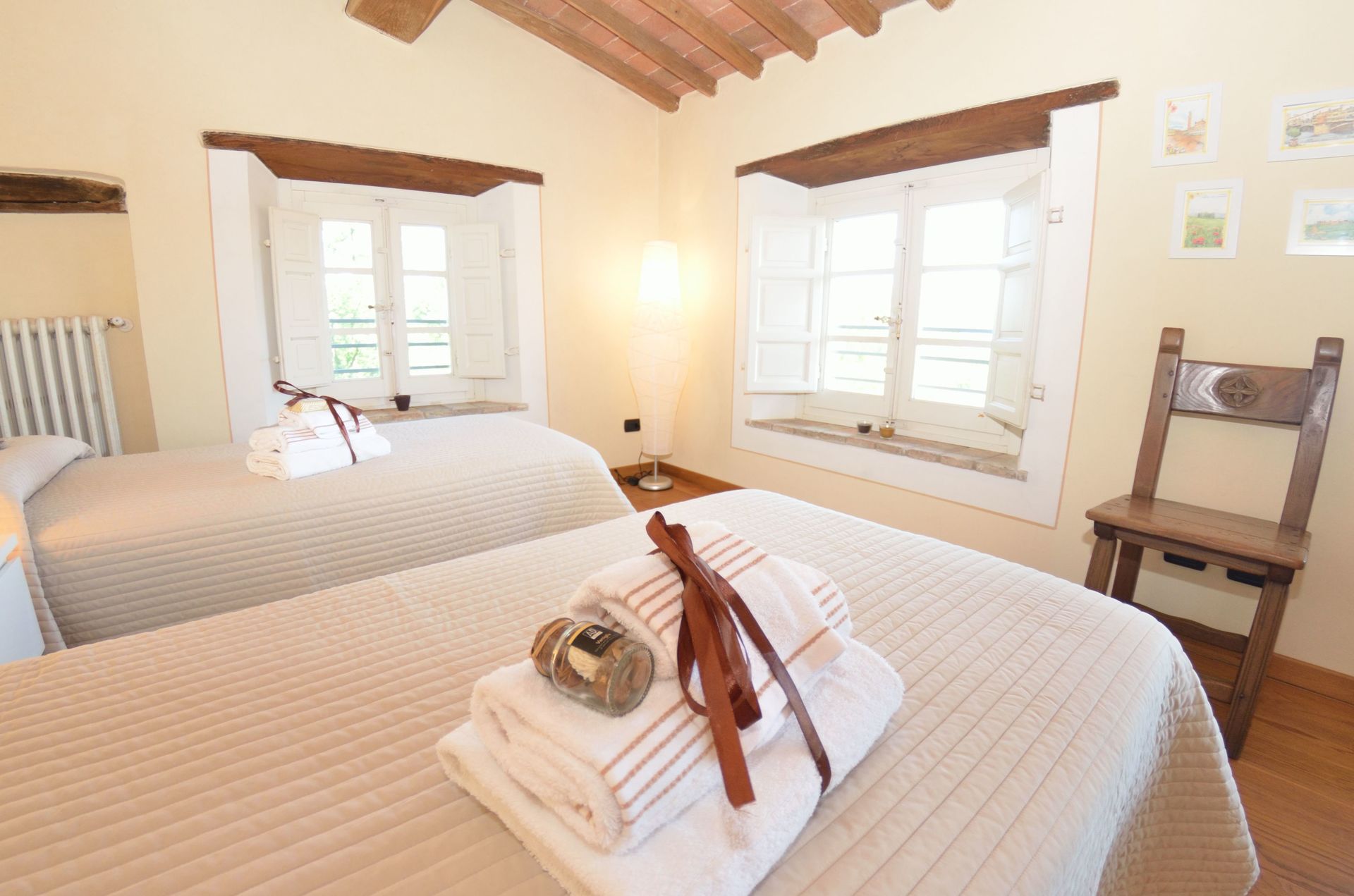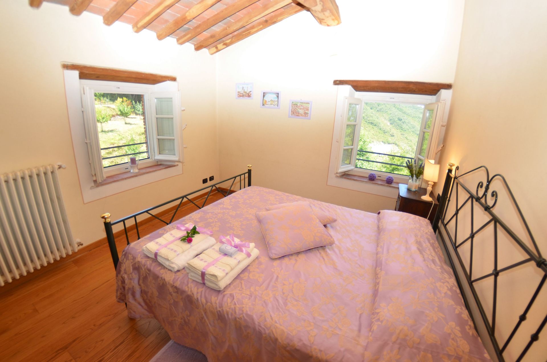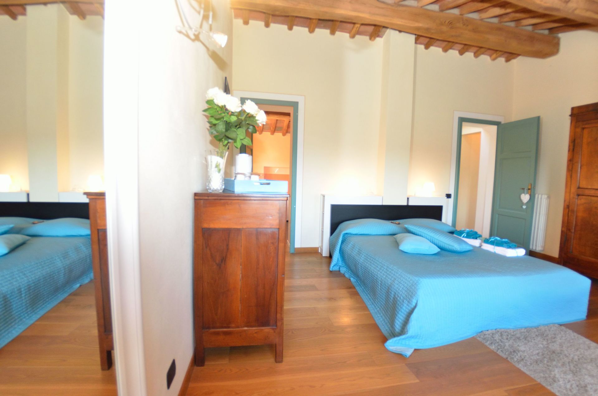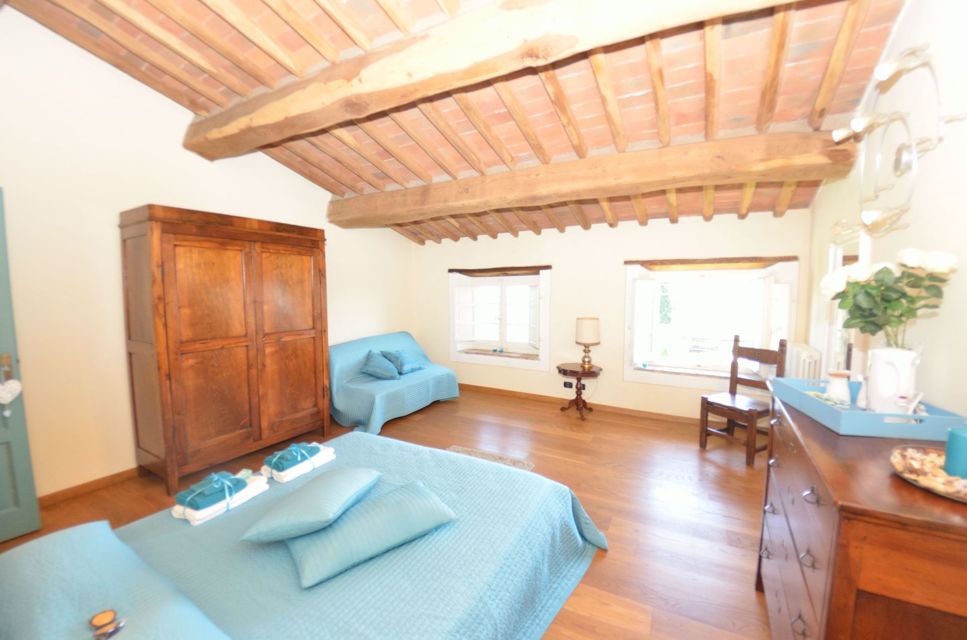 - versione per un numero massimo di 6+1 persone: ci sono 3 camere da letto a disposizione degli ospiti, il che significa che la quarta camera da letto, al piano inferiore, accanto al frantoio, NON è a disposizione degli ospiti.