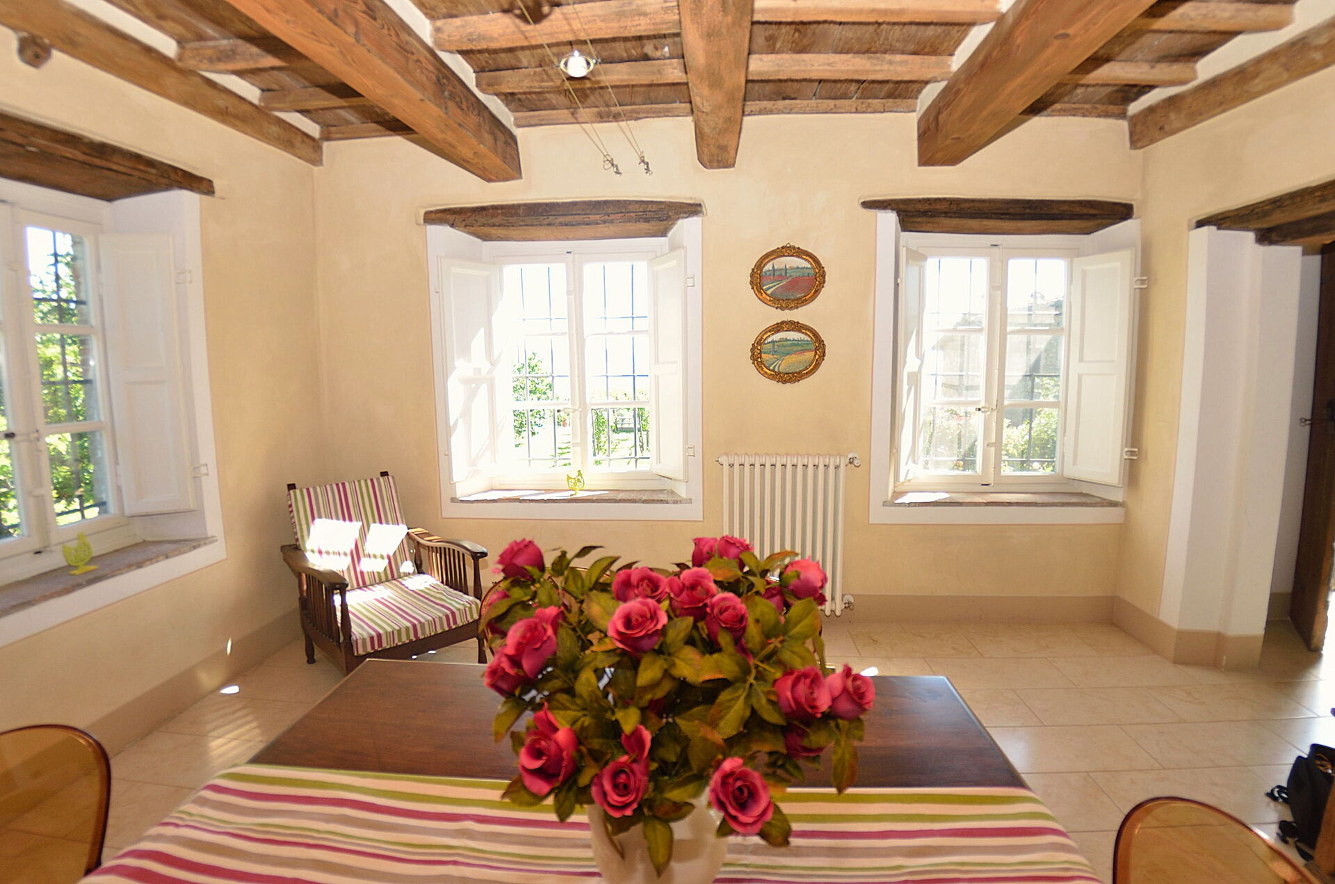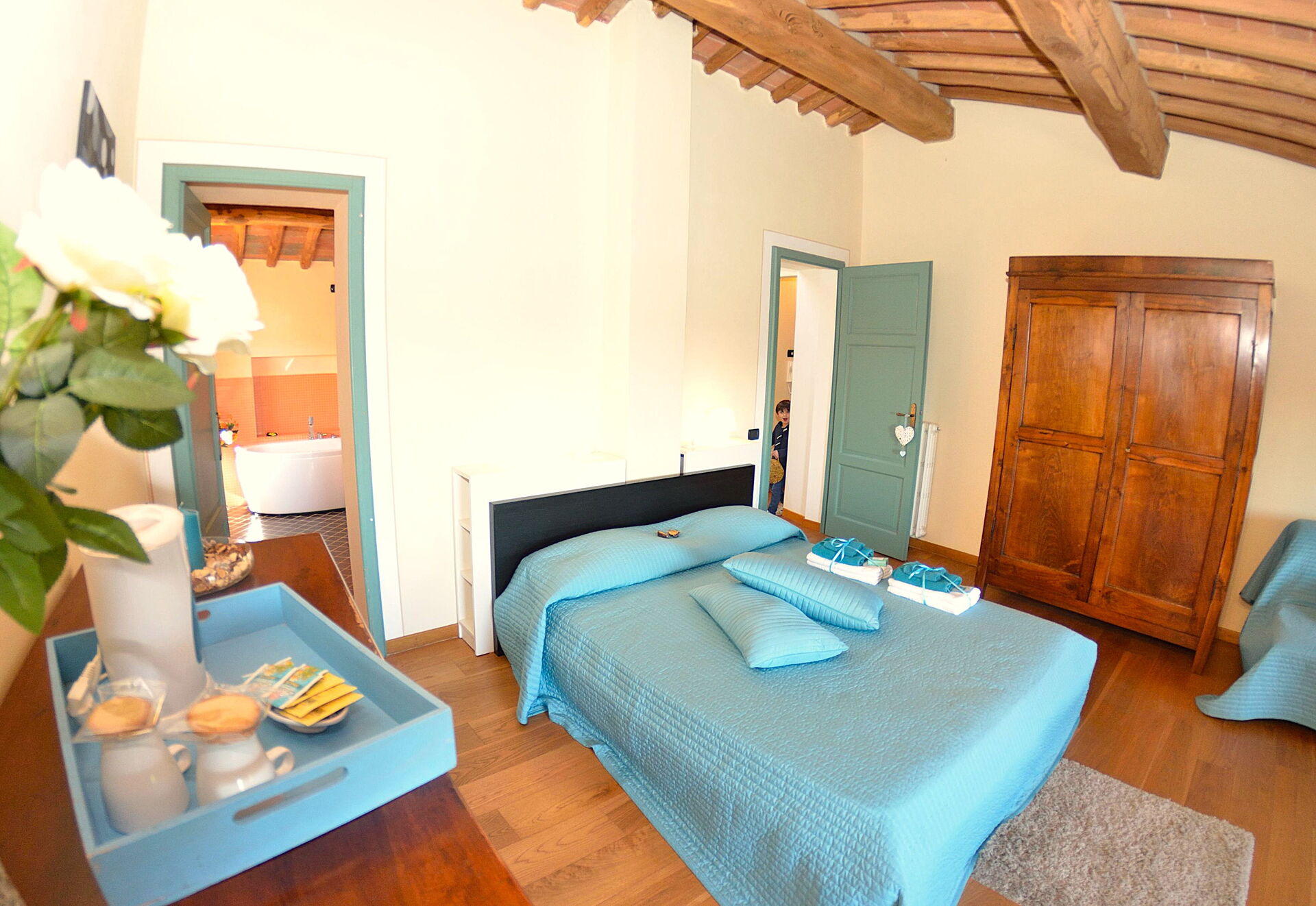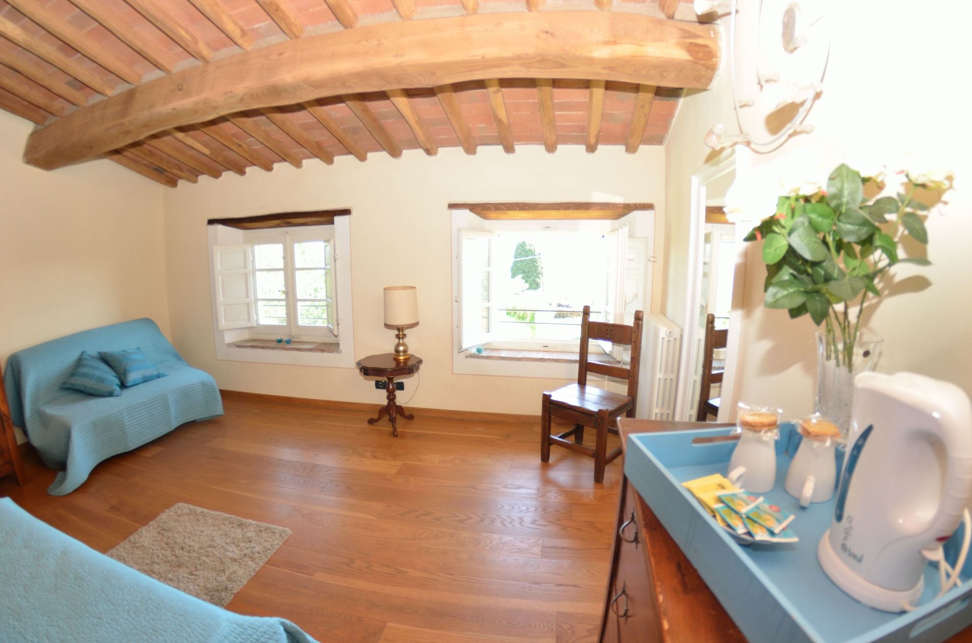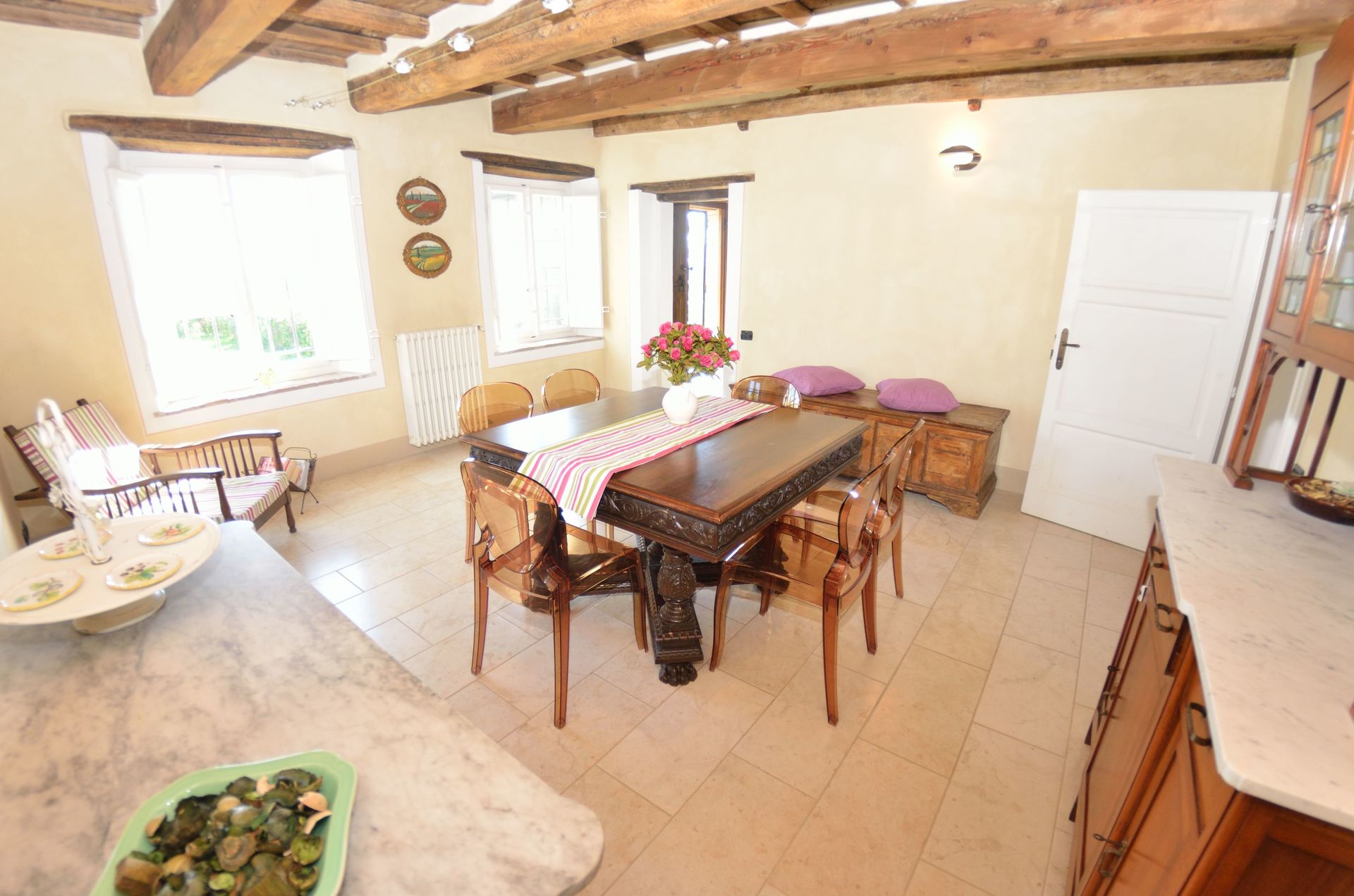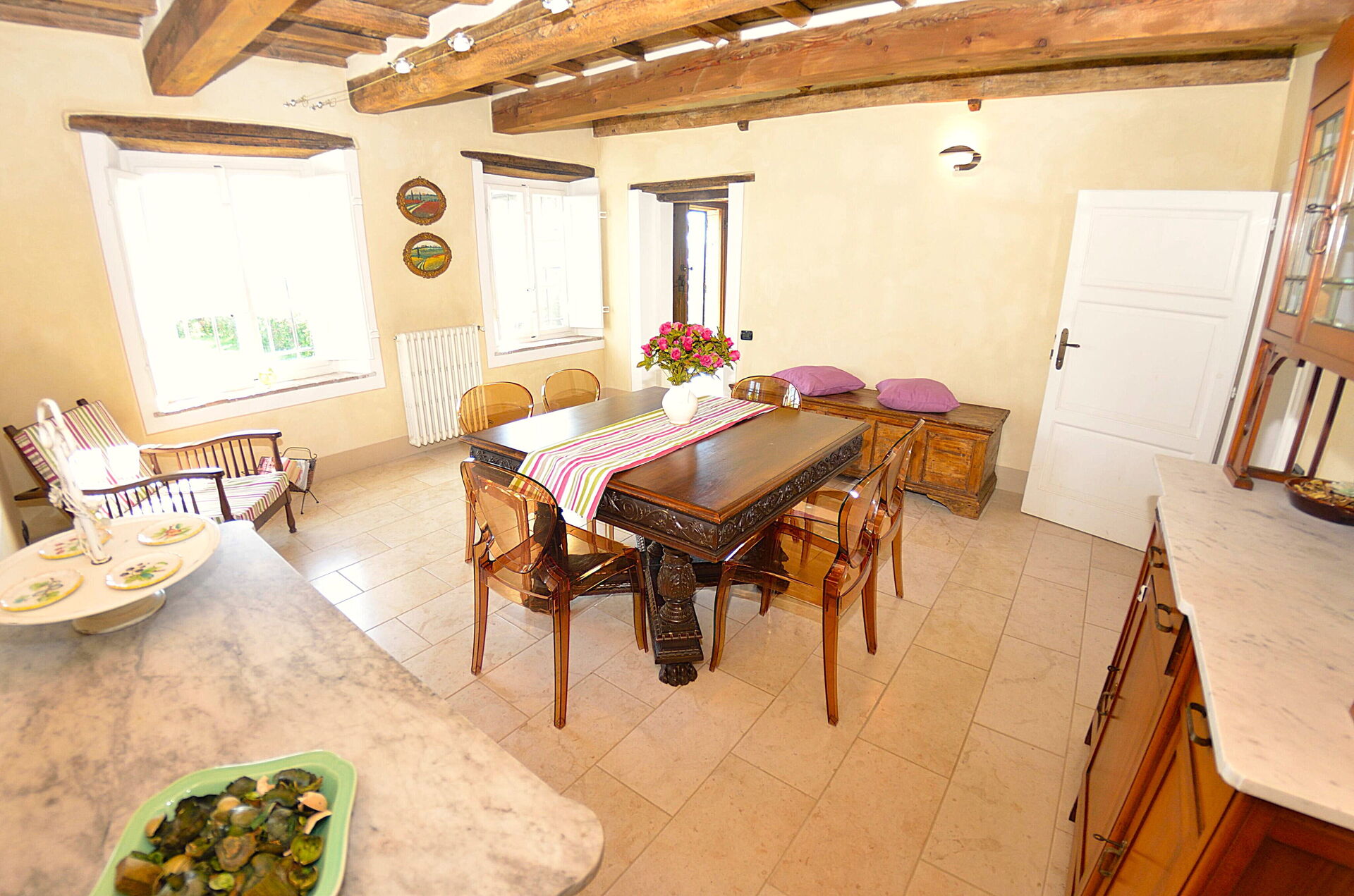 - versione per un numero massimo di 6+1 persone: ci sono 3 camere da letto a disposizione degli ospiti, il che significa che la quarta camera da letto, al piano inferiore, accanto al frantoio, NON è a disposizione degli ospiti.