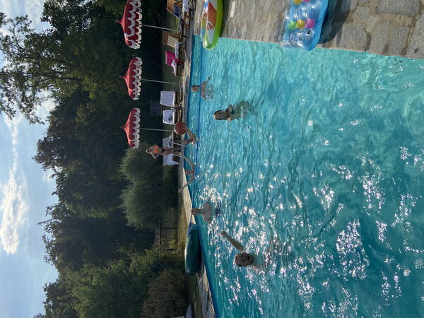 La piscina (1/5- 30/9) di 12mt* 5mt è situata in un ampio parco con sdraio, gazebi, doccia esterna.