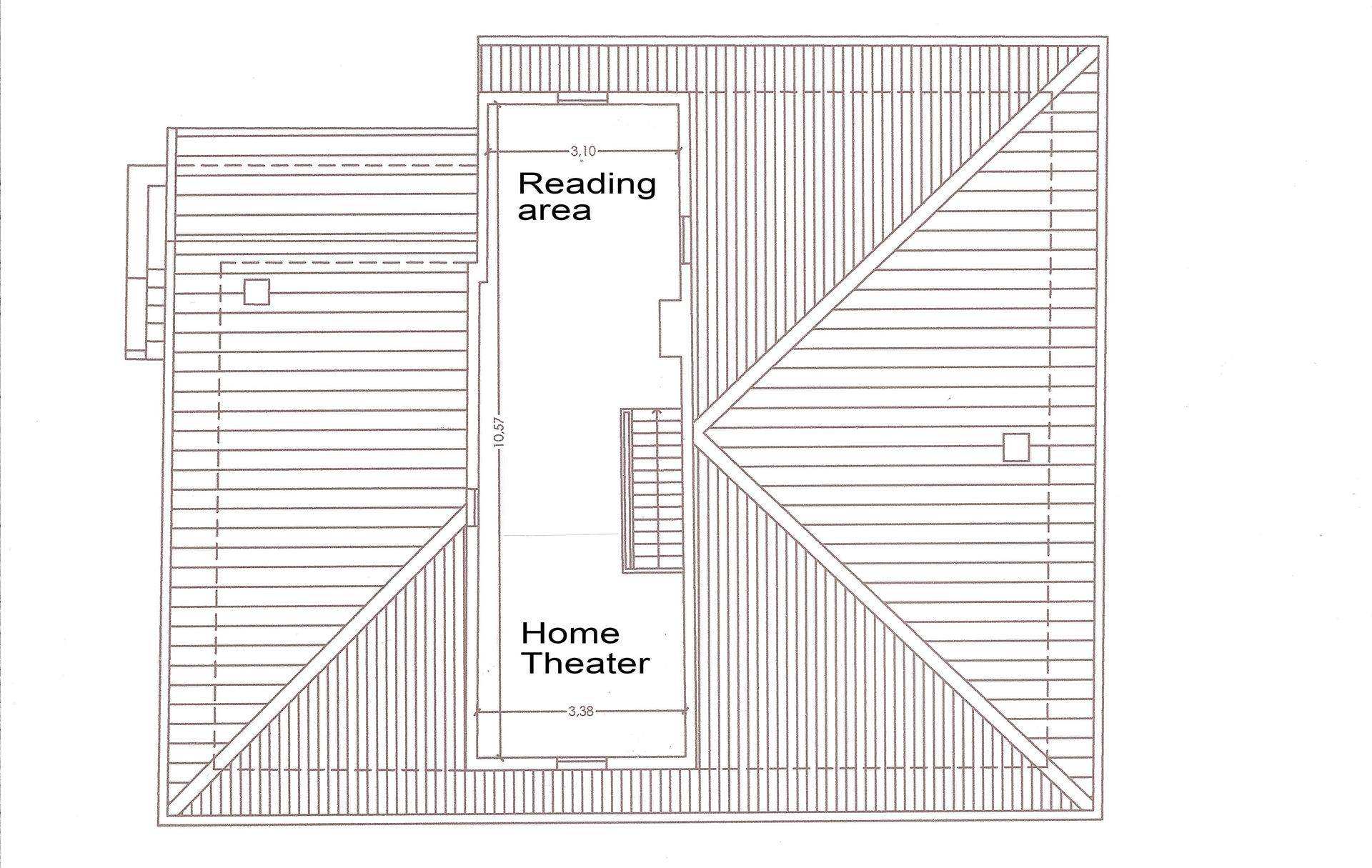 Secondo Piano: delle scale in legno portano all'ultimo piano, con cinema e zona lettura.