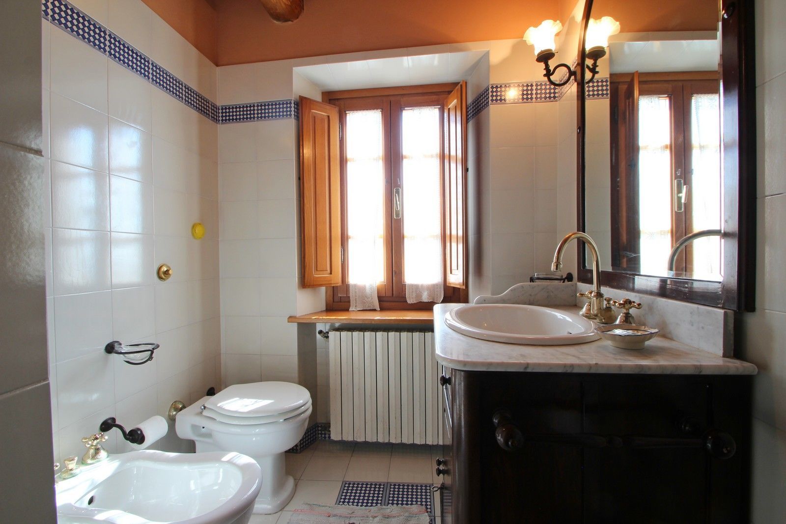Primo e secondo piano hanno pavimenti in cotto toscano imprunetino e soffitti con travi in legno e mezzane.