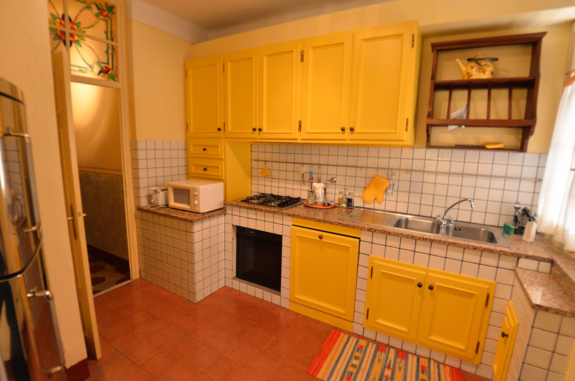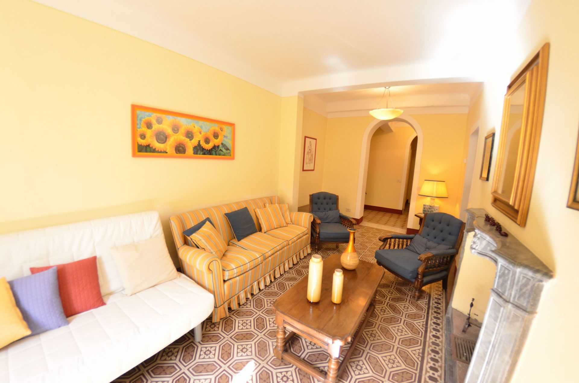 L’appartamento è molto accogliente, arredato con grande cura dei particolari e reso allegro dalle pareti in tinte pastello e dalle tappezzerie colorate.