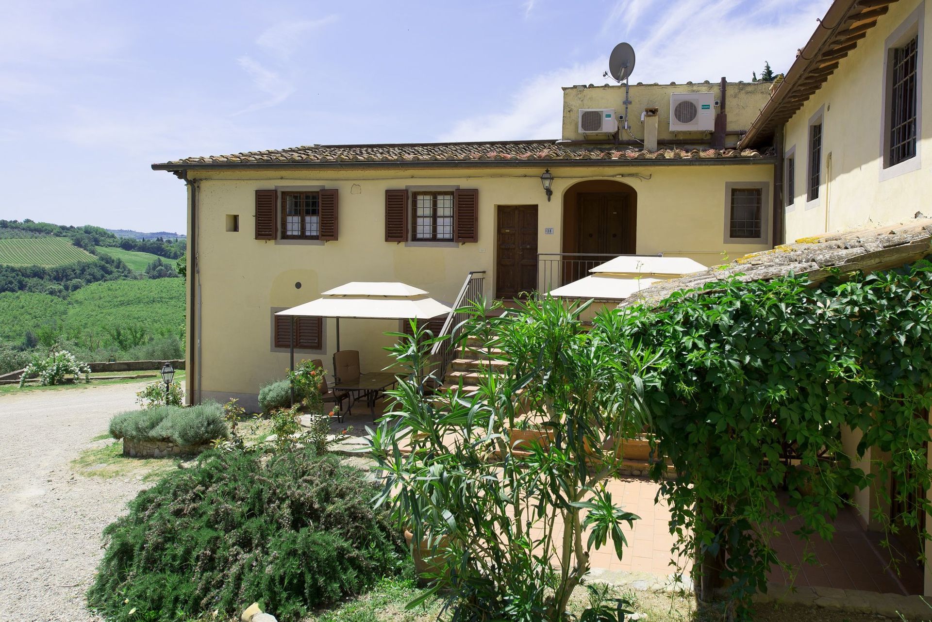 Il Castello si trova in una vasta proprietà coltivata a vigneti e oliveti ed è quindi circondato dal tipico paesaggio collinare del Chianti. Una meravigliosa piscina nell'ampio giardino vi attende per passare lunghe ore sotto il sole della Toscana.
