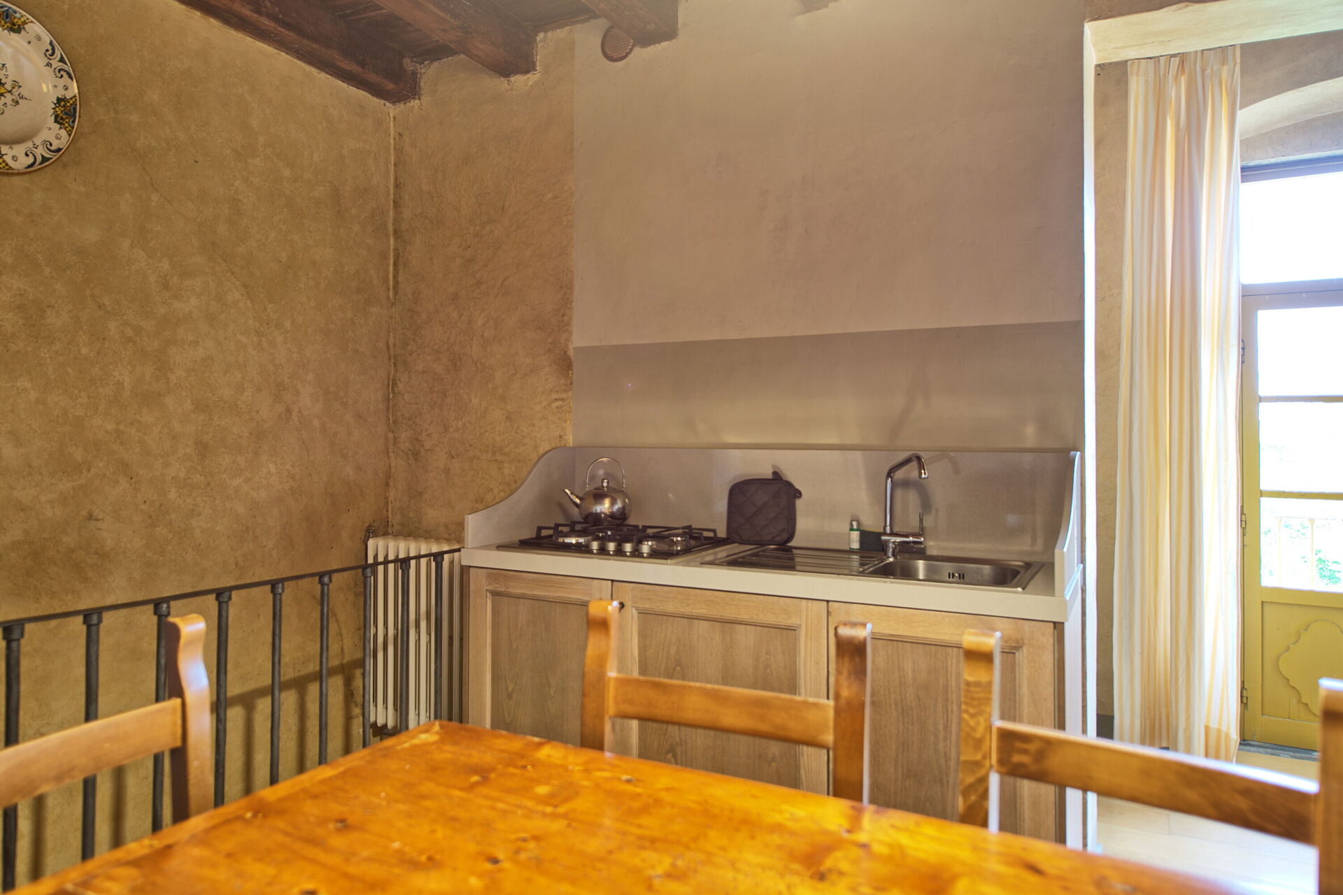 The accommodations are beautiful but not excellent because the kitchens are sparsely outfitted, no microwave, no toaster, only a coffee maker, two burner gas cooktop and a small refrigerator. It is hard to feed a family for a week out of the kitchens. There is no air conditioning in any of the rooms, nor screens on the windows. As long as you are prepared for this you will have a wonderful time at the Castello Montegufoni.Raccomanderesti la Proprietà ad un amico? Si