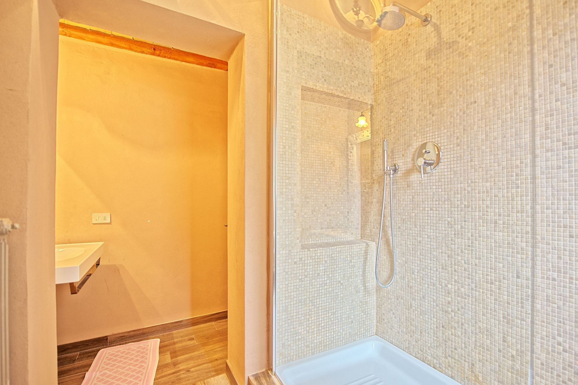 il nostro appartamento si trovava nella dependance del castello, posto meraviglioso. L'appartamento è composto da 3 camere matrimoniali di cui una con bagno in camera e le altre due con bagno esterno (tutti e tre ristrutturati recentemente e con doccia ). al piano sopra c'è un'altra stanza senza porta con due letti singoli.