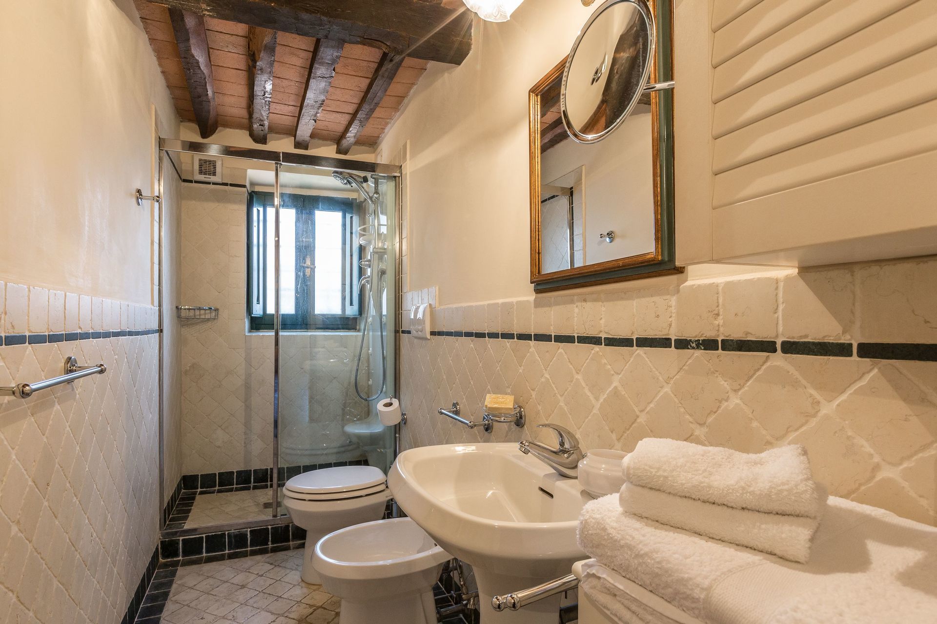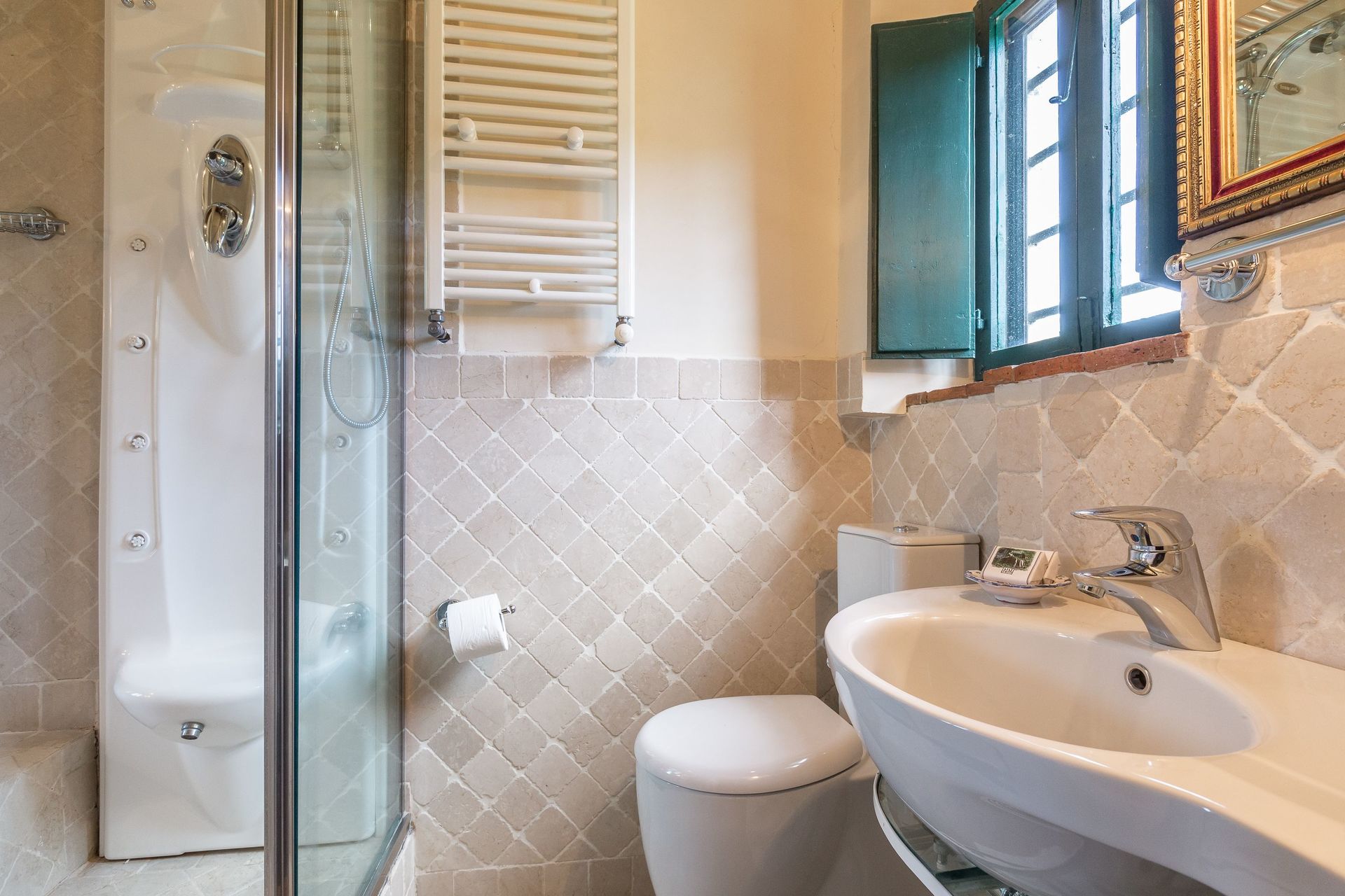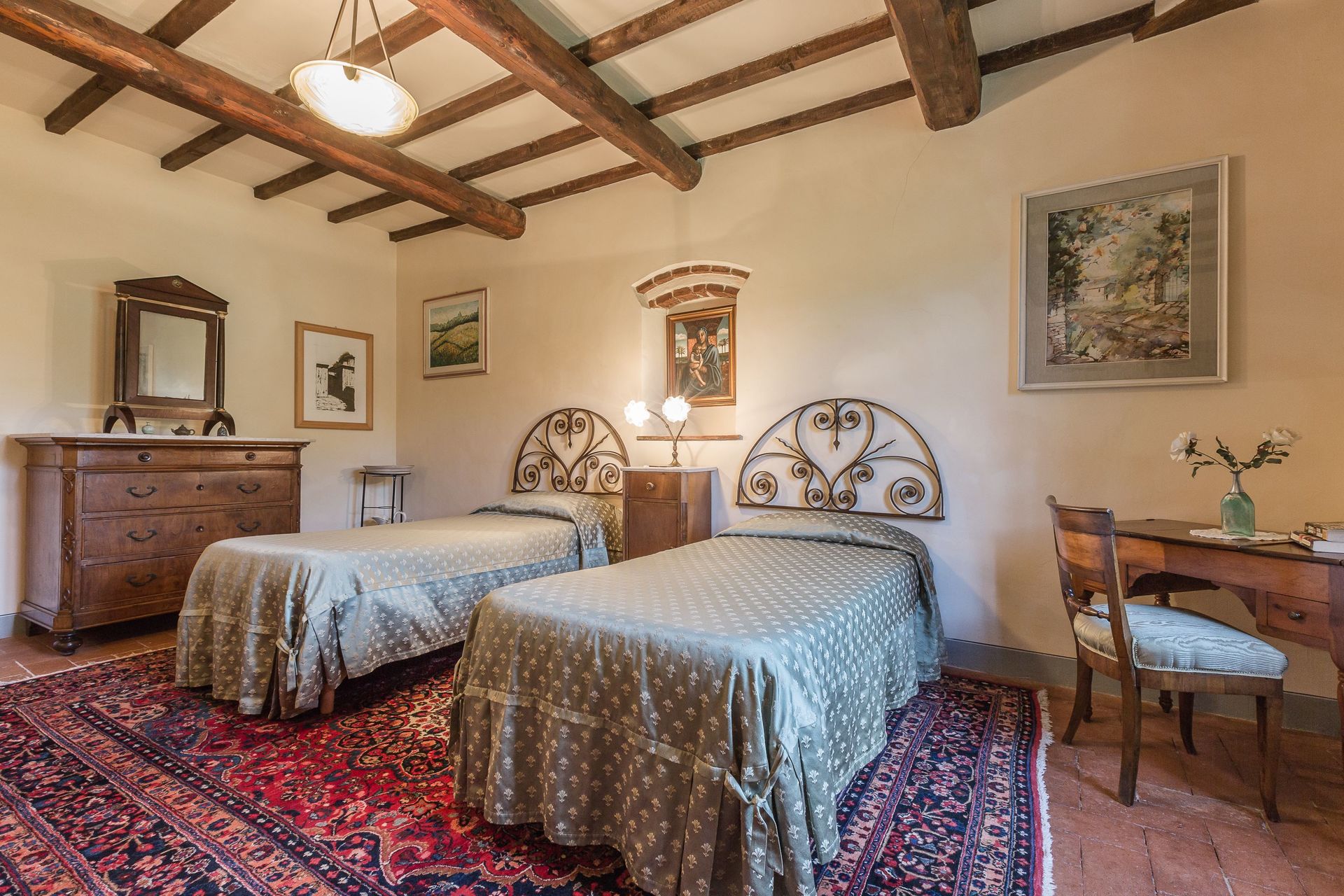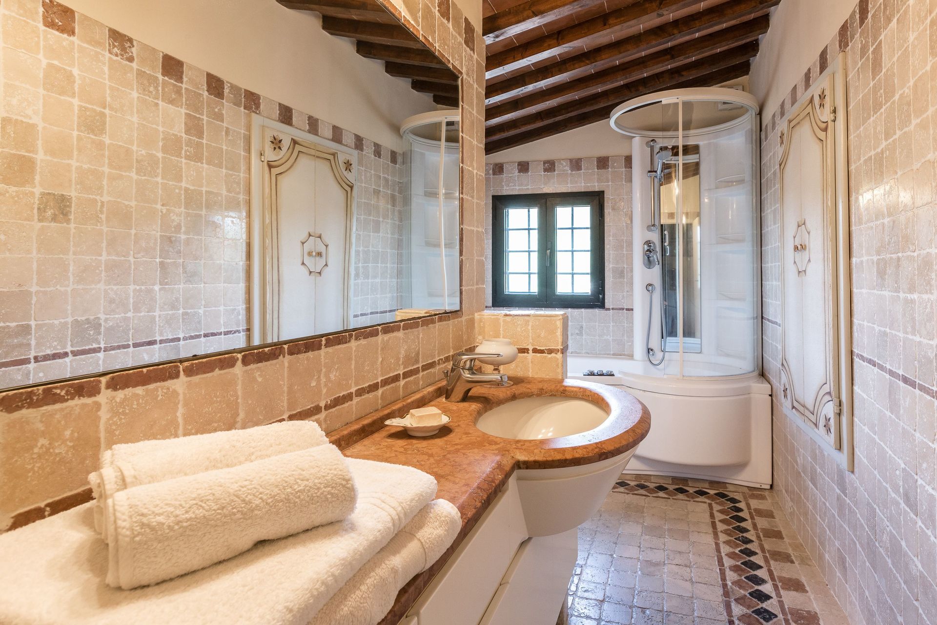 You will not be disappointed with this villa rental. All bathrooms have been 100 percent renovated. 4 of the 7 bedrooms have true king size beds. Home and antique furnishings are even nicer than pictures show. The 2 owners live near by and are a lovely couple and most helpful with anything you may need. They were a life saver for one in our party recovering lost luggage from the airline. If you are looking for a villa in the Tuscany area this property and it's gorgeous views should be your selection.Raccomanderesti la Proprietà ad un amico? Si