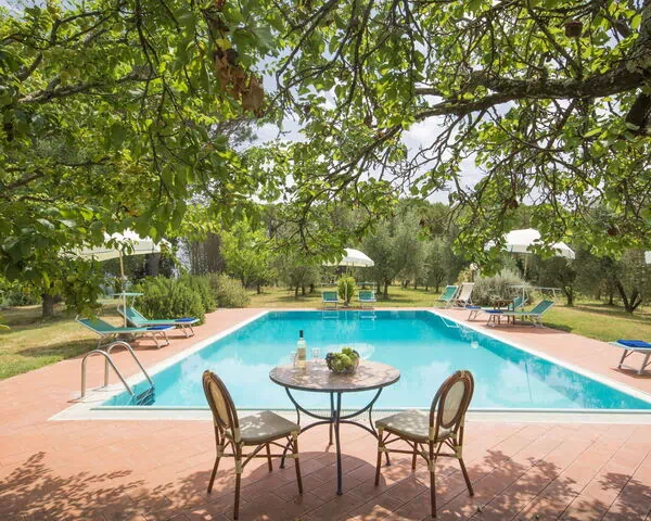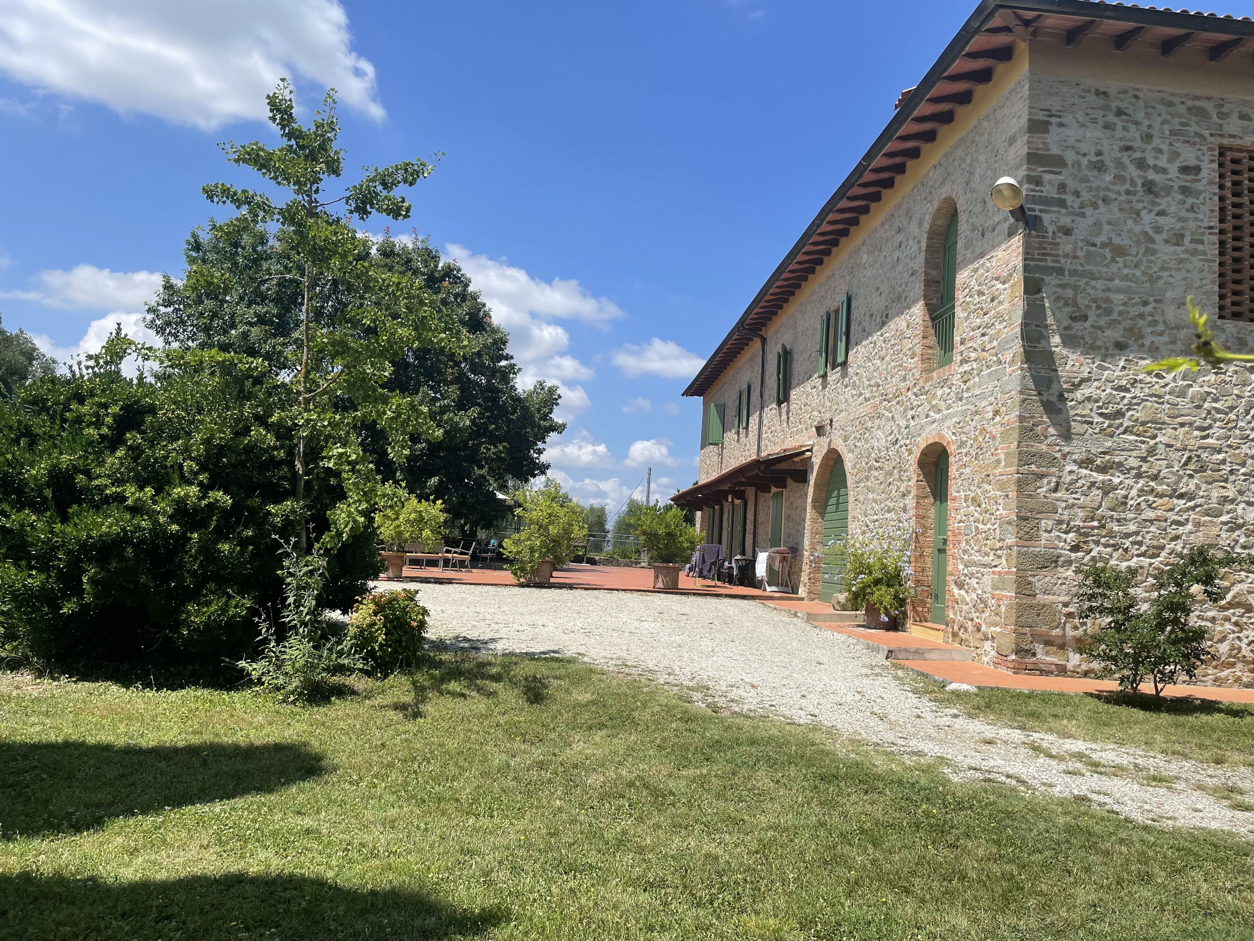 Gli spazi esterni di "Il Leccio" sono stati sapientemente organizzati per sfruttare al massimo la posizione elevata della proprietà e l'ambiente naturale circostante. La piscina stagionale, che misura 6 x 12 metri con profondità da 140 a 240 cm, offre un'oasi rinfrescante durante i mesi più caldi e rappresenta il punto focale naturale degli spazi esterni. Un campo da tennis in cemento fornisce un'eccellente opportunità agli ospiti di godersi una partita attiva immersi nella tranquilla atmosfera della campagna. La pergola offre uno spazio ombreggiato e suggestivo per rilassarsi, mentre la terrazza è arredata con mobili da giardino e barbecue, rendendola il luogo ideale per cene all'aperto e riunioni piacevoli. L'ampio terreno di 2 ettari, ricoperto di verdeggiante vegetazione, invita gli ospiti a esplorare e rigenerarsi in completa privacy, con viste panoramiche sulle colline toscane che offrono uno sfondo costantemente affascinante.