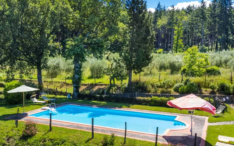 Immersa nella dolce campagna toscana di Pelago, in Italia, Certina è una affascinante struttura vacanziale che invita gli ospiti a scoprire la tranquillità di un rifugio rurale in posizione elevata. La proprietà è composta da 2 edifici distinti: la residenza del proprietario e una seconda struttura che ospita 4 appartamenti indipendenti, il tutto inserito in un paesaggio naturale straordinario. Posizionata a 510 metri di altitudine sulla sommità di una collina, Certina gode di una posizione serena e panoramica che offre sia isolamento che bellezza. L'estate è circondata da un generoso giardino di 33 ettari, dove abeti, pini, ulivi e castagni creano un ambiente naturale lussureggiante e variegato. Una affascinante corte in pietra aggiunge carattere alla proprietà, mentre il bosco circostante offre sentieri panoramici ideali per passeggiate tranquille o avventure in mountain bike. Gli ospiti hanno inoltre accesso a una piscina recintata di 6 x 12 metri, con profondità che varia da 130 a 160 cm, disponibile stagionalmente dal 6 maggio al 23 settembre, rappresentando una meravigliosa caratteristica per i soggiorni nella stagione calda.