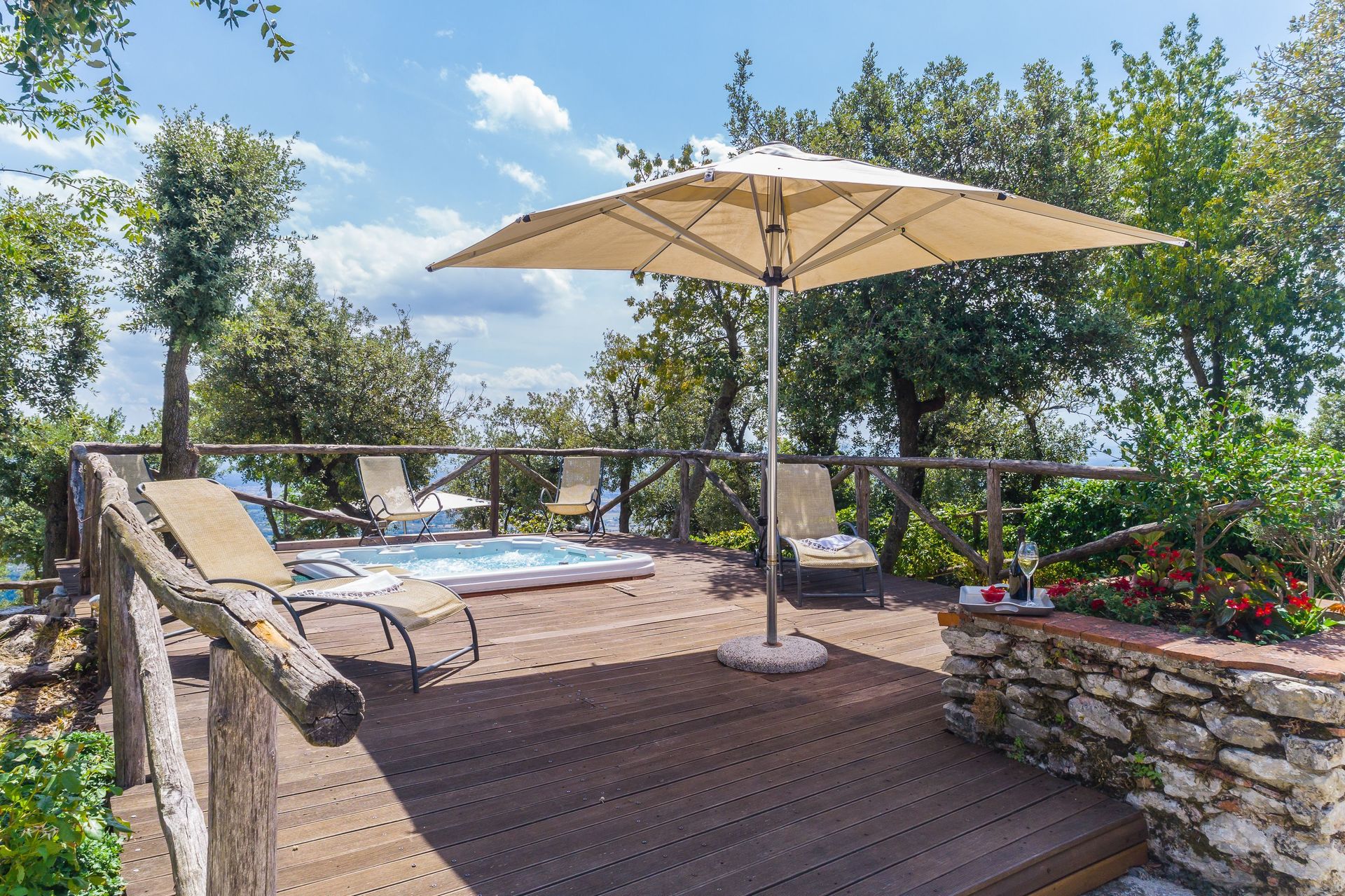La proprietà è posizionata a Monsummano Terme (Italia), nell'area turistica "Lucca e Dintorni" e solo a 38 km di distanza da Lucca. La struttura Villa Del Santo Bastiano è una incantevole proprietà (220 mq) che offre vasca idromassaggio, internet Wi-Fi e aria condizionata. La proprietà può accogliere comodamente fino a 12 ospiti in cinque camere da letto con cinque bagni. Puoi trovare un campo da golf nelle vicinanze, nel caso in cui tu voglia cimentarti in questo sport durante la tua vacanza.