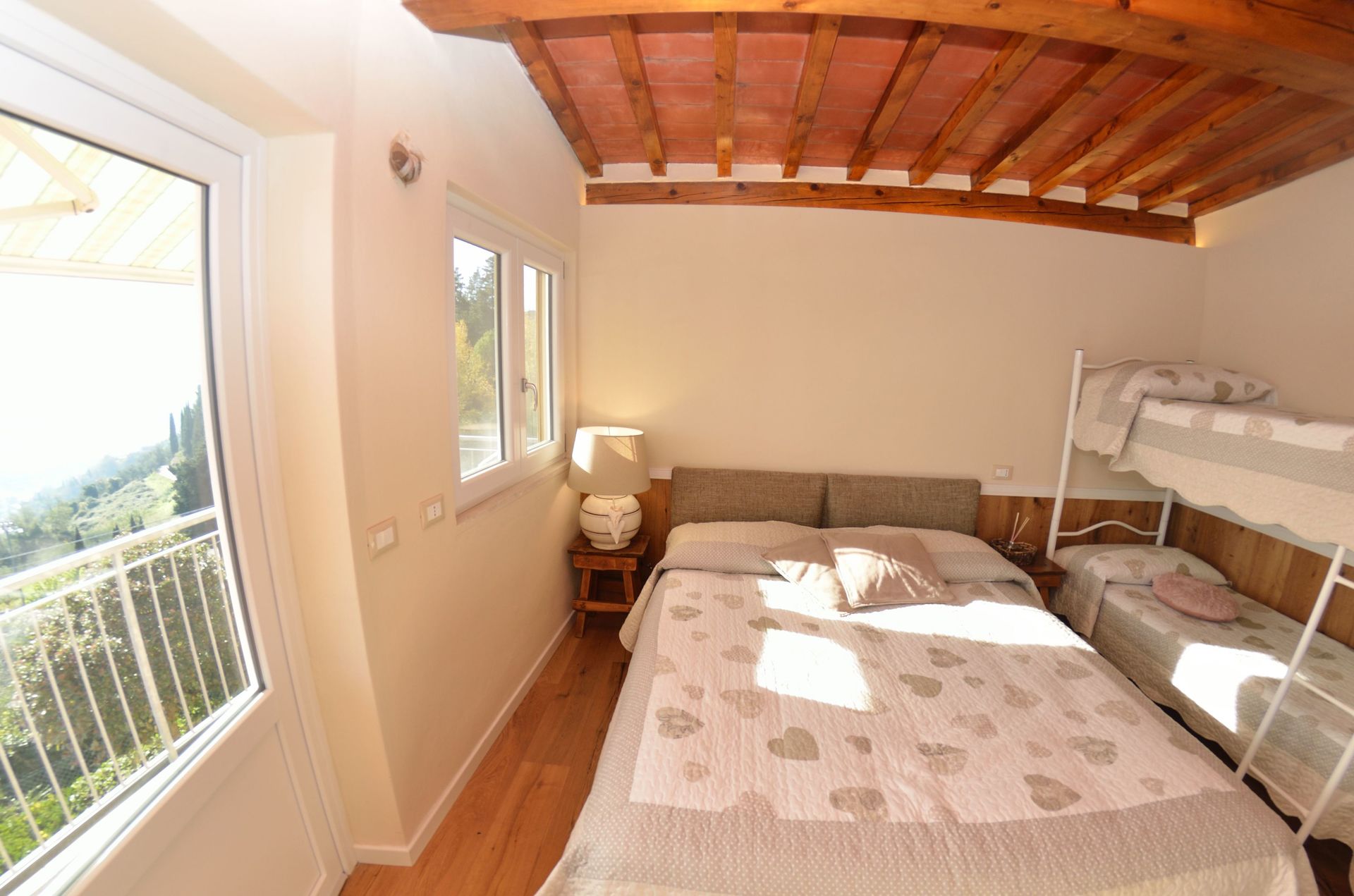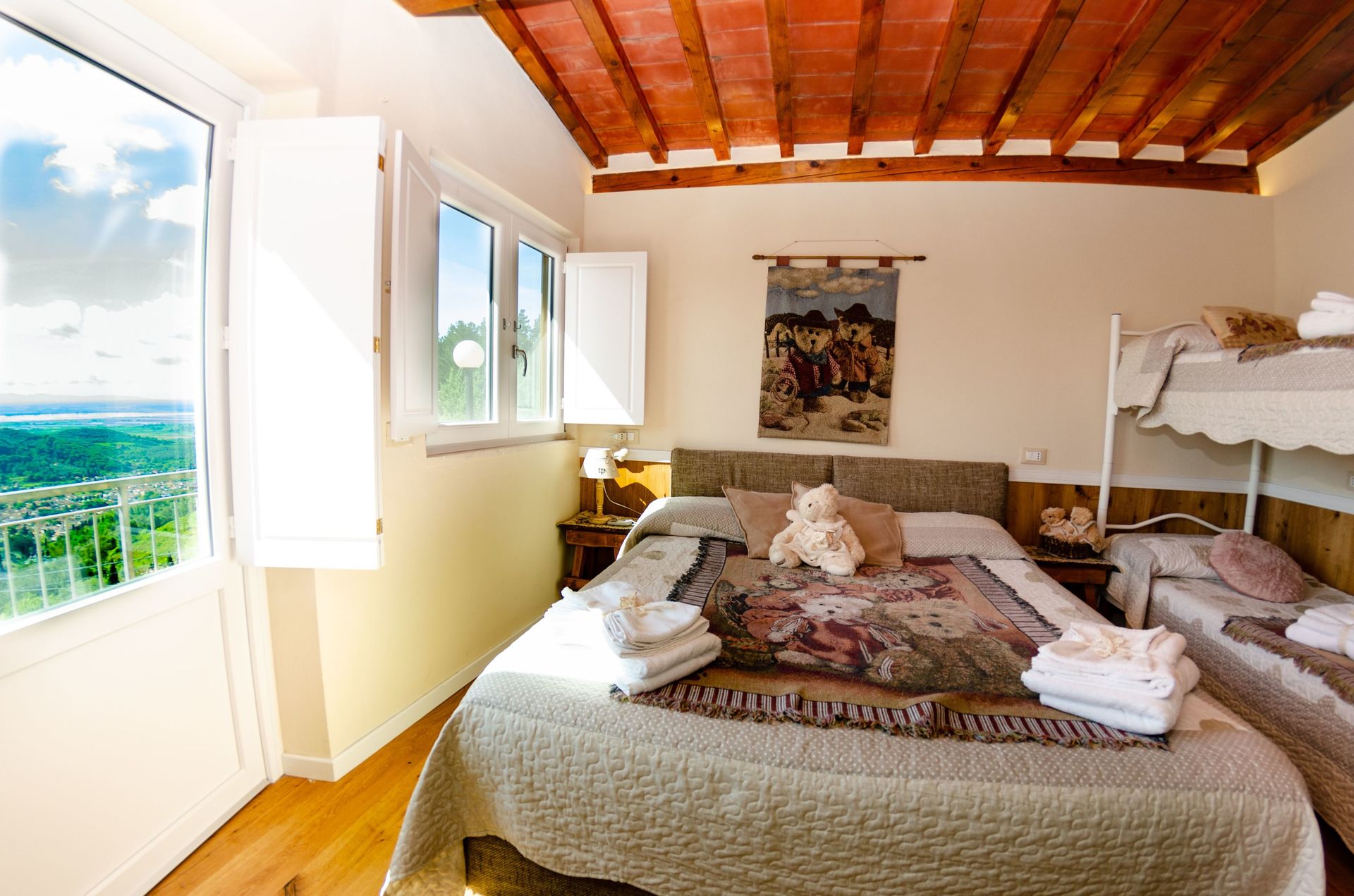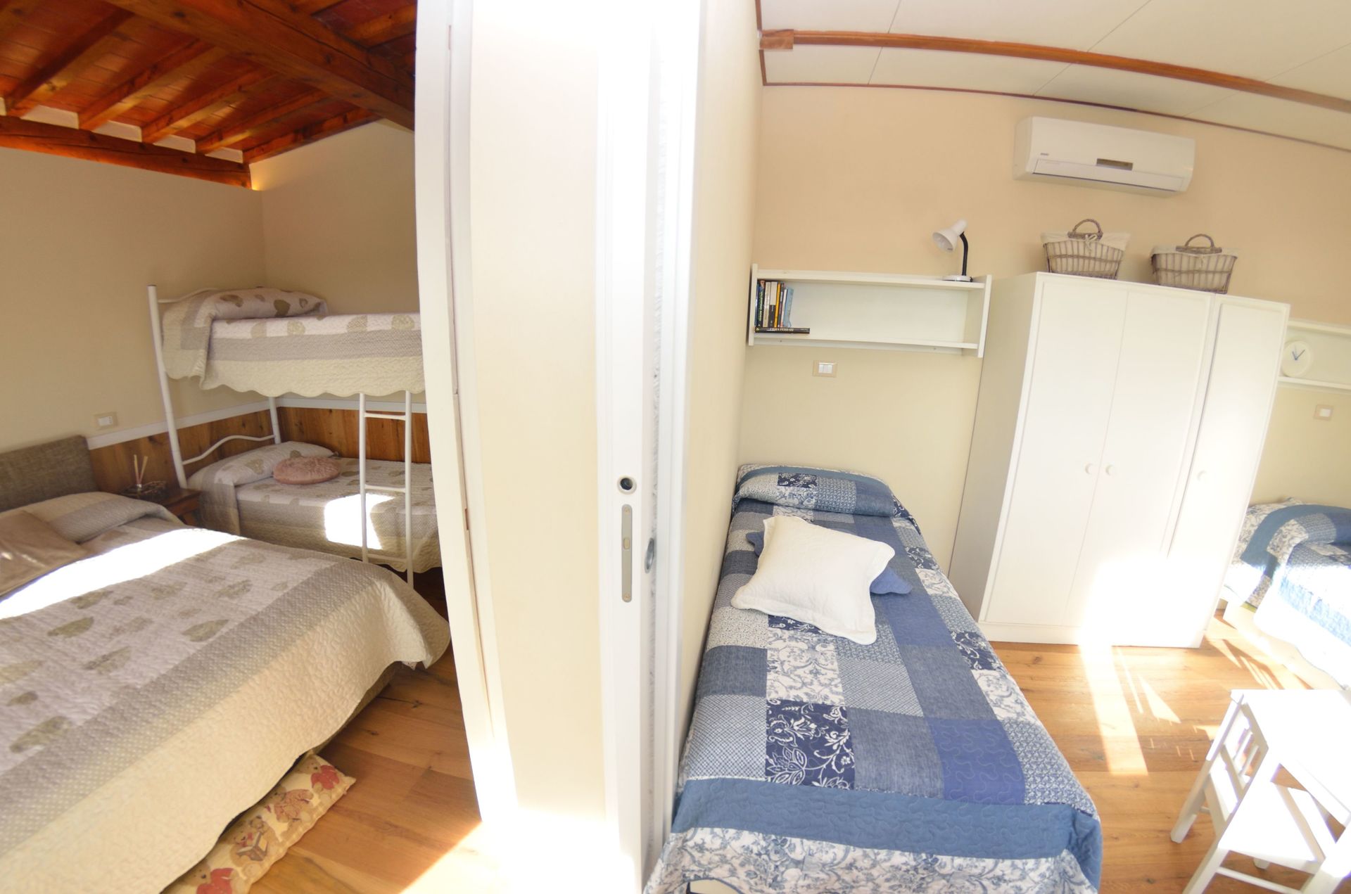La camera con letto matrimoniale e letto a castello si raggiunge passando dalla camera con i due letti singoli