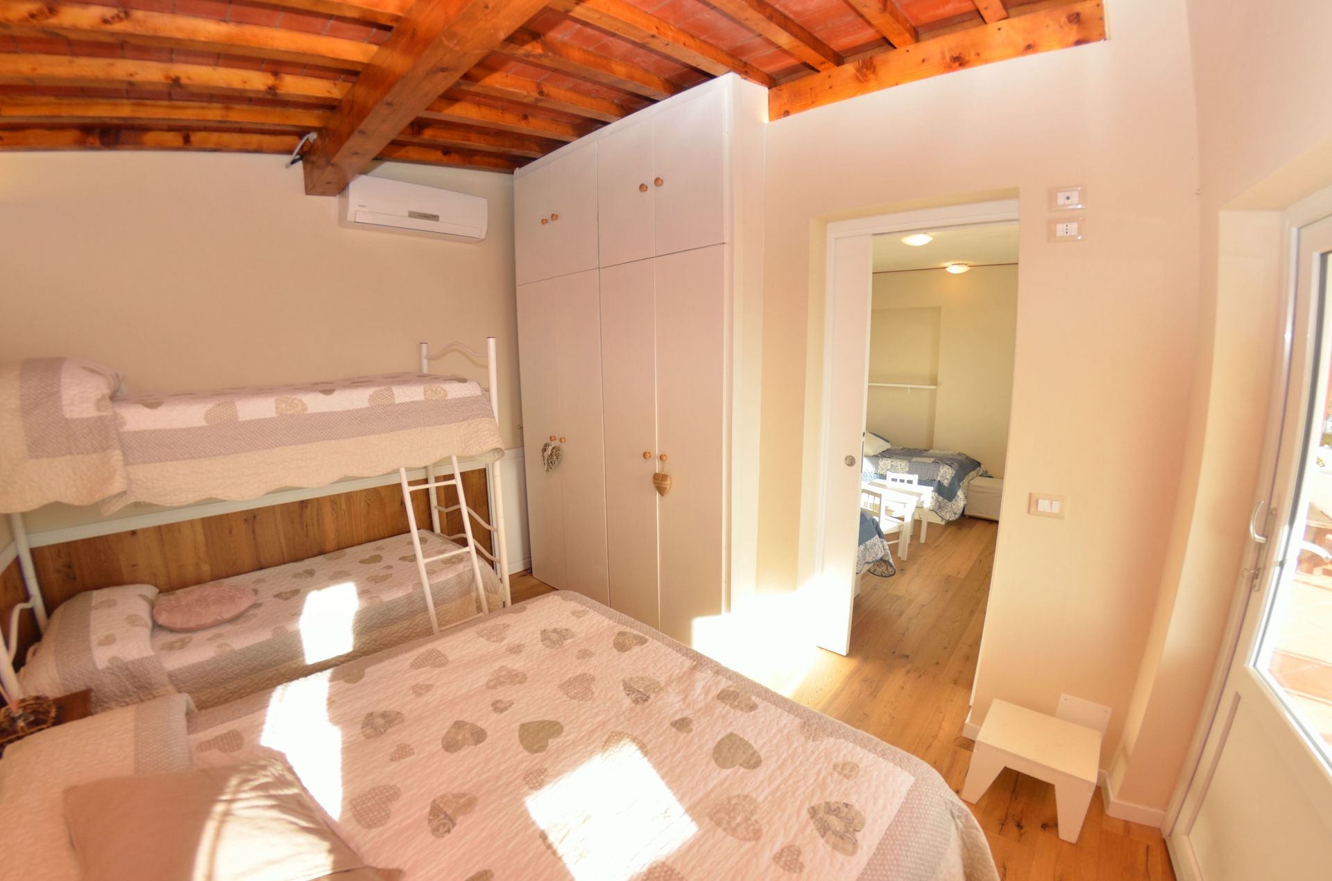 Camera da letto 2: letto matrimoniale, letto a castello, internet WIFI, aria condizionata, zanzariere, uscita sulla terrazza.