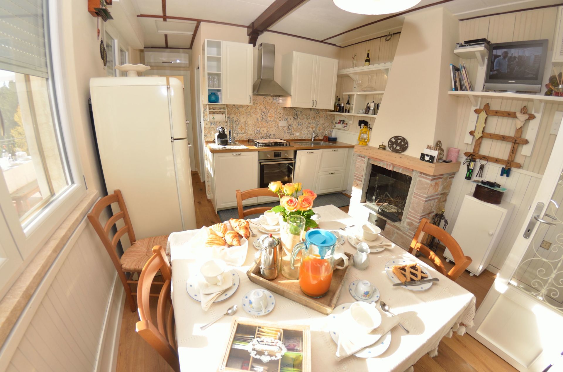 Cucina: tavolo da pranzo (persone: 4), lavastoviglie, frigo, freezer, piano cottura, forno, tostapane, macchina da caffè (italiana), lavatrice, caminetto, internet WIFI, aria condizionata, zanzariere, televisione, uscita sulla terrazza.