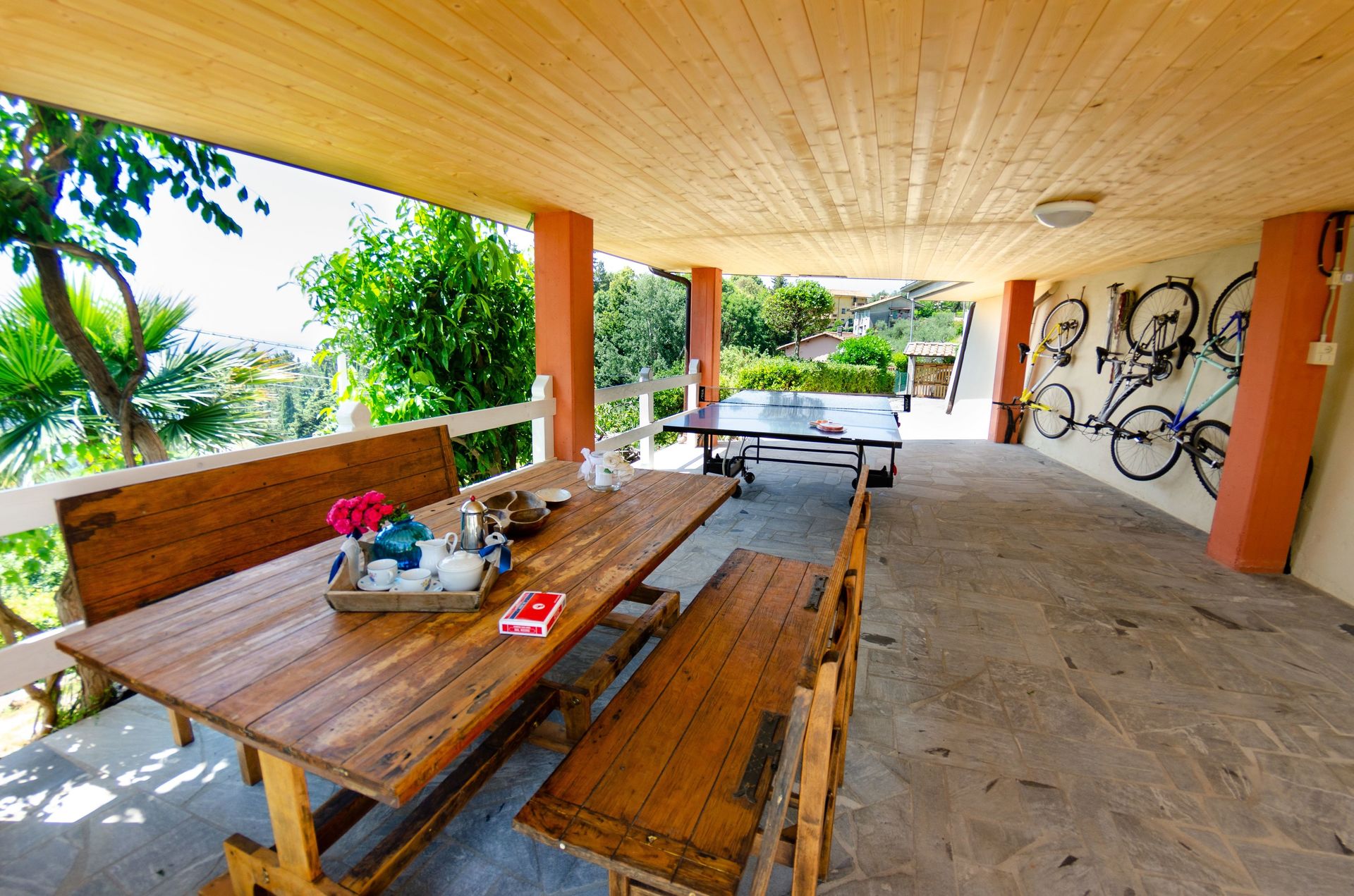 Veranda: tavolo da pranzo, arredamento da terrazza.