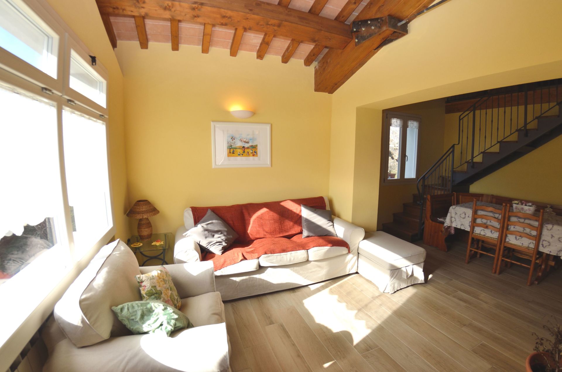 Una volta arrivato troverai una incantevole casa vacanze pulita e in ottime condizioni con vista sulle colline, ideale per una rilassante vacanza in Toscana. Per il tuo divertimento troverai una piscinal dove poterti riposare mentre ti godi una bibita rinfrescante dopo una giornata impegnativa ricca di visite ai musei locali. Fuori avrai a tua disposizione anche un parco giochi e un barbecue. Diverse persone che viaggiano in compagnia di amici preferiscono una casa vacanze con più alloggi dover poter condividere del tempo insieme nelle aree comuni, come ad esempio la piscinao il giardino, ma allo stesso tempo dove poter mantenere la propria privacy nei loro singoli appartamenti con camera da letto e bagno privati. In aggiunta, ogni appartamento dispone di una propria cucina ricca di utensili, stoviglie e posate.
