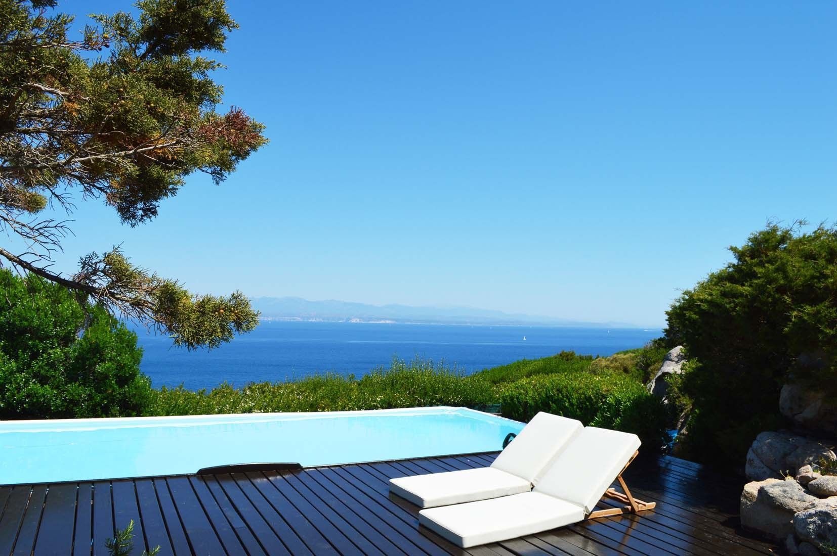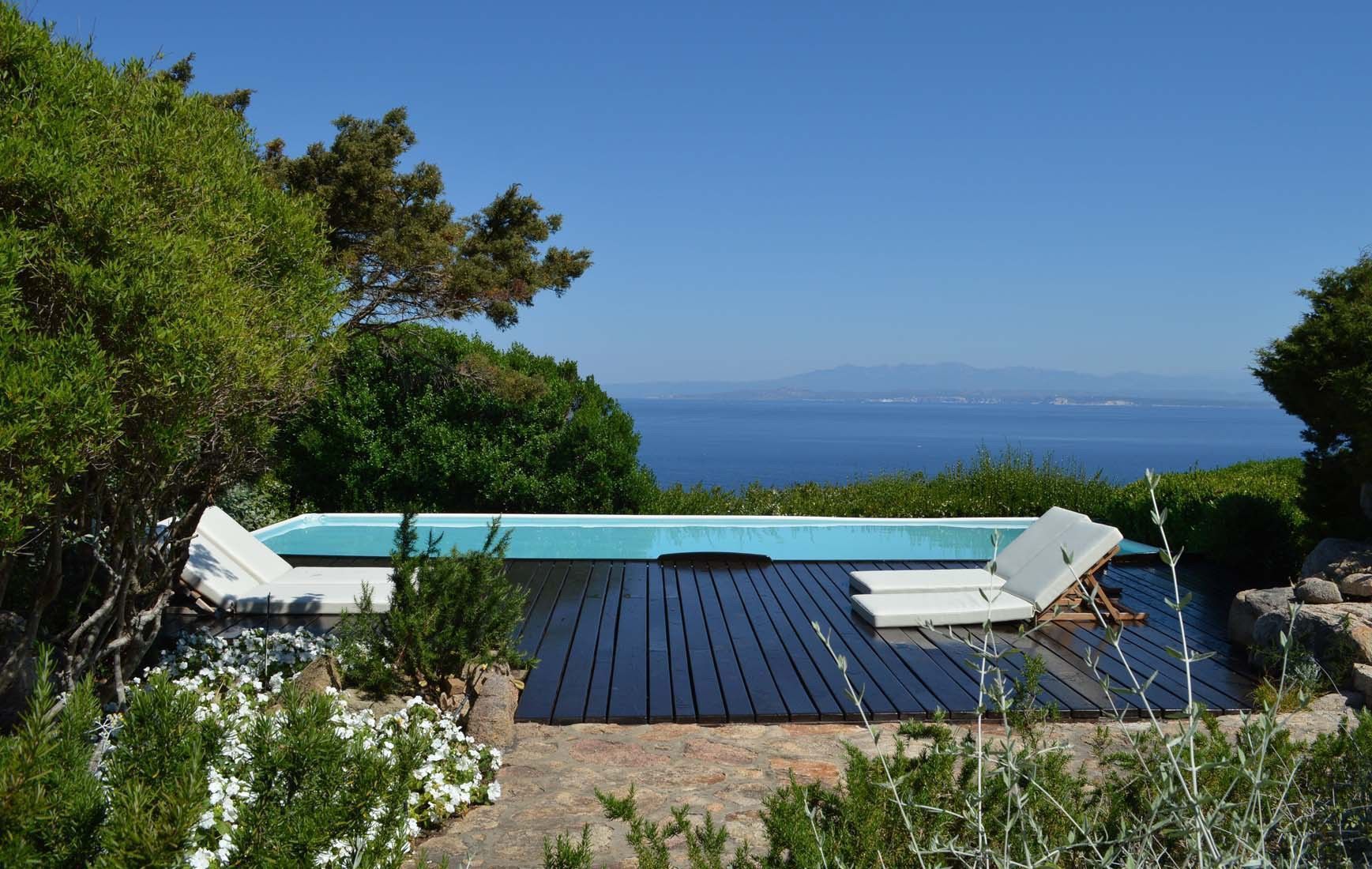 This beautiful mediterranean-style villa sits in an outstanding position, high on the rocks, and surrounded by “macchia mediterranea”, in northern Sardinia. It is a quiet and tranquil location, yet just 2 kms from Santa Teresa di Gallura with its yacht harbour. From the house and its garden there are breathtaking views of the Corsican “Bocche di Bonifacio”, the impressive white cliffs of Bonifacio, and the small islands just off Corsica. The villa is very well furnished and equipped with all modern comforts. A particular feature of the house is the lovely verandah to the front of the house, with outdoor dining area. The house has several entrances and is planned in such a way to be ideal for people holidaying together, requiring some independence and privacy. The lower ground floor is not of the same standard of the main part. This area is less crowded than the nearby famous Costa Smeralda, and is a good base for exploring the beautiful Sardinian coastline, and also for taking day trips to Corsica. For those looking for smart restaurants and lively nightlife, the Costa Smeralda and its resorts such as Porto Cervo and Porto Rotondo are within 30/50 minutes drive. A beautiful boat with skipper is available at extra cost.