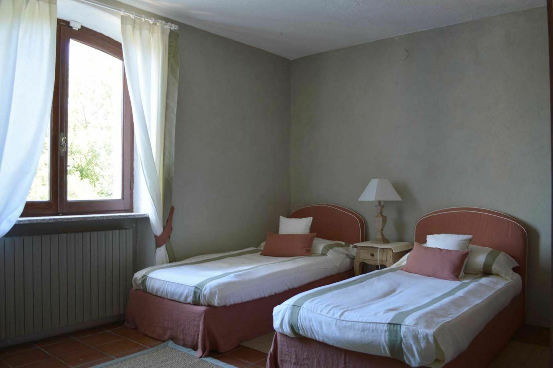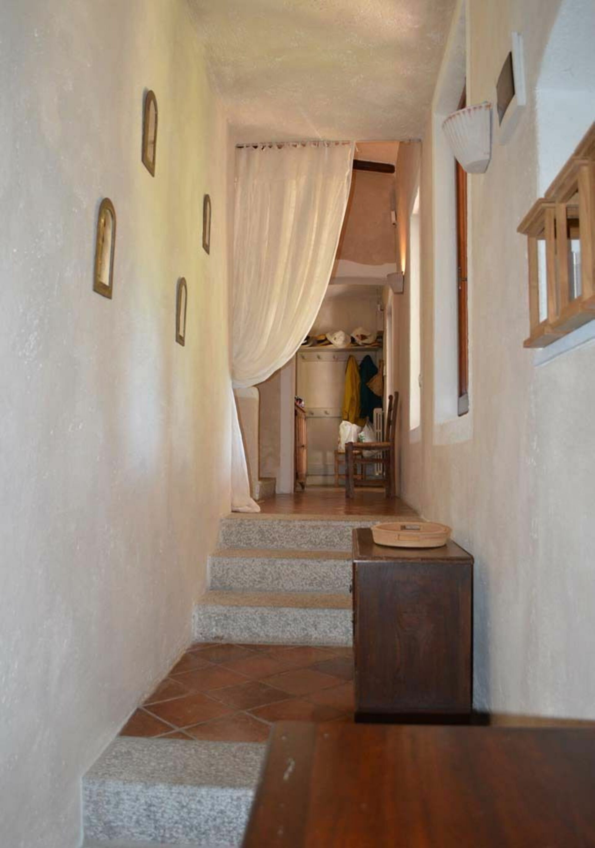Ground Floor: Entrance; sitting room with fireplace, opening onto a covered verandah with dining table and chairs, ideal for al fresco meals; kitchen opening onto the same verandah. Lower Ground Floor: Self contained apartment comprising: Double bedroom with independent access to the garden and en-suite bathroom (shower only). Sitting room opening onto a covered terrace, with kitchen corner and fireplace; double bedroom; bathroom. First Floor: Twin bedroom; bathroom with shower only; small twin bedroom ( in an alcove), suitable for children; bathroom; master bedroom with independent access, via stairs to the garden.