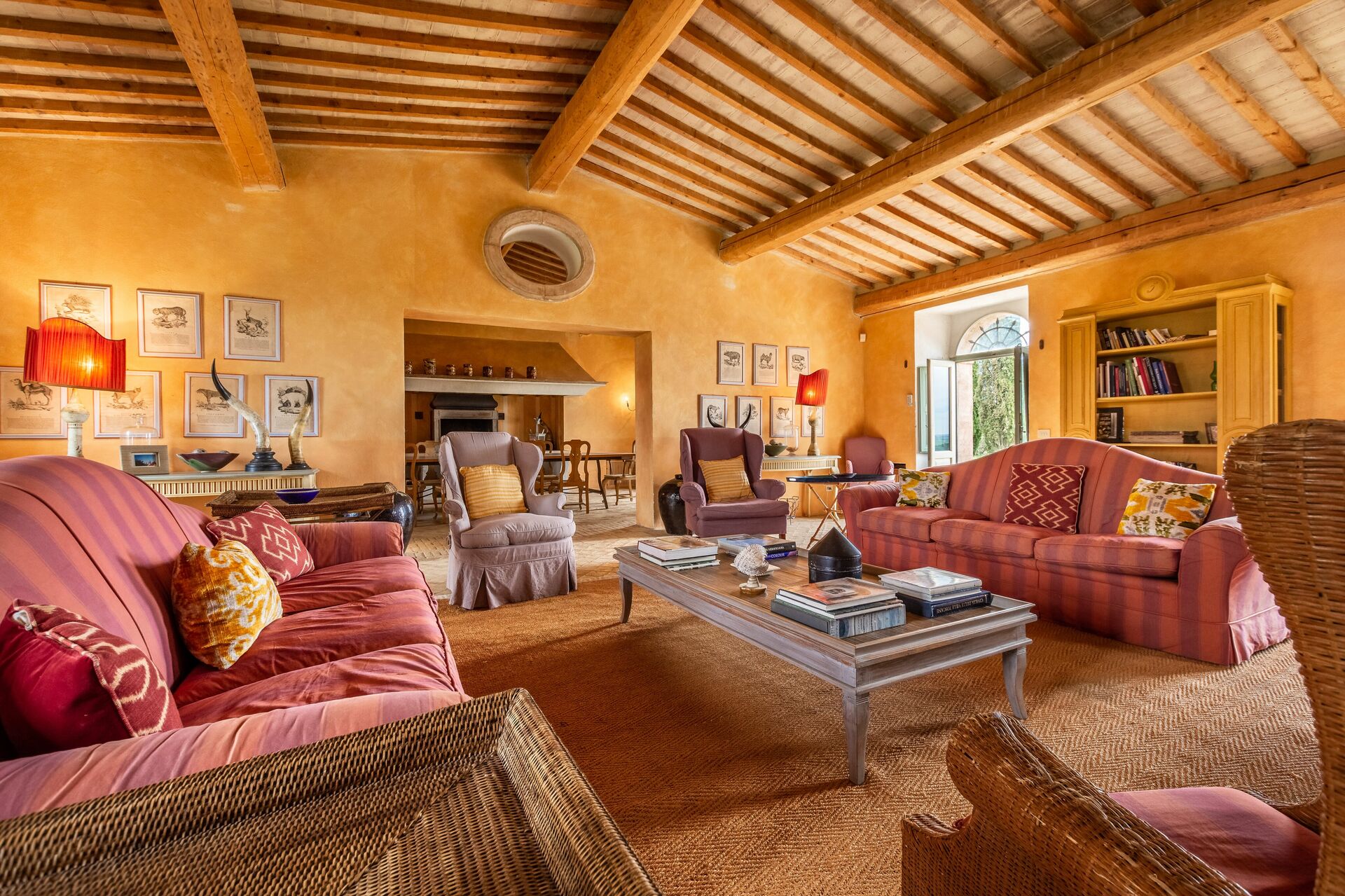 Soggiorno 1: due divani (persone: 6), quattro poltrone, caminetto, internet WIFI, televisione, vcr / dvd, stereo hifi, uscita sul giardino, uscita sul patio.