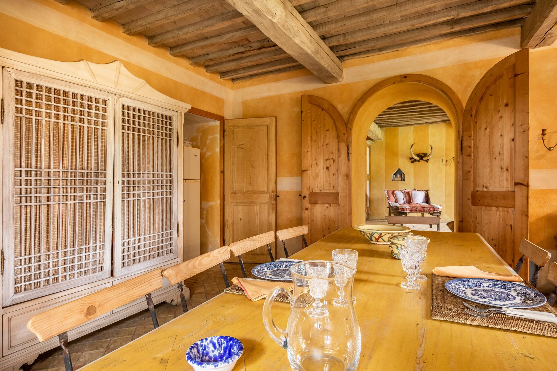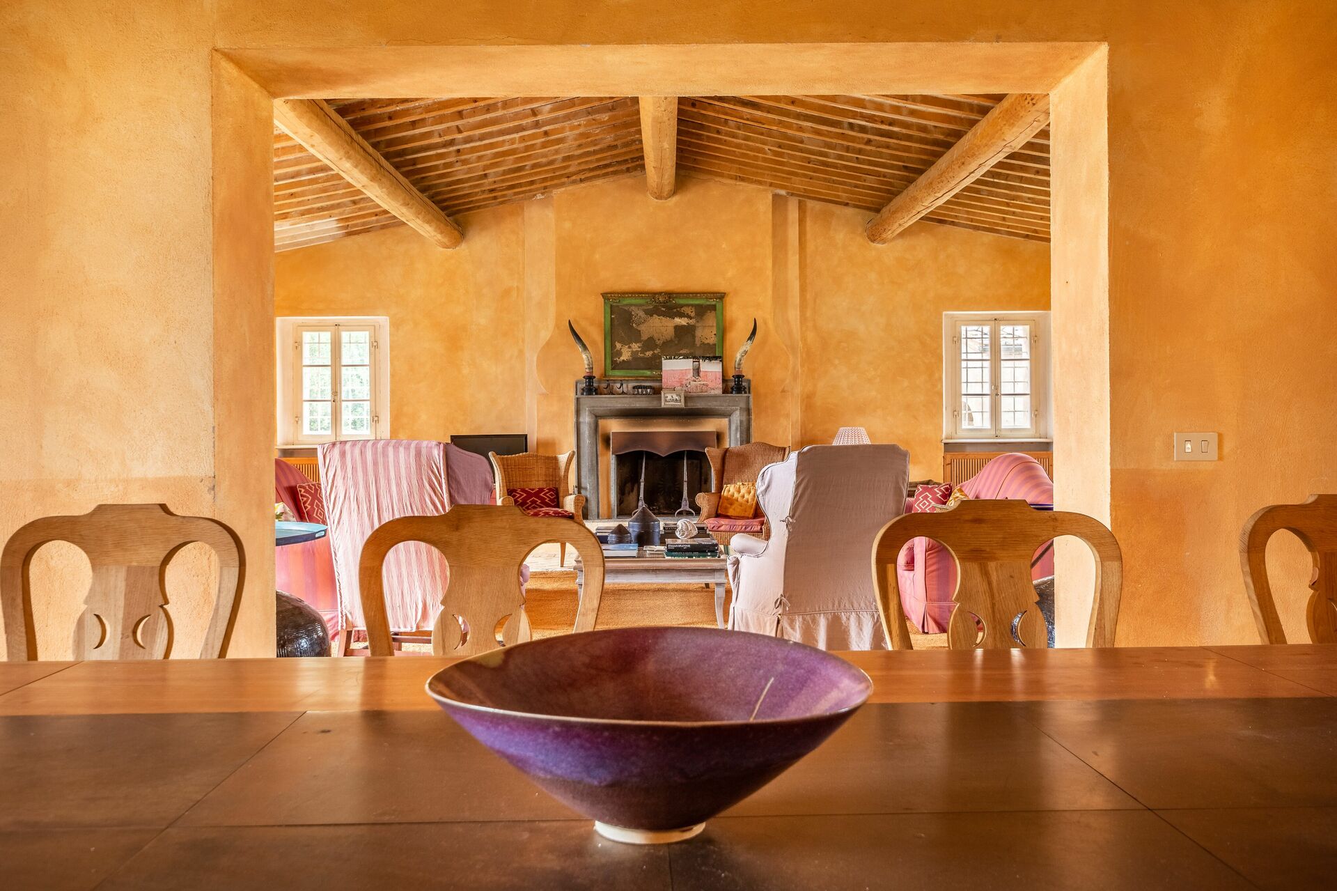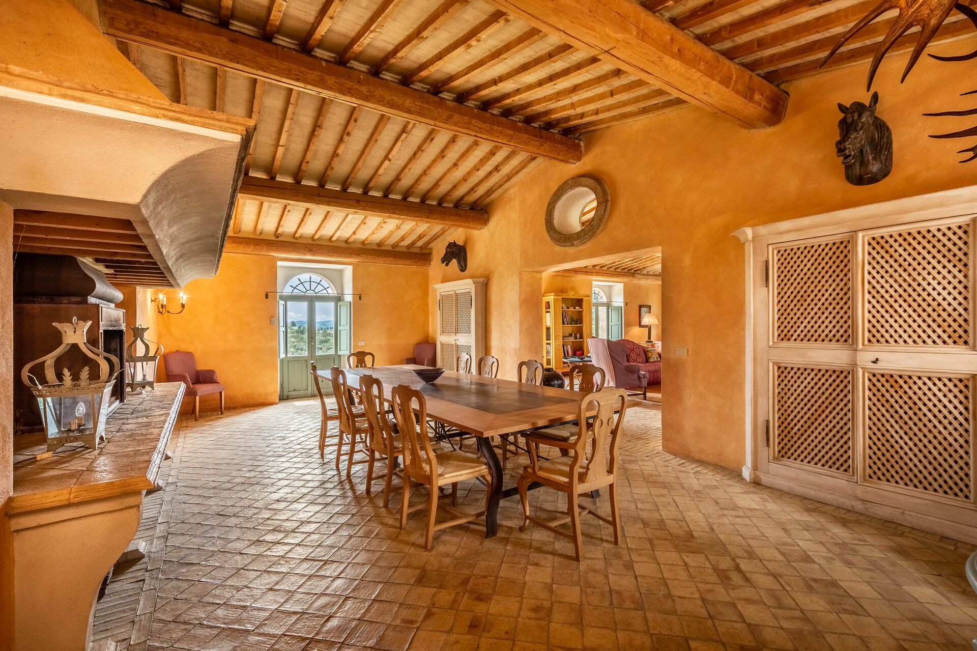 Sala da pranzo: tavolo da pranzo (persone: 16), internet WIFI, caminetto, uscita sul giardino, uscita sul patio.
