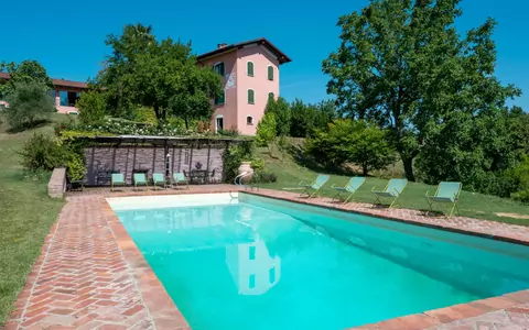 Incastonata tra vigneti e prati, "Bric del Vento" è una splendida casa di campagna indipendente che offre un'autentica esperienza di vacanza tranquilla e pittoresca a Soglio, in Italia. Estesa su una vasta proprietà privata recintata di 30.000 metri quadrati, questa affascinante dimora vanta un giardino ben curato con prati lussureggianti, un giardino naturalistico e una magnifica piscina (13 x 6 m, profondità 120 - 220 cm, disponibilità stagionale: 01.Mag. - 15.Nov.). Goditi la comodità di servizi in loco come doccia/WC nell'area piscina, doccia esterna, tavolo da ping-pong, campo da basket, pergolato, terrazza (20 metri quadrati) e abbondanti arredi da giardino. Inoltre, la proprietà offre Internet WiFi, parcheggio e un cortile, garantendo un soggiorno confortevole e conveniente.