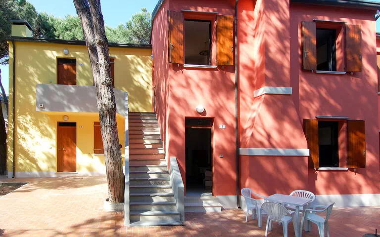La casa vacanze sorge all'interno di una proprietà recintata circondata da alberi ad alto fusto, che creano un'atmosfera di tranquillità e riservatezza. Gli spazi comuni esterni sono arredati con mobili da giardino.