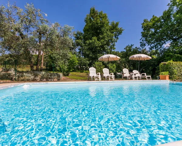 Gli spazi esterni della casa vacanze sono caratterizzati da un orto naturale e da un prato circostante che offrono un'ambientazione lussureggiante e riservata, con alberi maturi che forniscono ombra e isolamento. La piscina fuori terra misura 8 x 4 metri ed è disponibile dal 15 maggio al 1° ottobre. Un tavolo da ping pong è a disposizione degli ospiti per attività ricreative durante il soggiorno.