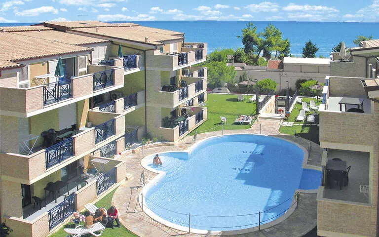 Residenza "Green Bay Village", adatta ai bambini, piacevole su 3 piani. 4 case nel residence. 100 appartamenti nel residence. A 1.5 km dal centro di Pineto, in periferia, a 30 km dal centro di Pescara, a 20 km dal centro di Città San Angelo, in un quartiere, a 300 m dal mare, a 300 m dalla spiaggia, strada da attraversare. In comune: prato per sdraiarsi, piscina a forma di faggiolo recintata (10 x 5 m, disponibilità stagionale: 01.Giu.-15.Set.) con scaletta. Terrazza. Nel complesso: lavatrice (in comune, extra). Parcheggio (numero posti limitato, extra) nella proprietà, parcheggio pubblico sulla strada. Negozio 1 km, stazione ferroviaria "Pineto" 1.5 km, spiaggia sabbiosa 300 m. Prego notare: animazione in alta stagione. Adatto alle famiglie. Strada principale 300 m dalla casa. Linea ferroviaria 300 m dalla casa. Tra il 25.04. e il 30.09. 2 lettini e 1 ombrellone sono inclusi in uno degli stabilimenti balneari pubblici.