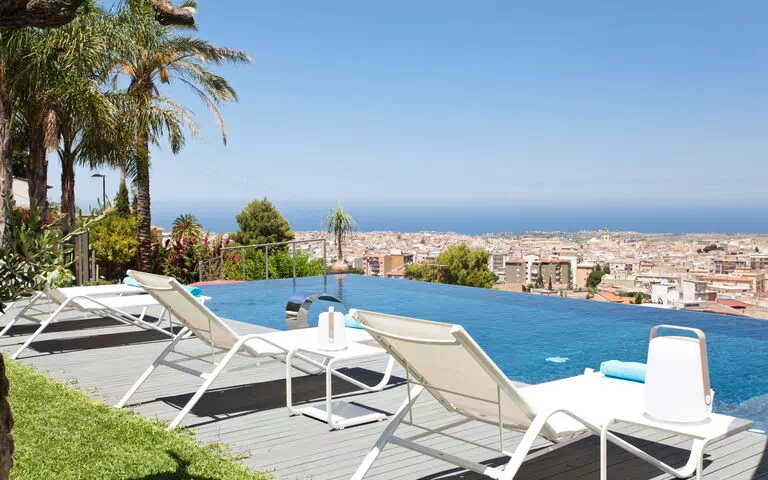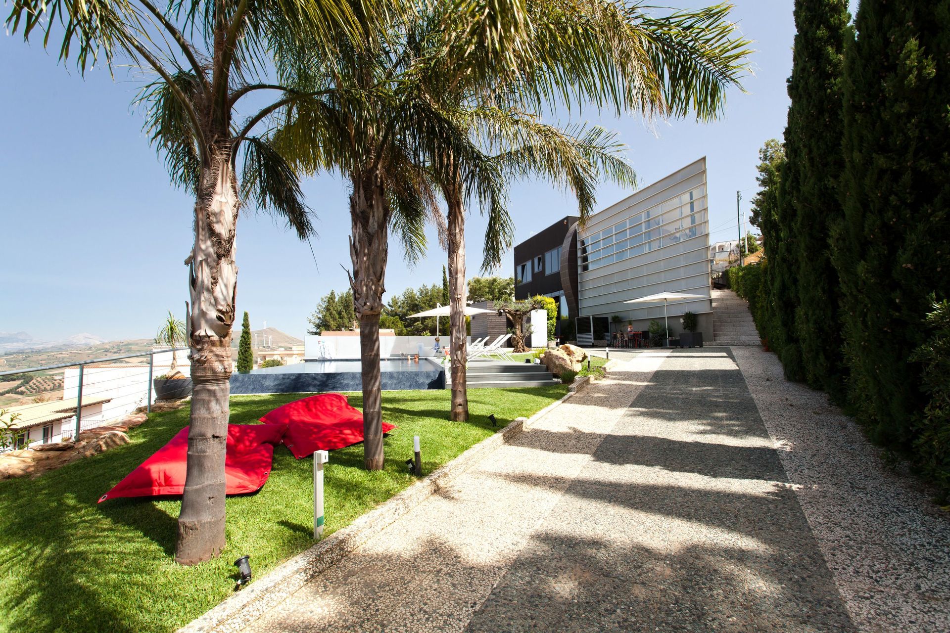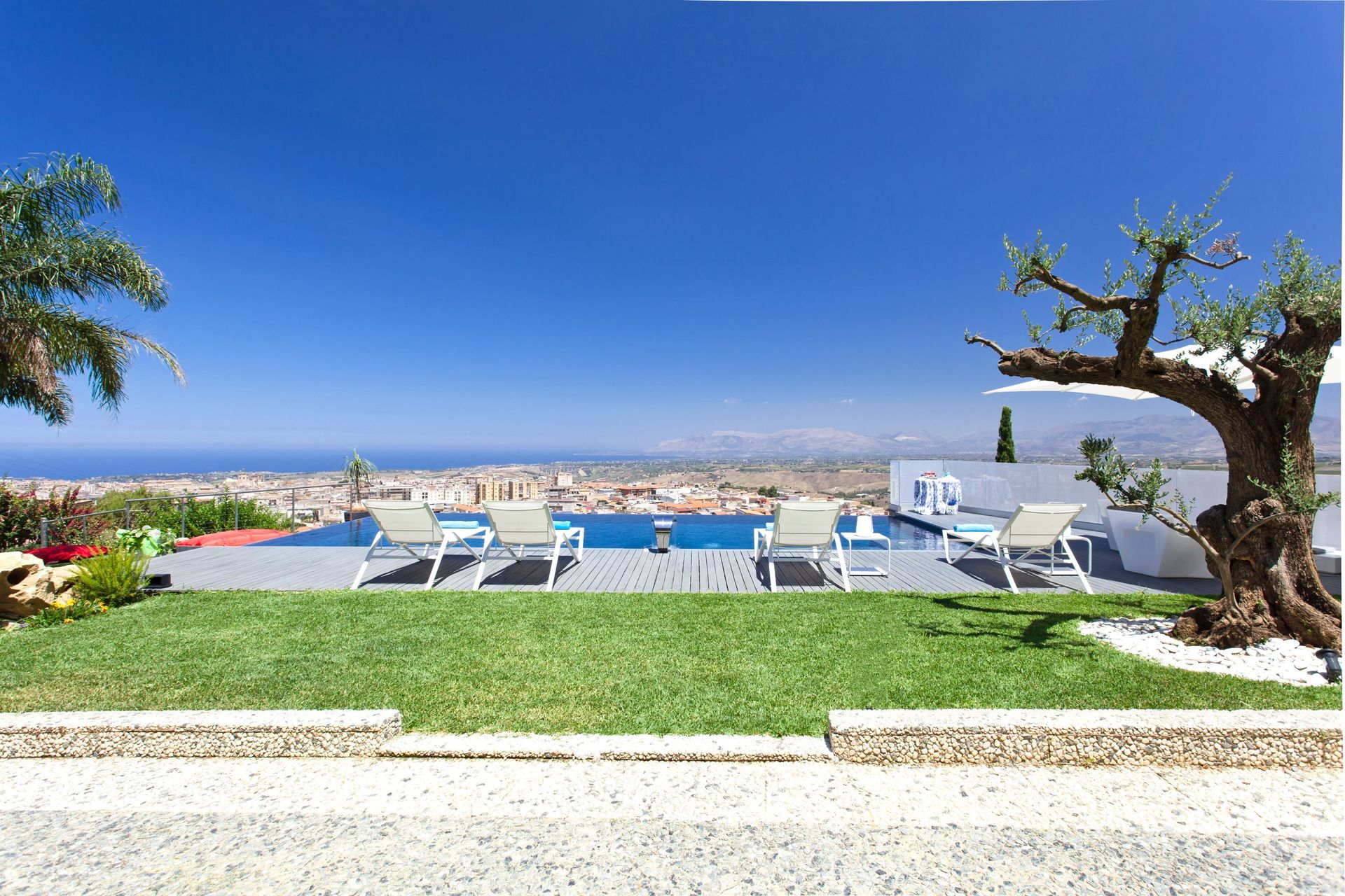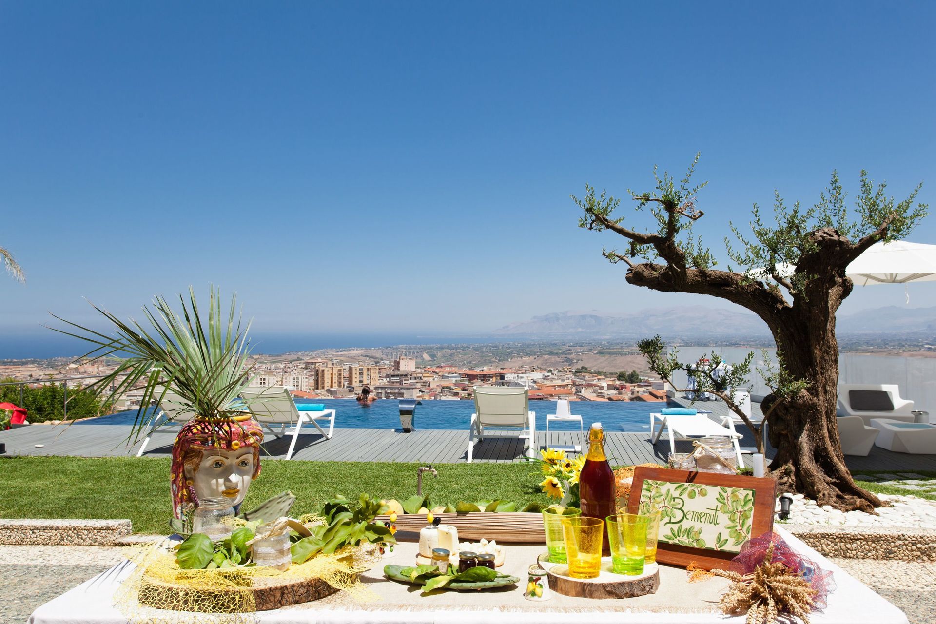 Villa con piscina privata e vista panoramica sul paese di Alcamo e sul mare della Sicilia.