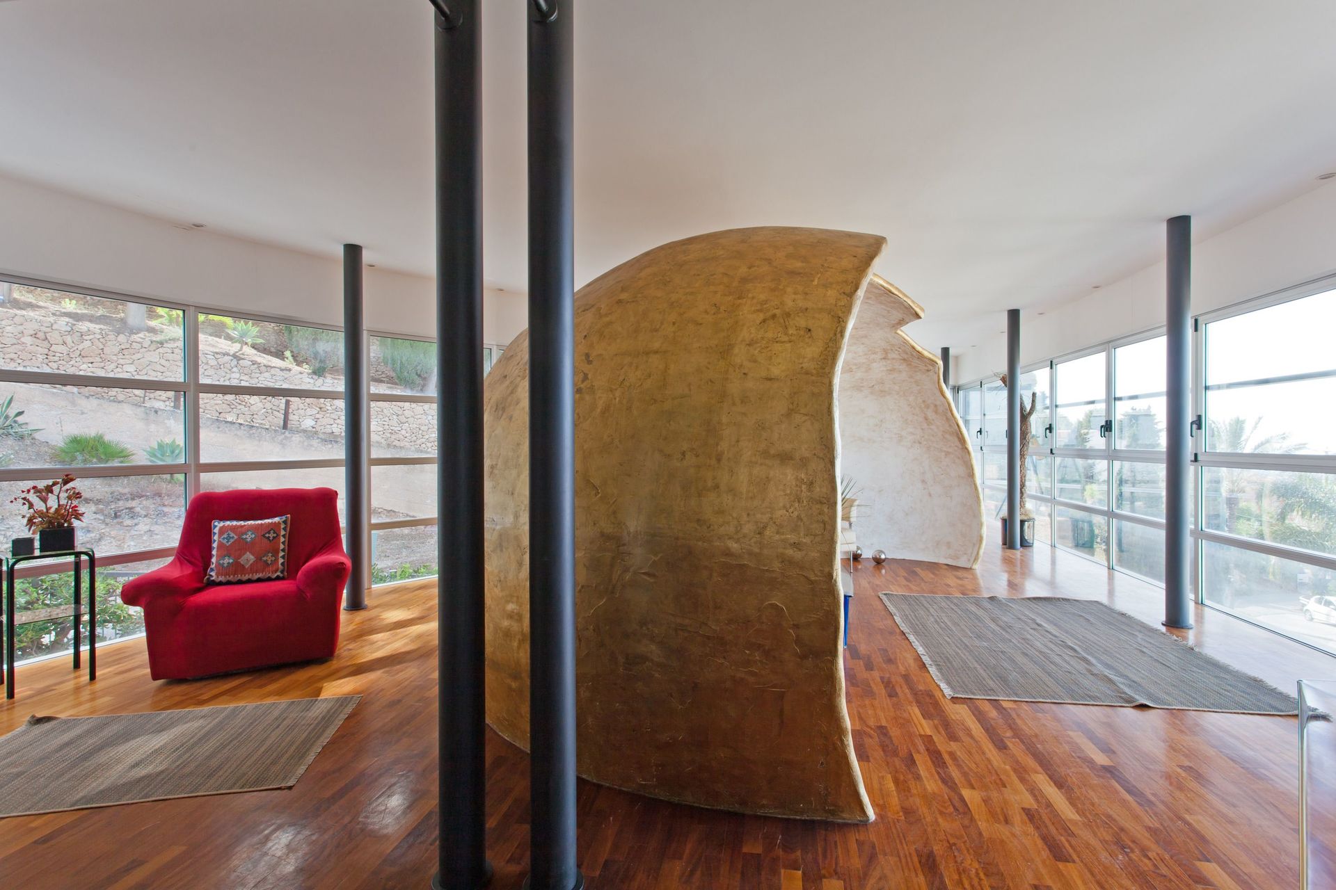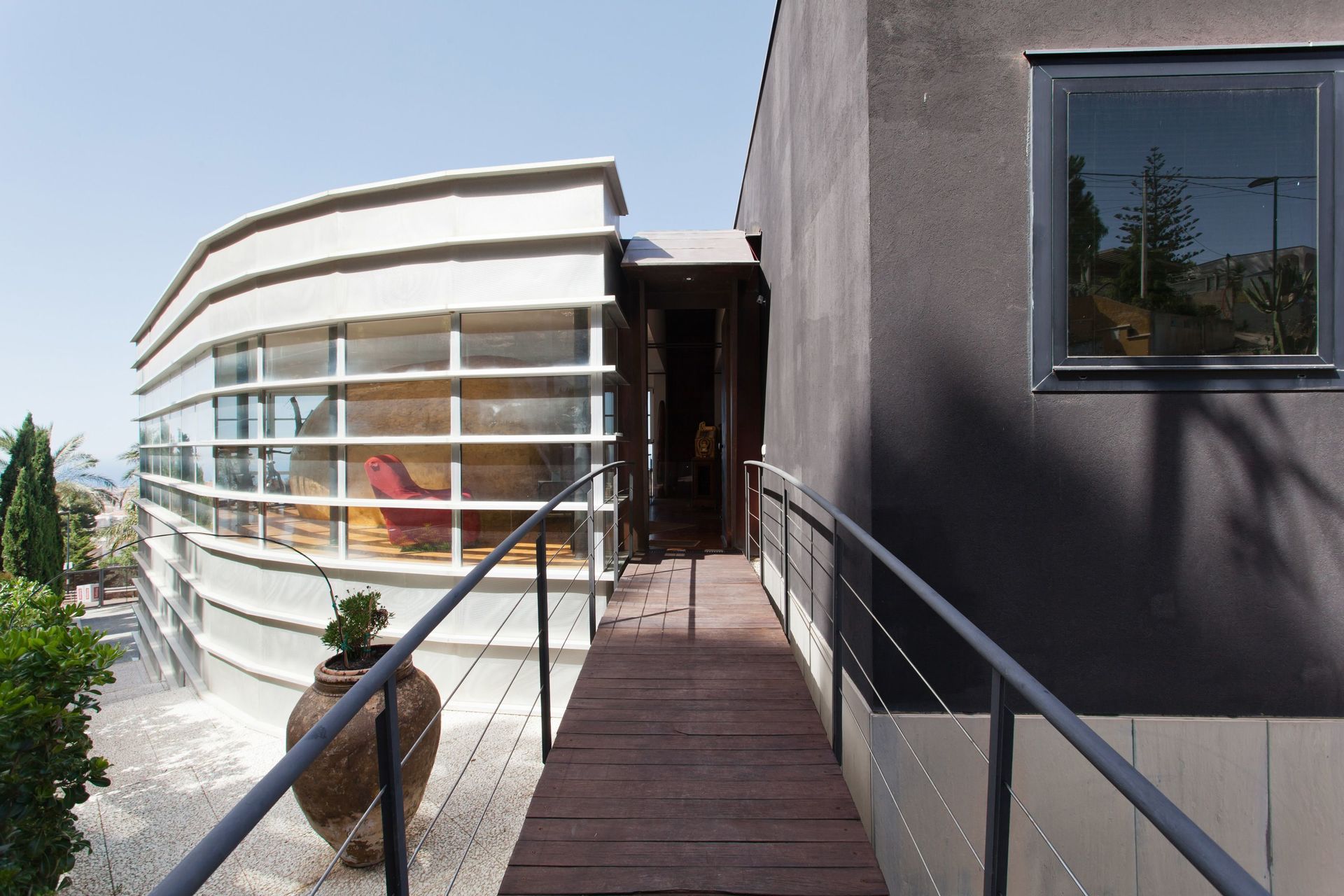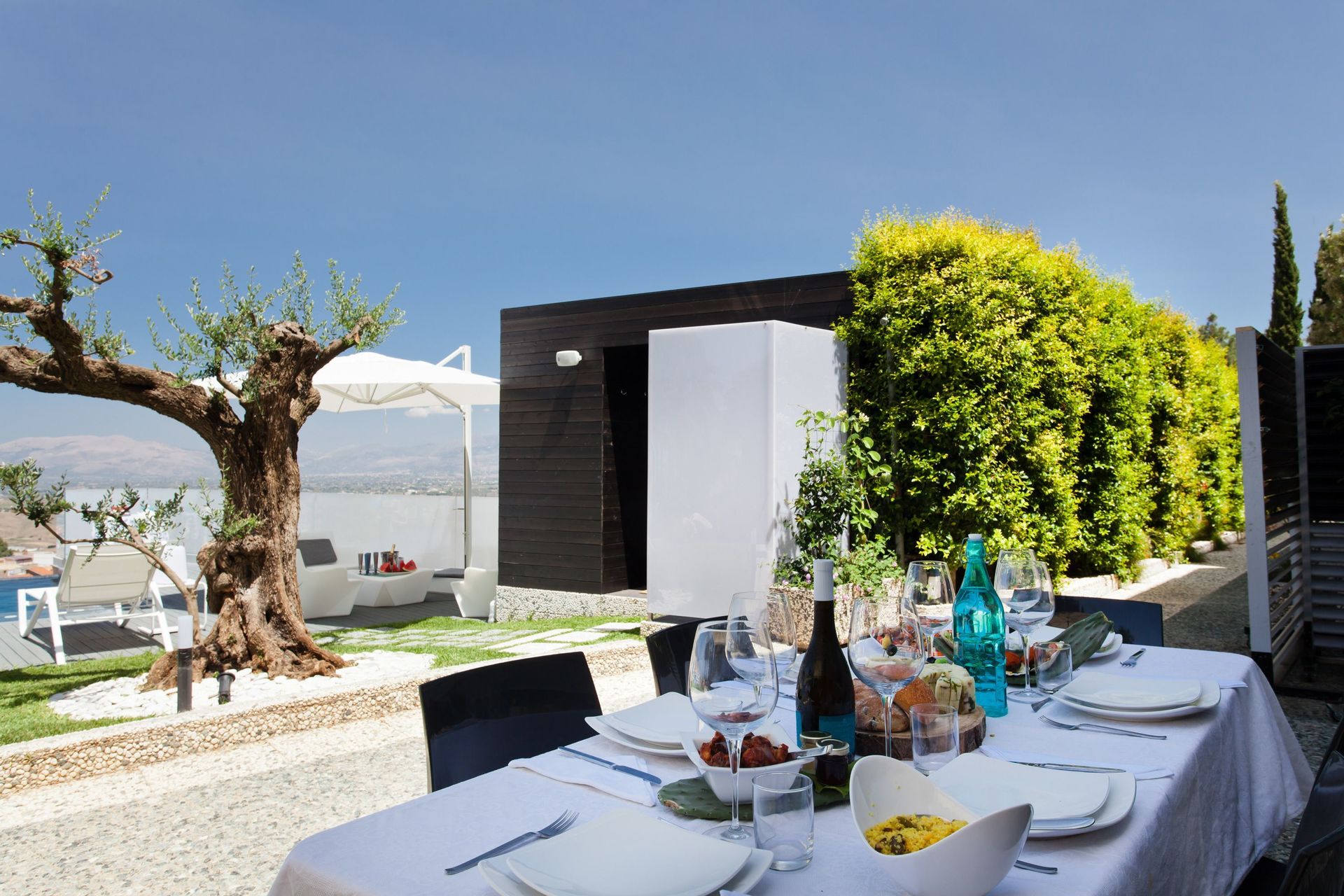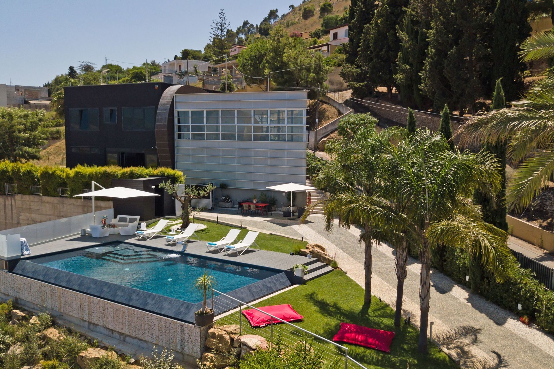 Questa bella villa è stata progettata da un architetto italiano di fama internazionale, Gianni Ranaulo, ed è di sicuro una della case più particolari che potrete trovare per il suo stile inconfondibile, il suo arredamento in stile moderno e la nuovissima piscina a sfioro su Alcamo. Al suo interno si possono ospitare fino a 14 persone. Ampie vetrate offrono una costante vista sul mare. All'esterno è presente la piscina con idromassaggio e cascata d'acqua, oltre a uno spogliatoio con bagno e doccia.
