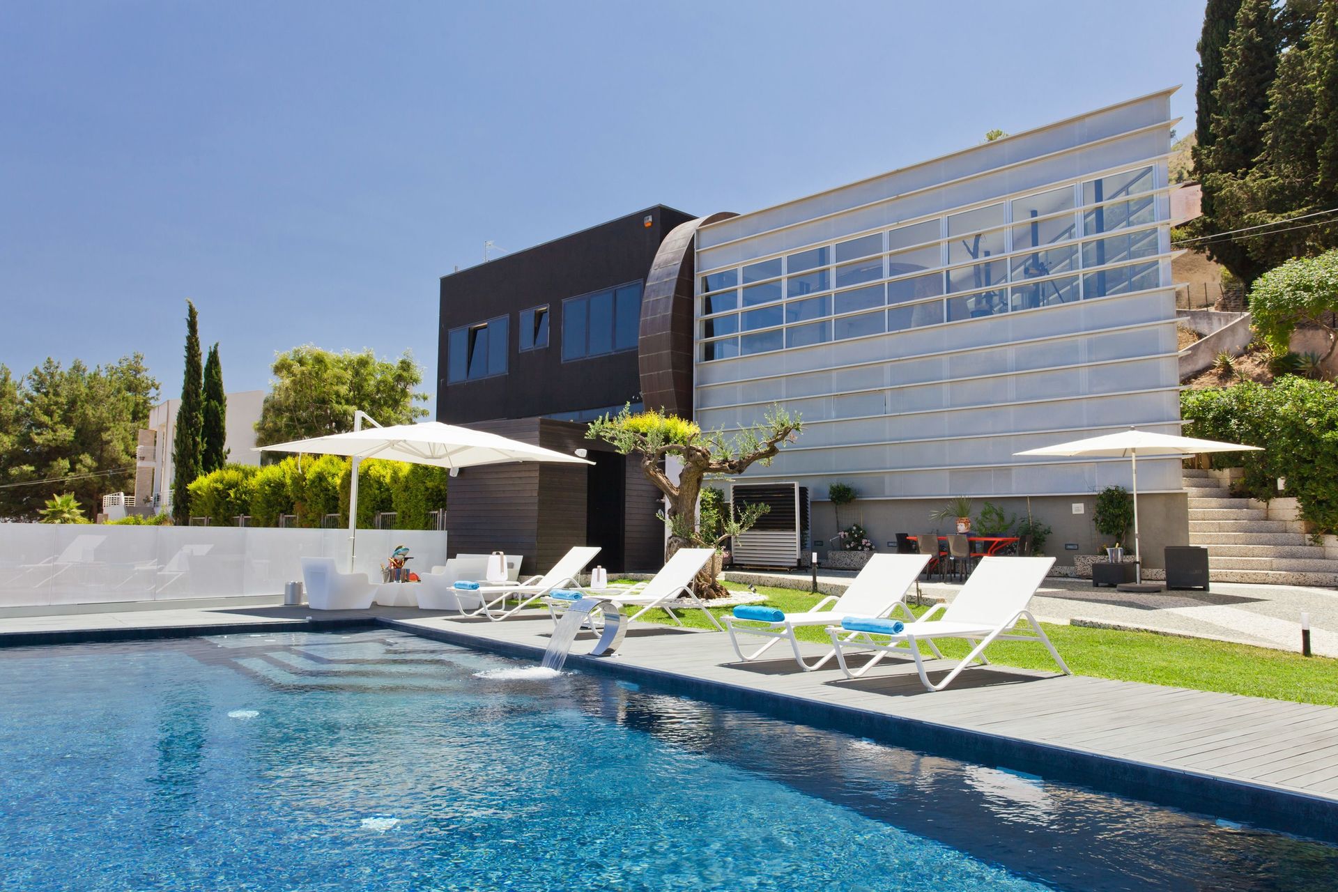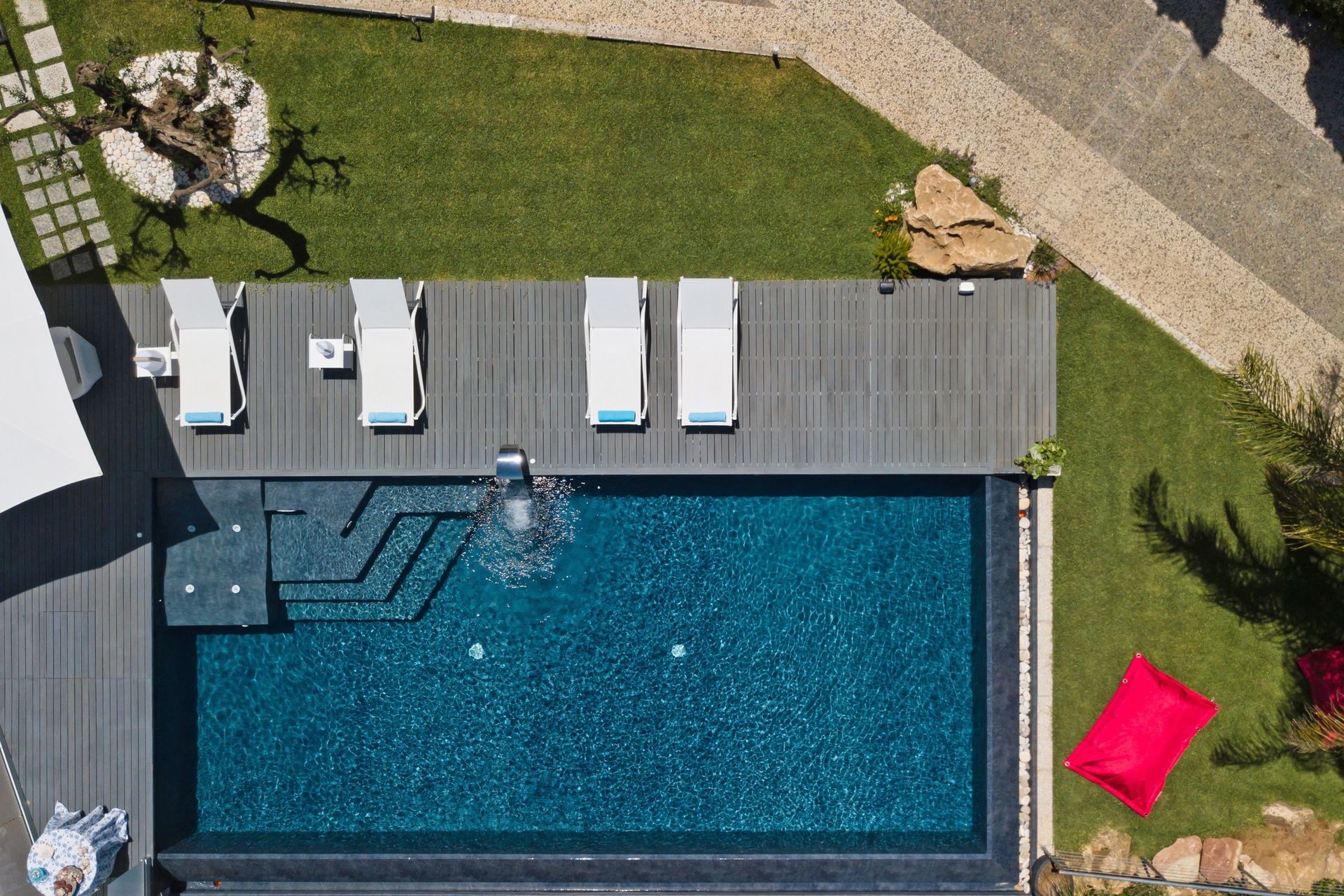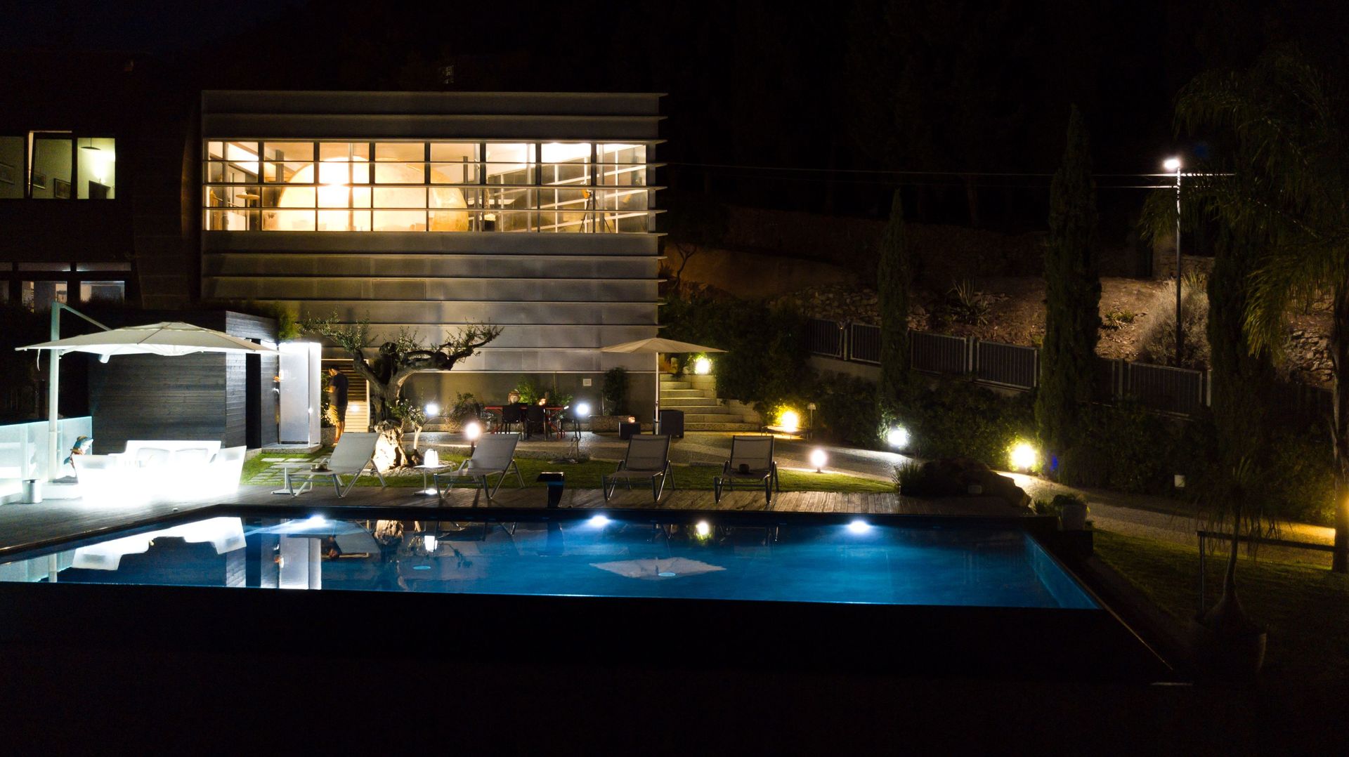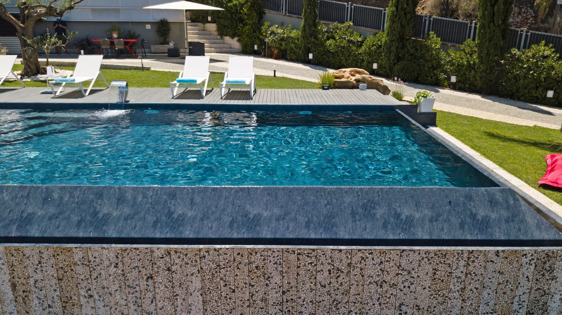 A disposizione degli ospiti: giardino ben curato e recintato, piscina panoramica con bordo a sfioro (11 x 5 metri; profondità massima: 1,40 metri), zona idromassaggio e cascata d'acqua, parcheggio nella proprietà (recintata), spazio esterno attrezzato con barbecue e tavolo con sedie per mangiare all'aperto, tavolo da calcio balilla.