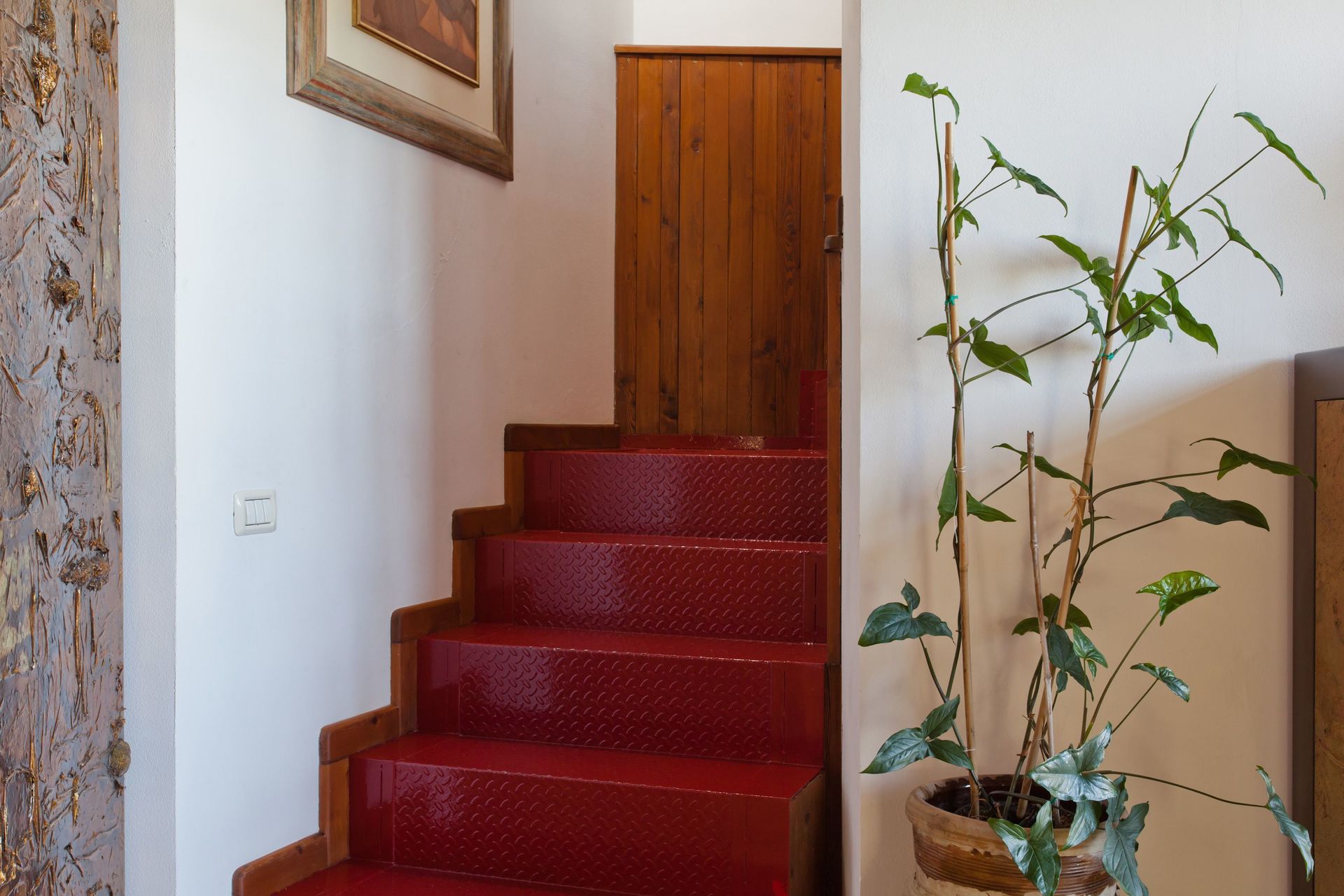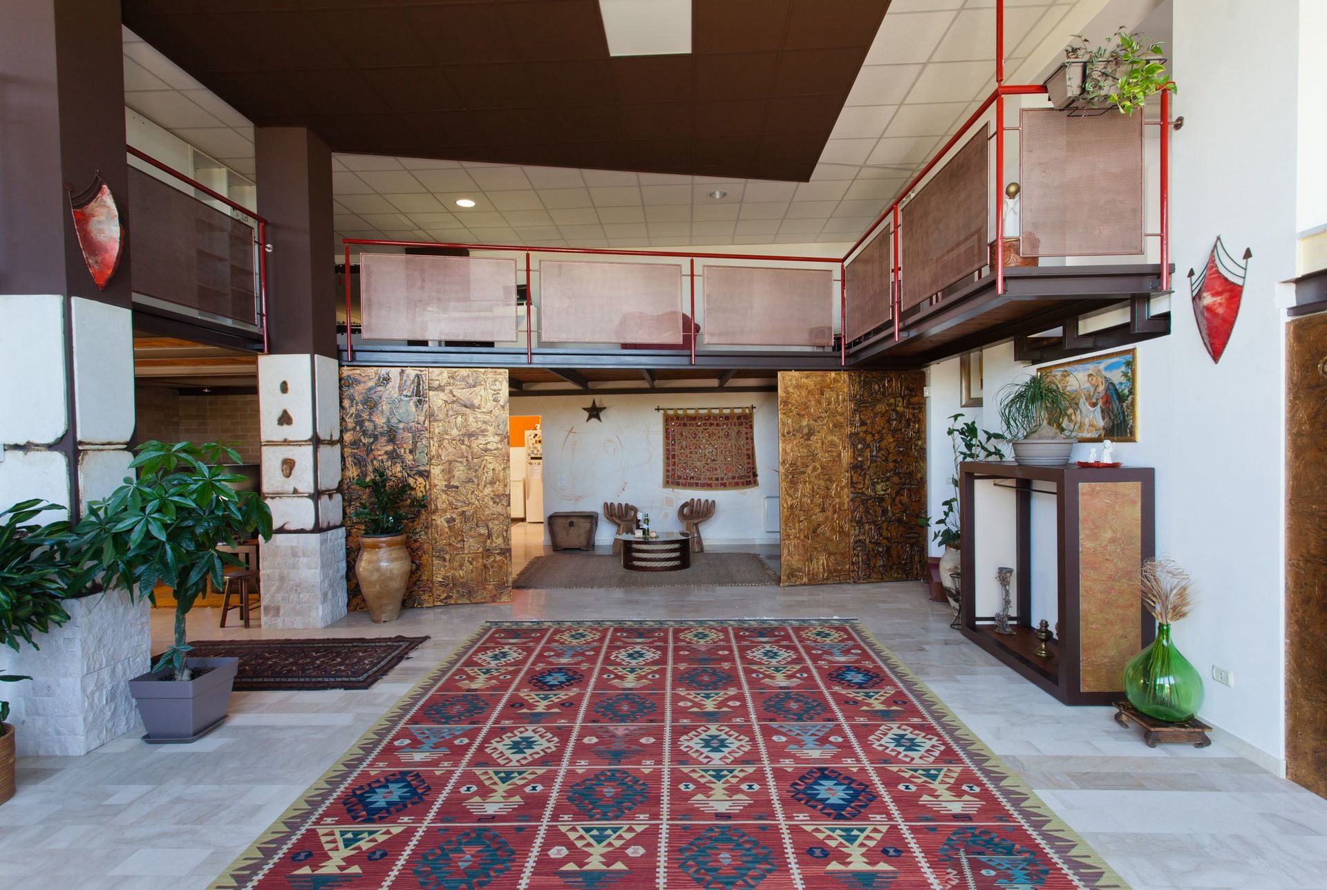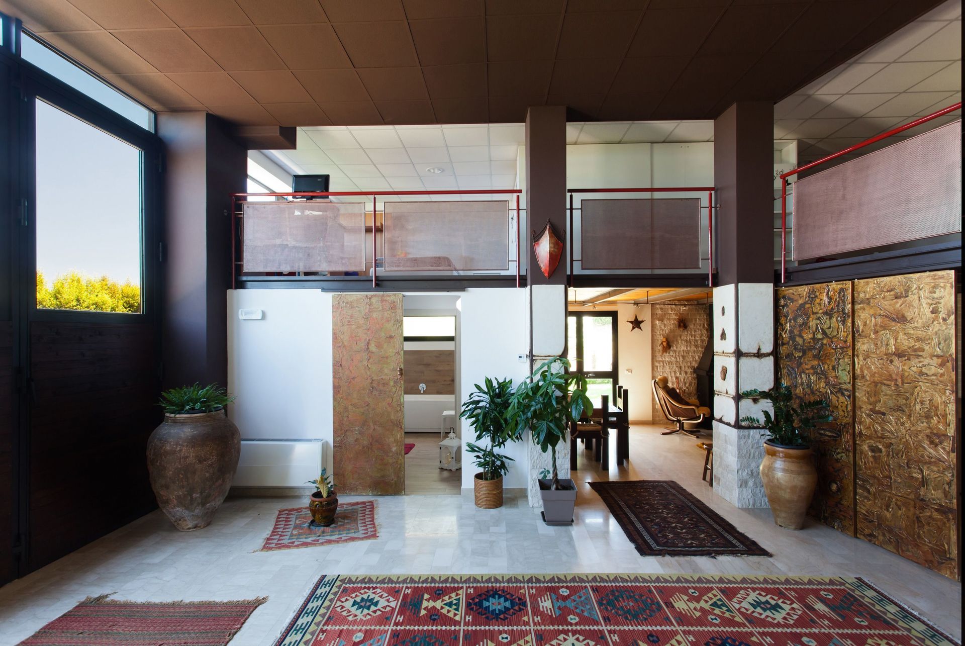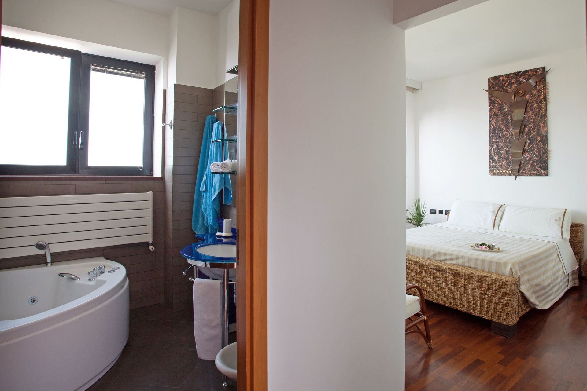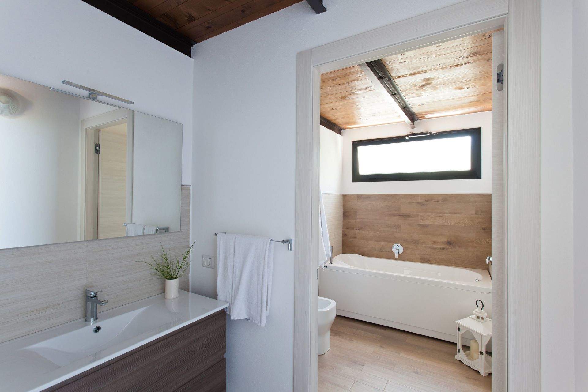 Soppalco (aperto sulla zona sottostante e dotato di 2 split per l'aria condizionata): letto matrimoniale e letto alla francese (divisi da un separè costituito da armadiature), bagno con doccia.