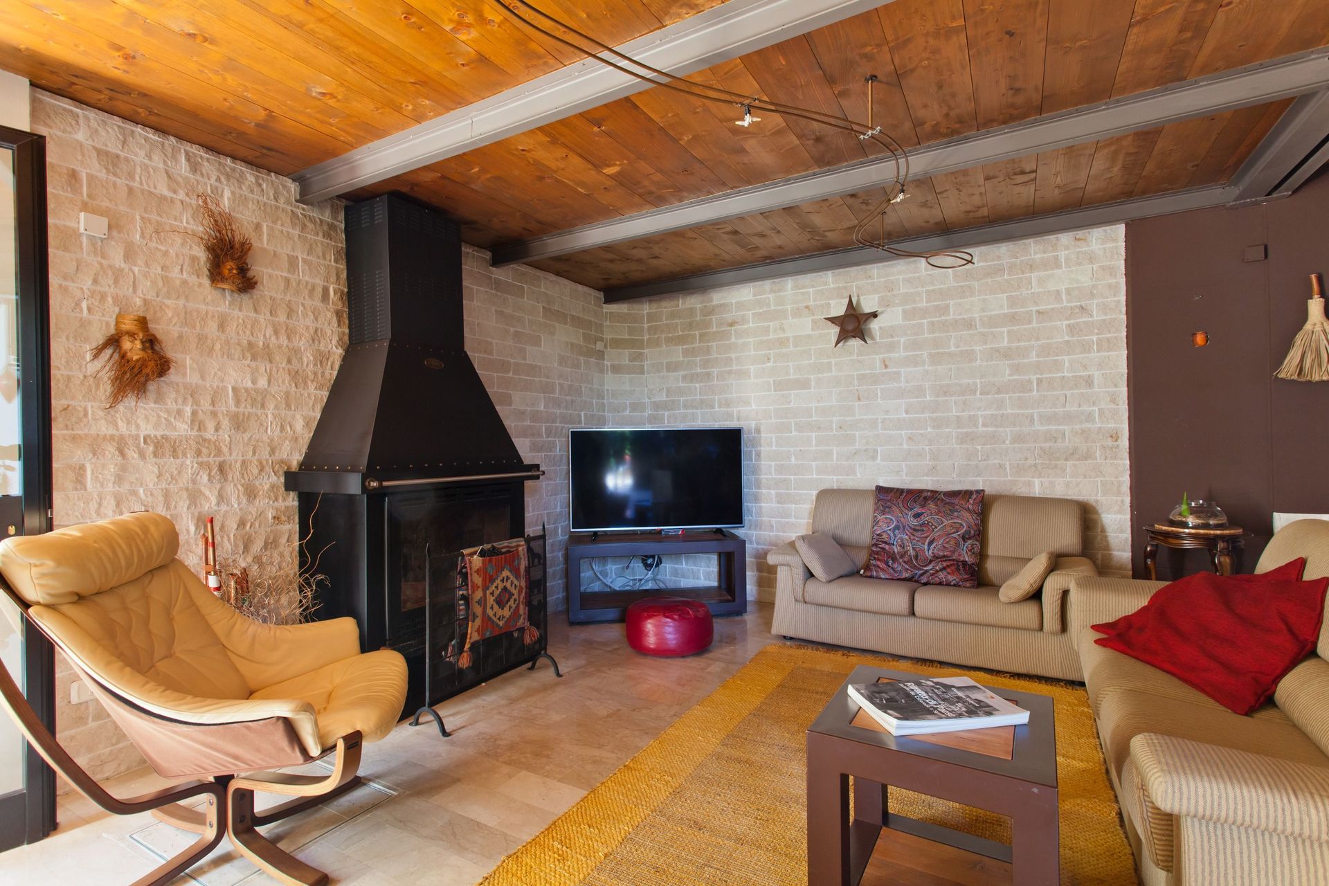 Piano terreno: ingresso su ampia zona giorno composta da soggiorno (TV e camino) con tavolo da pranzo, bagno con vasca, camera matrimoniale con bagno privato con doccia, cucina (forno, freezer) con accesso sull'esterno su un'area attrezzata con barbecue e tavolo con sedie.