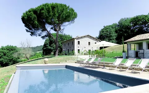Casa di campagna "Casale Sfarina", rustica, confortevole, circondata da campi. A 3 km dal centro di Castiglione in Teverina, posizione isolata sul pendio, immerso nel verde. Per uso privato: terreno 2'000 m2 (recintato), giardino con prato e alberi, prato per sdraiarsi, piscina (10 x 5 m, disponibilità stagionale: 16.Mag. - 26.Set.). WC nell'area piscina, doccia/wc nell'area piscina, pool-house, tennis da tavolo, mobili da giardino, barbecue, pulizia piscina da parte del proprietario/giardiniere. Accesso 300 m di strada sterrata (strada non asfaltata). Parcheggio nella proprietà. Negozio alimentare 3 km, supermercato 3 km, ristorante 3 km, stazione ferroviaria "Orvieto Scalo" 12 km, lago balneabile "Bolsena" 23 km. Attrazioni nelle vicinanze: Civita Di Bagnoregio 12 km, Orvieto 14 km, Bolsena 20 km, Montefiascone 25 km, Viterbo 35 km, Pitigliano 45 km. Prego notare: auto consigliata. Il proprietario non accetta gruppi di giovani. L'acqua del rubinetto non è potabile.