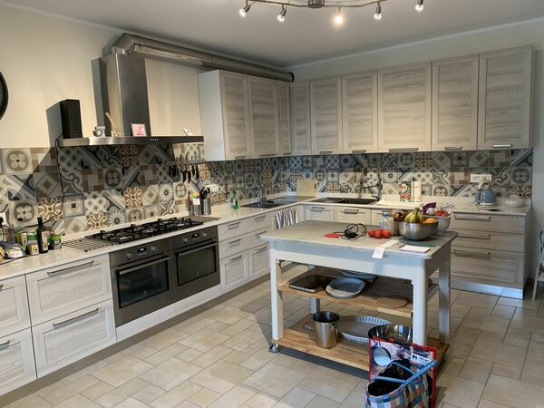 Soggiornerai in una confortevole e arredata con gusto casa di 10 stanze su tre livelli, con un'area totale di 400 metri quadrati. Al piano terra troverai un soggiorno/sala da pranzo con camino aperto, un tavolo da pranzo, una TV e un impianto hi-fi. La cucina open space è attrezzata con forno, lavastoviglie, sei fuochi a gas, tostapane, bollitore, congelatore e macchina elettrica per il caffè. Puoi accedere direttamente alla terrazza dalla cucina. Inoltre, a questo livello c'è una doccia/WC.
