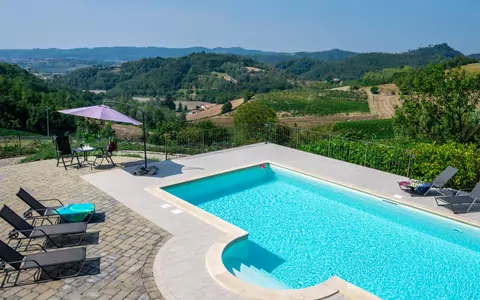 "Chiara", una casa vacanza molto confortevole a Ponzano Monferrato, Italia, offre un'esperienza di vacanza deliziosa. Situata a 385 metri sul livello del mare, questa proprietà indipendente è circondata da prati e campi pittoreschi. Vanta un giardino ben curato con fauna selvatica e alberi, un cortile e una piscina stagionale (10 x 5 metri, profondità 150 cm, disponibile dal 12 aprile all'8 novembre) con copertura a saracinesca. Goditi servizi come una doccia esterna, mobili da giardino e parcheggio presso la casa. La proprietà copre un'area di 2.000 metri quadrati ed è recintata per la privacy.