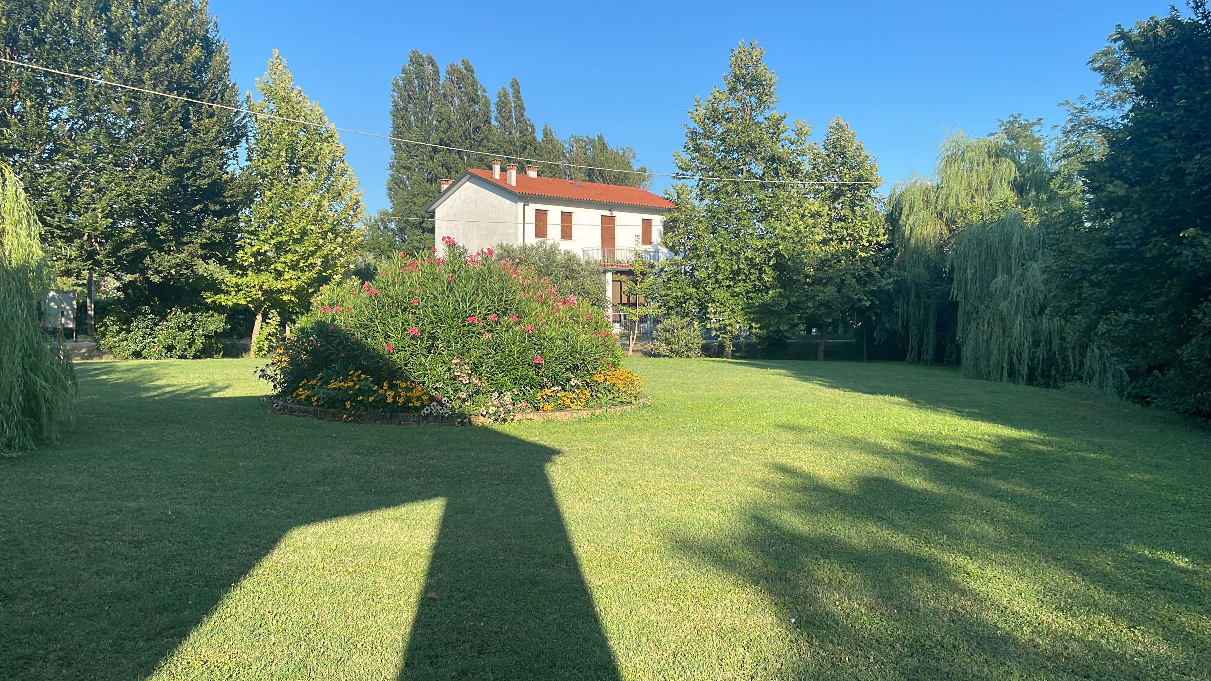 La villa "Cà Riviera Bosco Piccolo" sorge tra alberi e prati aperti nella campagna veneta, a 15 km dal centro storico di Venezia e a 7 km da Mira, in posizione tranquilla e soleggiata a soli 50 metri da un canale. Costruita nel 2019, la proprietà dispone di un ampio giardino privato di 5.000 metri quadri con prato e alberi maturi. Gli ospiti hanno accesso a una piscina in comune di 14 x 7 metri, disponibile dal 15 maggio al 15 settembre.
