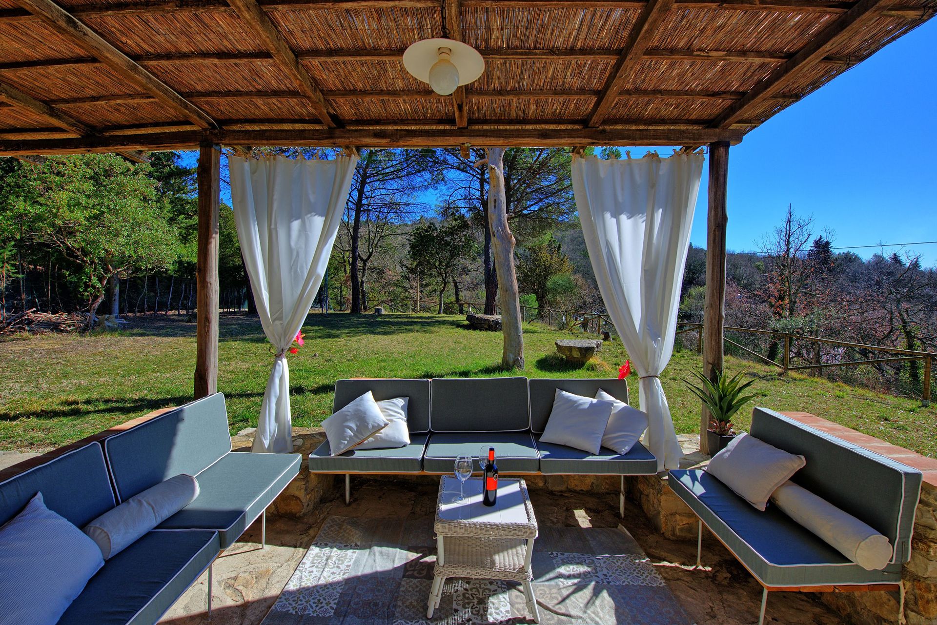 La casa offre due camere da letto (con aria condizionata) oltre ad un'ampia zona esterna attrezzata, perfetta per organizzare grigliate e godere della meravigliosa vista panoramica sulle colline circostanti! Nel giardino vi è una bella piscina privata che permette agli ospiti di rilassarsi e rinfrescarsi nella stagione estiva.