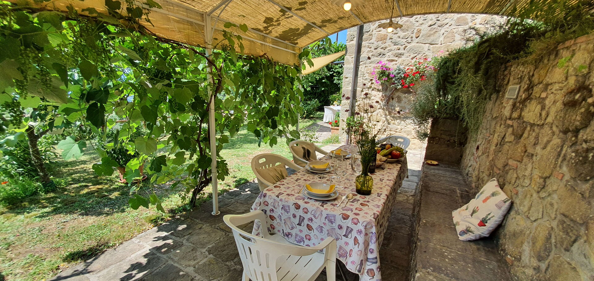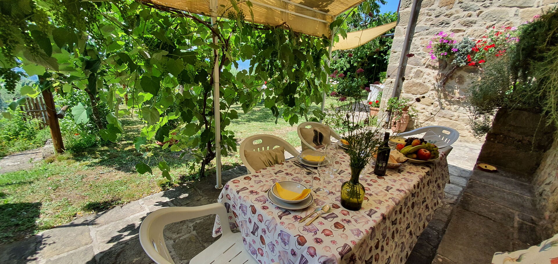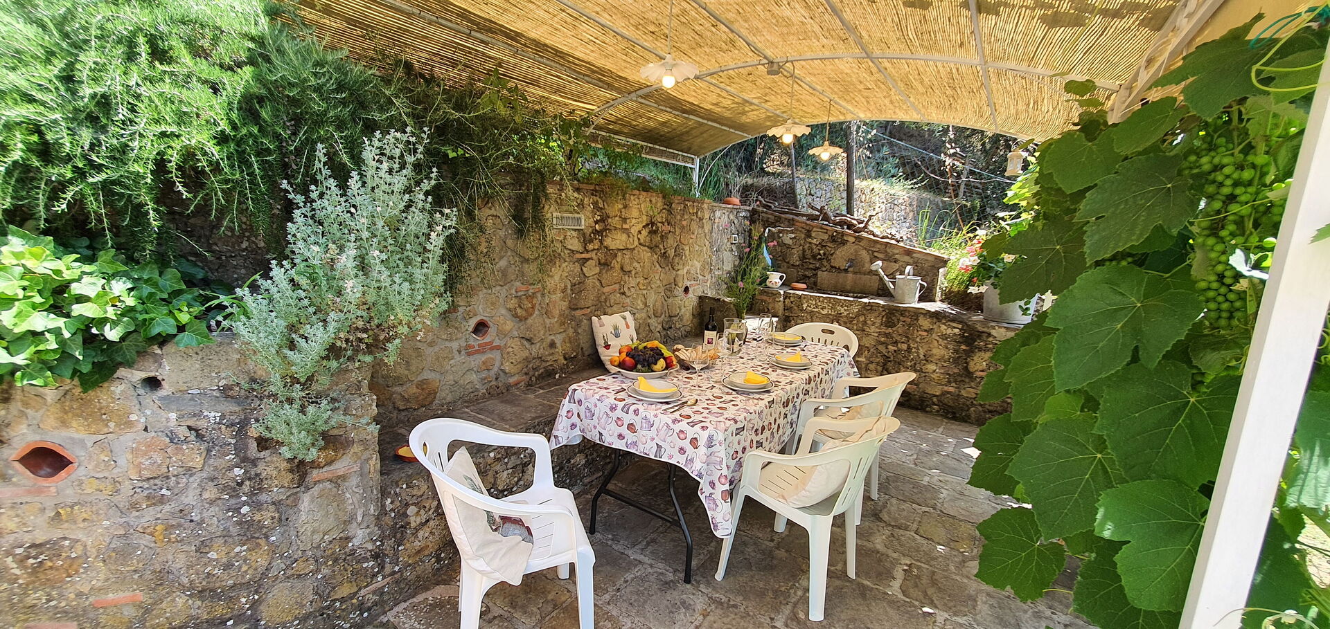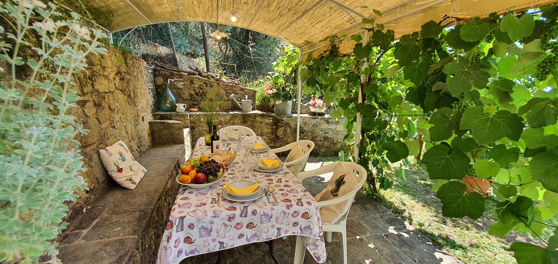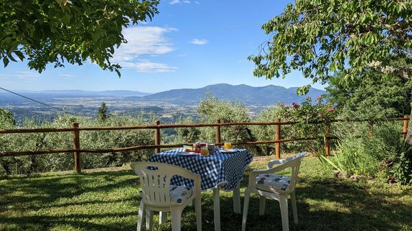 All'arrivo troverai una bellissima casa vacanze pulita e in ottime condizioni con vista sulle montagne e sulle colline, perfetta per una tranquilla vacanza in Toscana. A prescindere da come trascorrerai le tue giornate - imbarcandoti in gite fuori porta, visitando i più famosi musei della zona, facendo shopping o semplicemente guidando nell'entroterra, quando arriverai a casa la sera avrai la possibilità di rilassarti con famiglia e amici concludendo in bellezza un altro fantastico giorno di vacanza in Toscana. Pranzare o cenare in compagnia di famiglia e amici è un grosso aspetto della cultura toscana. Approfitta della cucina per preparare pasti utilizzando prodotti locali freschi e genuini mentre ti trovi in vacanza. La cucina è provvista di macchinetta del caffè, microonde, tostapane, fornelli e frigorifero, così come un numero sufficiente di stoviglie e posate per un massimo di quattro persone. Pranza o cena all'aperto, il giardino completamente accessoriato è la cornice perfetta per godersi del buon cibo, la compagnia della propria famiglia o gruppo di amici e il bellissimo clima toscano.