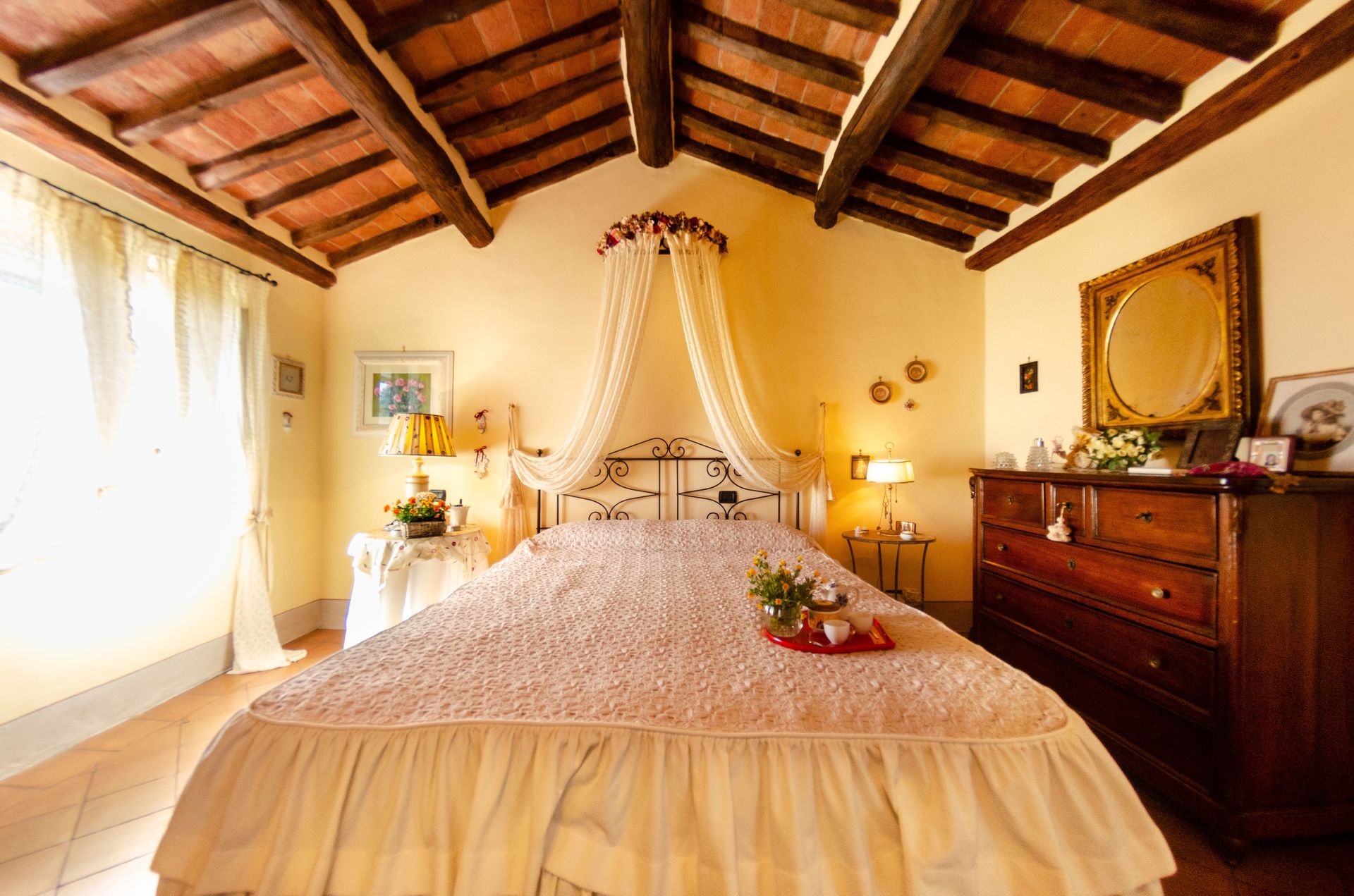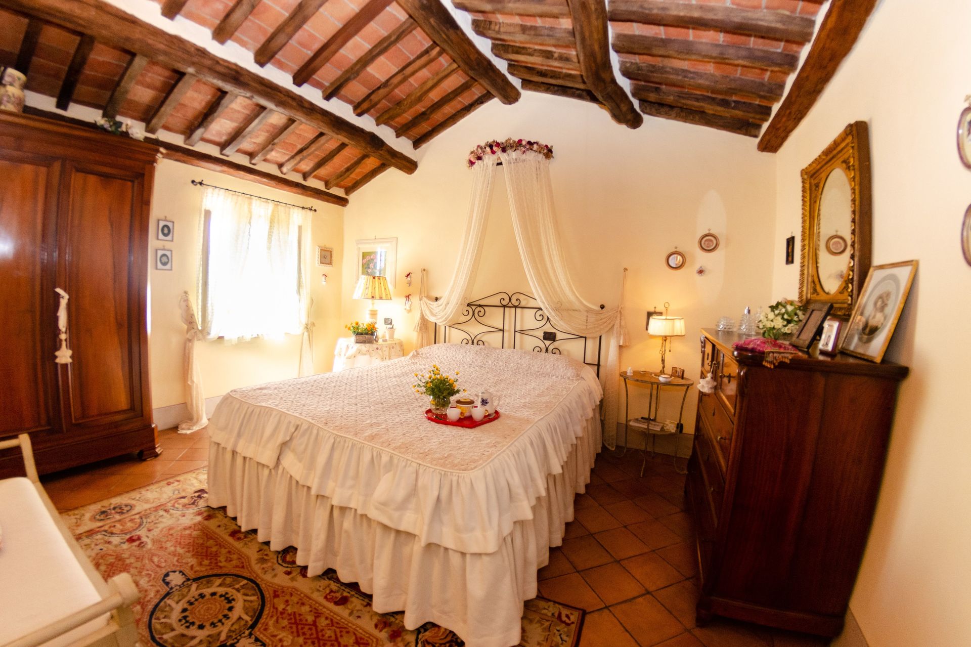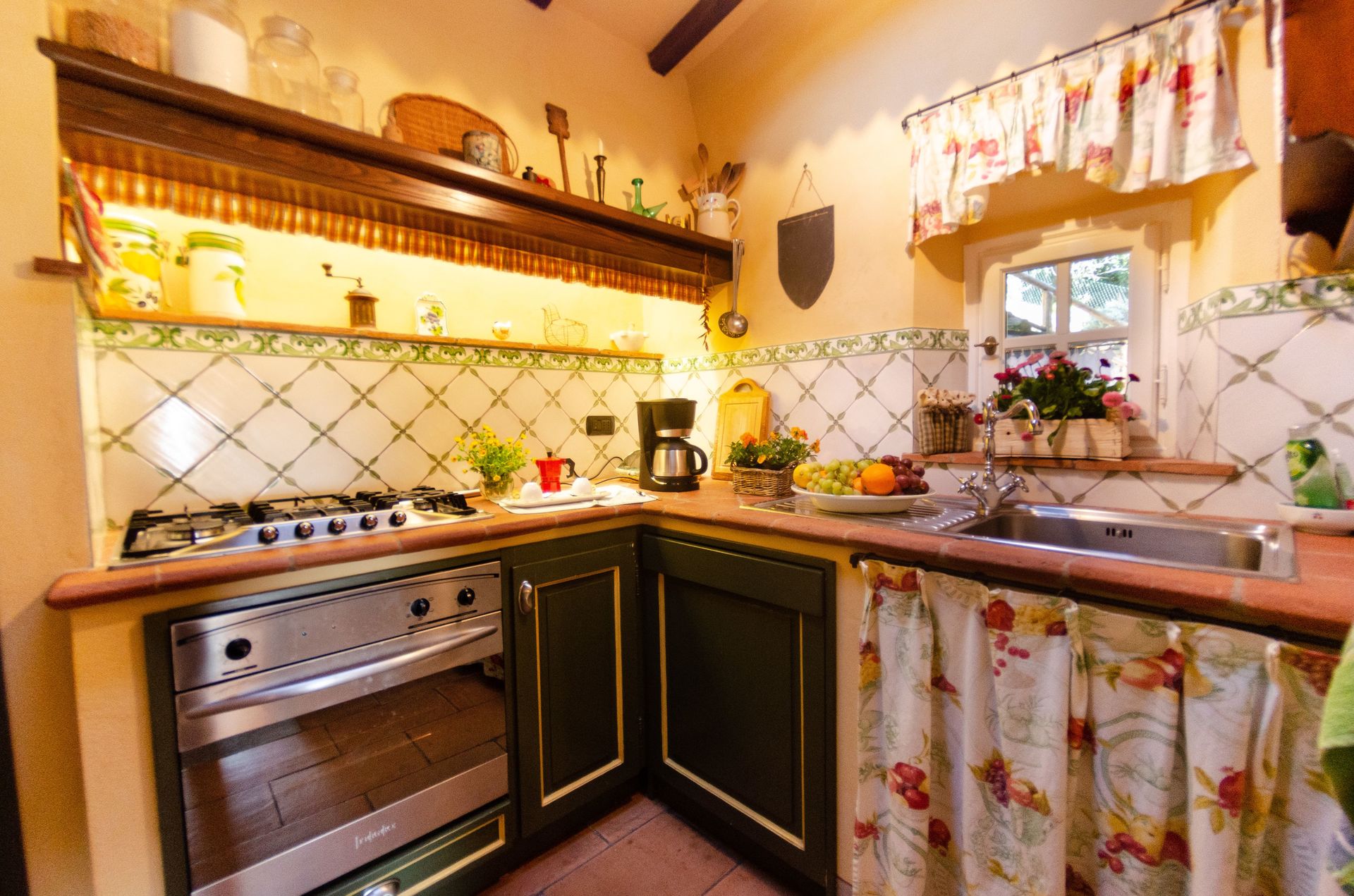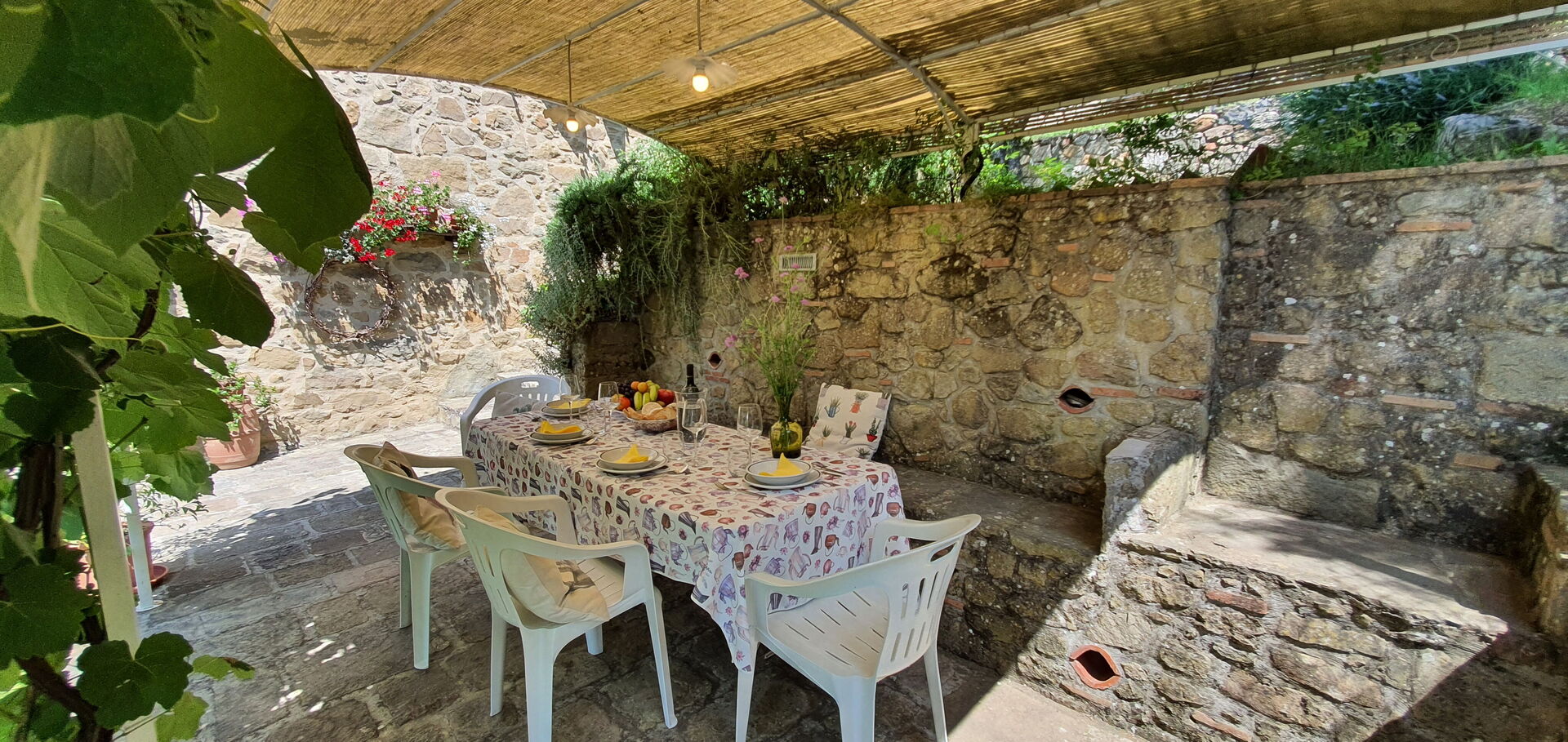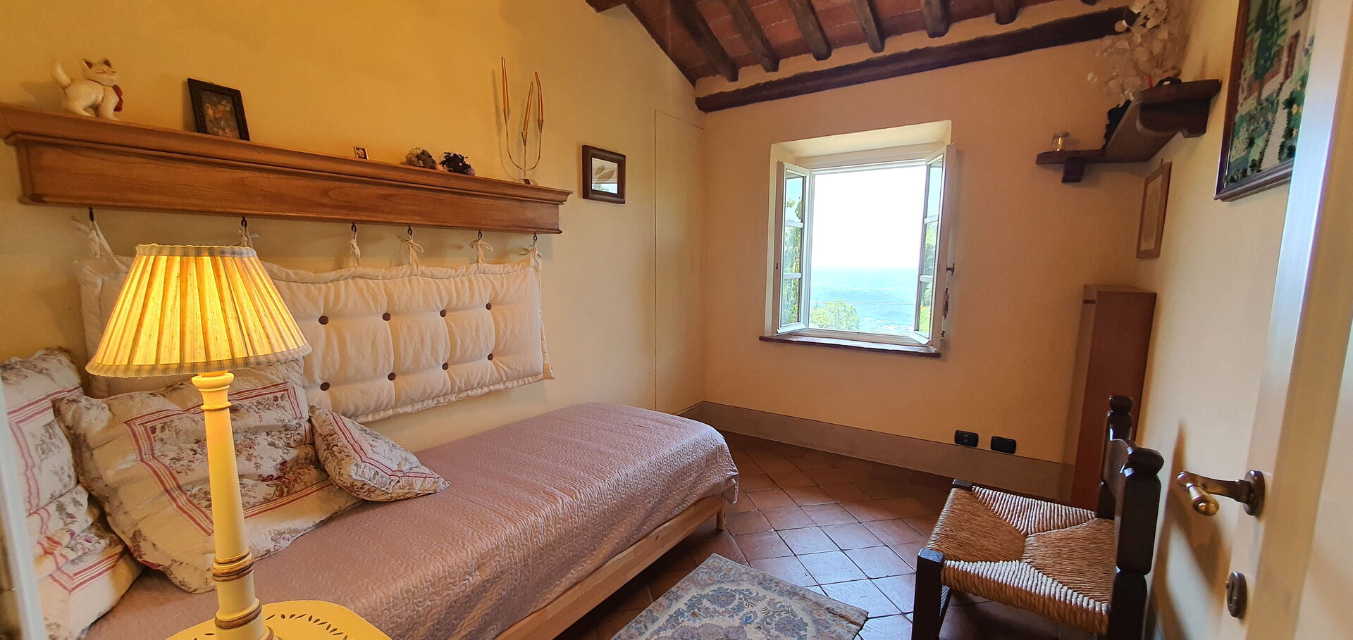 All'arrivo troverai una bellissima casa vacanze pulita e in ottime condizioni con vista sulle montagne e sulle colline, perfetta per una tranquilla vacanza in Toscana. A prescindere da come trascorrerai le tue giornate - imbarcandoti in gite fuori porta, visitando i più famosi musei della zona, facendo shopping o semplicemente guidando nell'entroterra, quando arriverai a casa la sera avrai la possibilità di rilassarti con famiglia e amici concludendo in bellezza un altro fantastico giorno di vacanza in Toscana. Pranzare o cenare in compagnia di famiglia e amici è un grosso aspetto della cultura toscana. Approfitta della cucina per preparare pasti utilizzando prodotti locali freschi e genuini mentre ti trovi in vacanza. La cucina è provvista di macchinetta del caffè, microonde, tostapane, fornelli e frigorifero, così come un numero sufficiente di stoviglie e posate per un massimo di quattro persone. Pranza o cena all'aperto, il giardino completamente accessoriato è la cornice perfetta per godersi del buon cibo, la compagnia della propria famiglia o gruppo di amici e il bellissimo clima toscano.