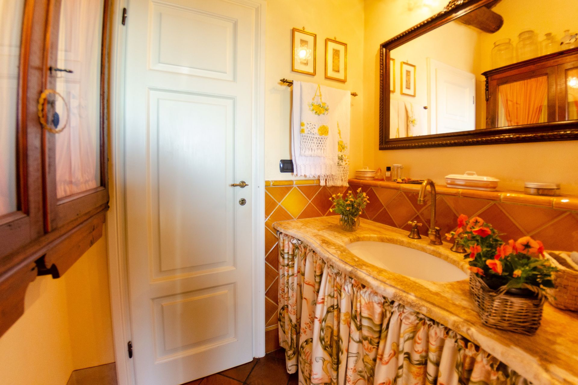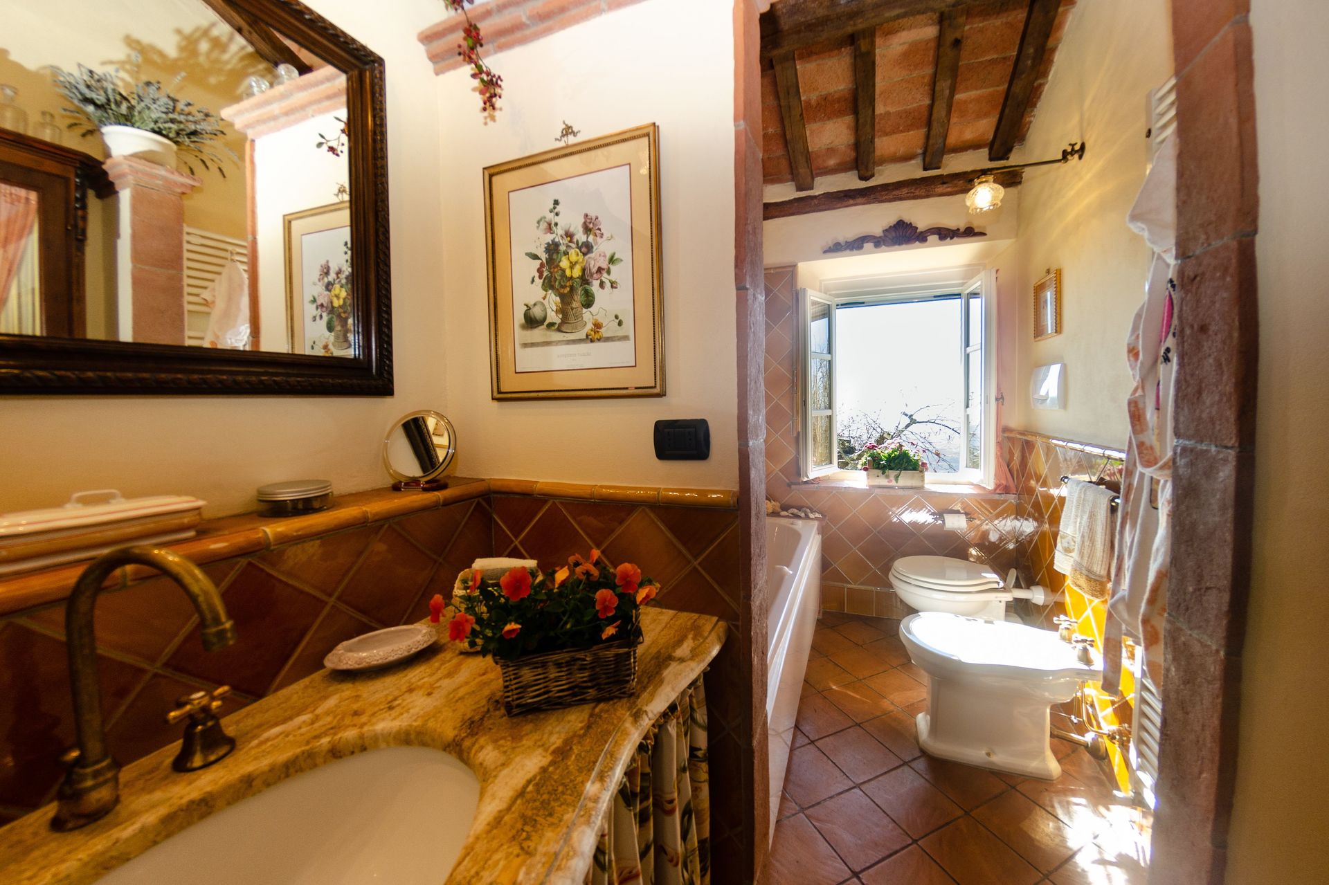 Bagno: vasca da bagno idromassaggio, lavandino, wc, bidet, zanzariere.