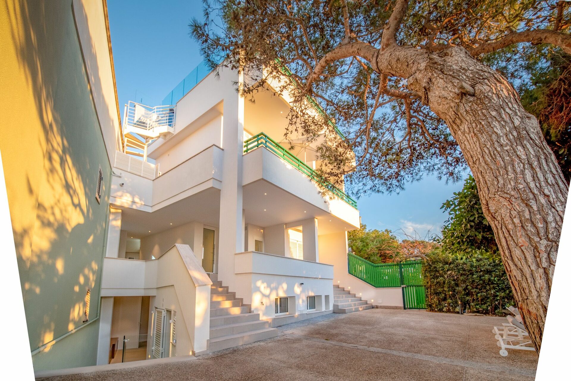 L’accesso a Villa Dune villa di lusso in affitto a Gallipoli con 6 camere da letto con 7 bagni, avviene da un cancello elettrico con citofono. La proprietà, completamente recintata, è attigua ad un complesso residenziale.